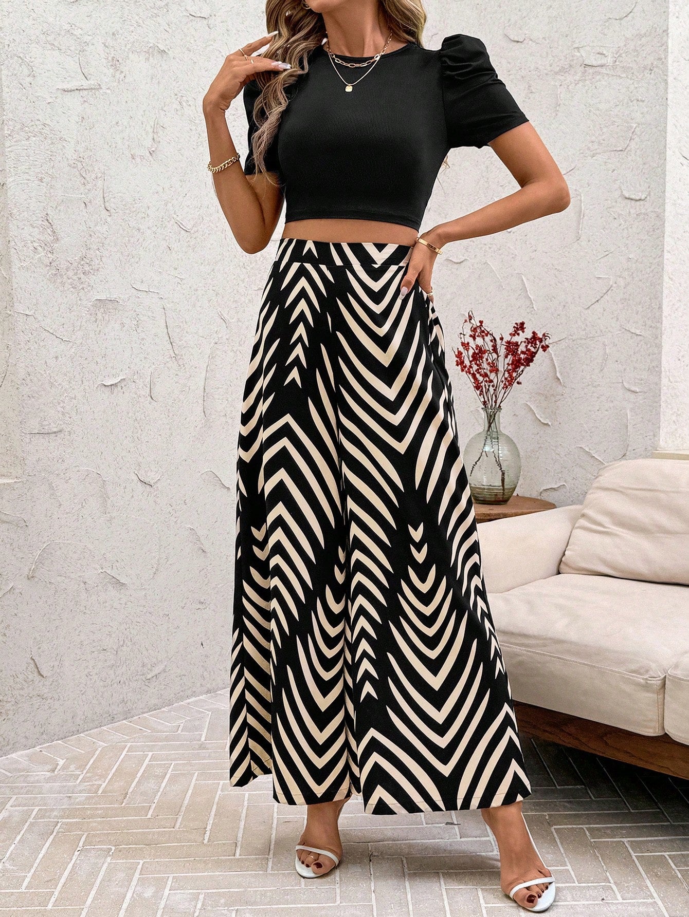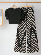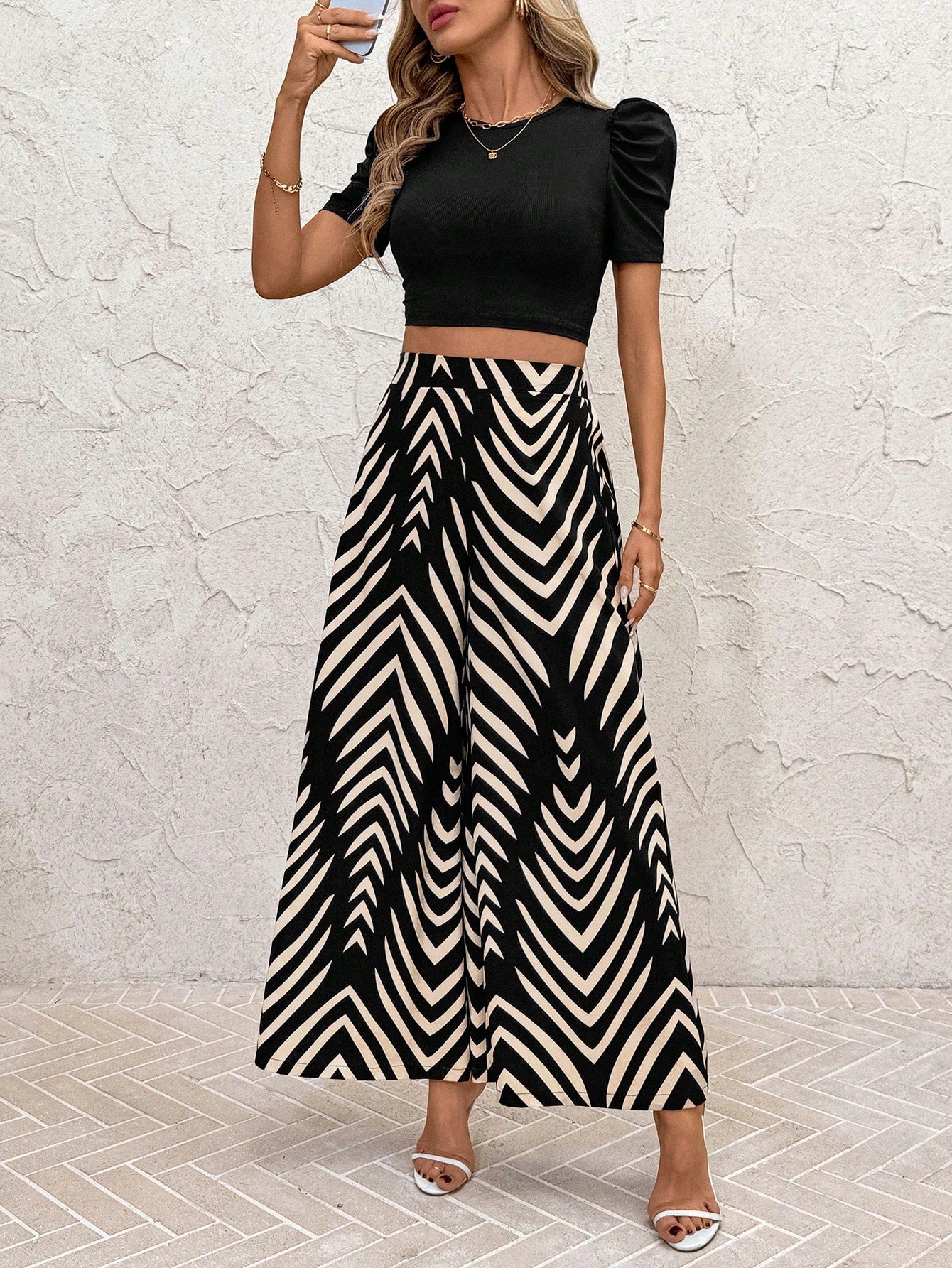 Clasi Classic Women Crew Neck Ribbed Cropped Top & Wide Leg Pants