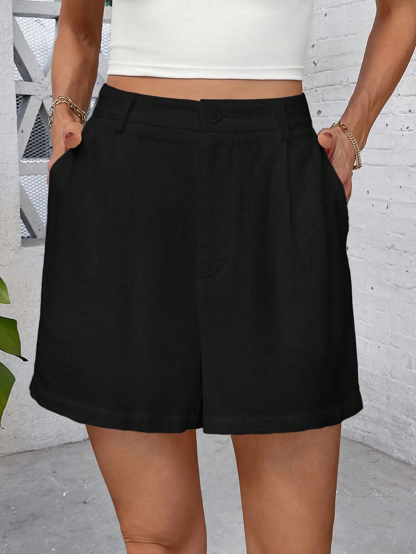 Clasi SEHIN Clasi Women Textured Shorts With Pockets, Elegant Casual Holiday Street-Wear, Spring/Summer