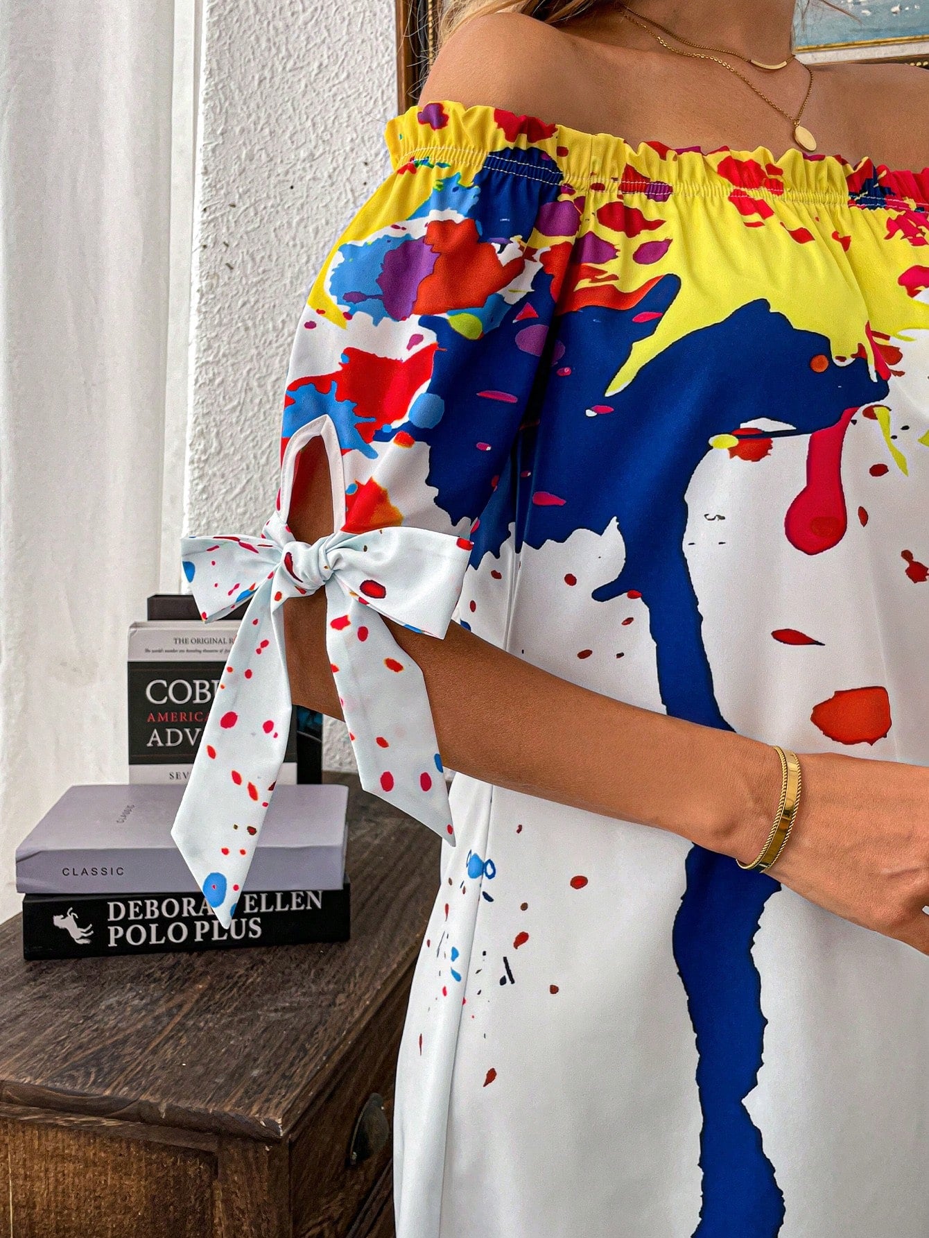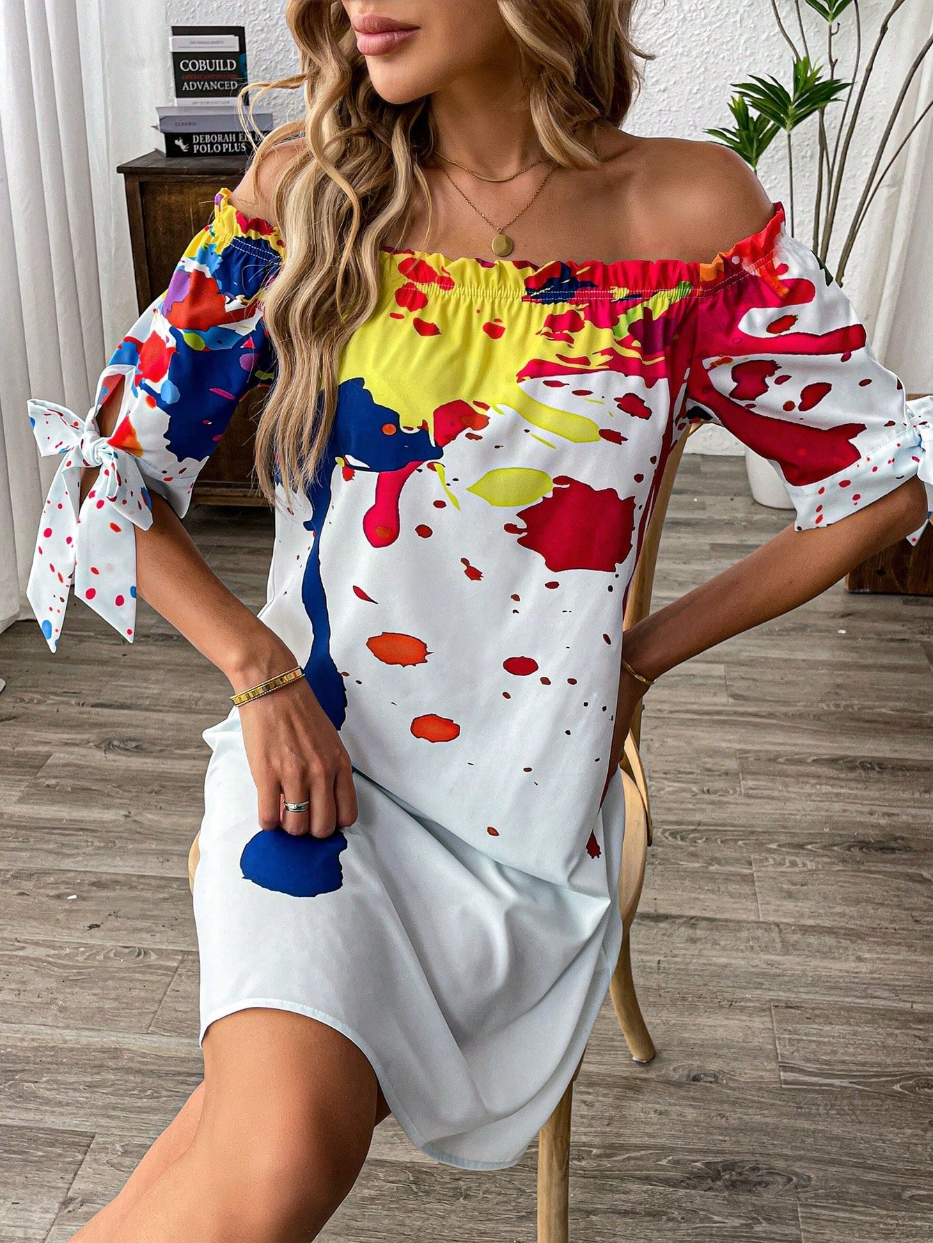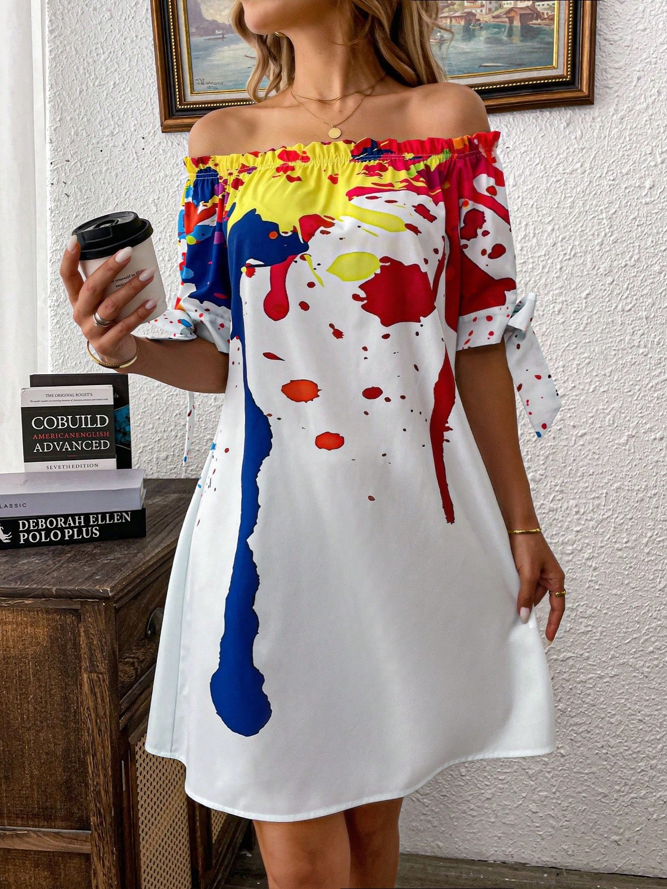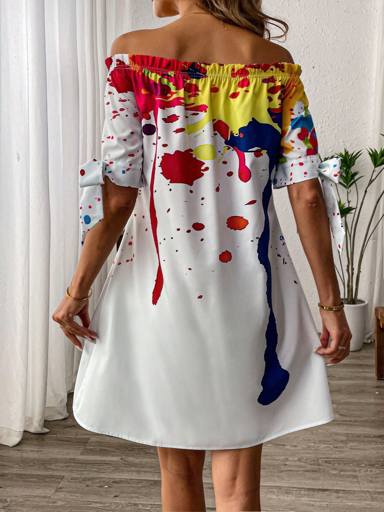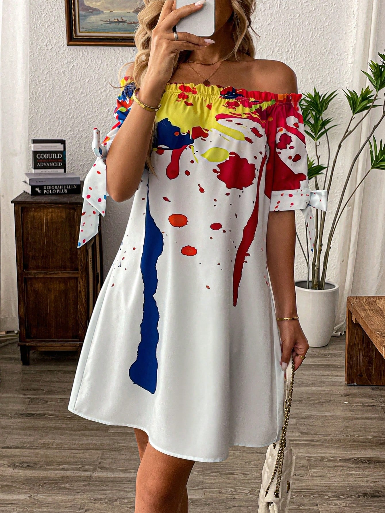 Clasi Women's Summer Casual Tie-Dye Off-Shoulder Dress