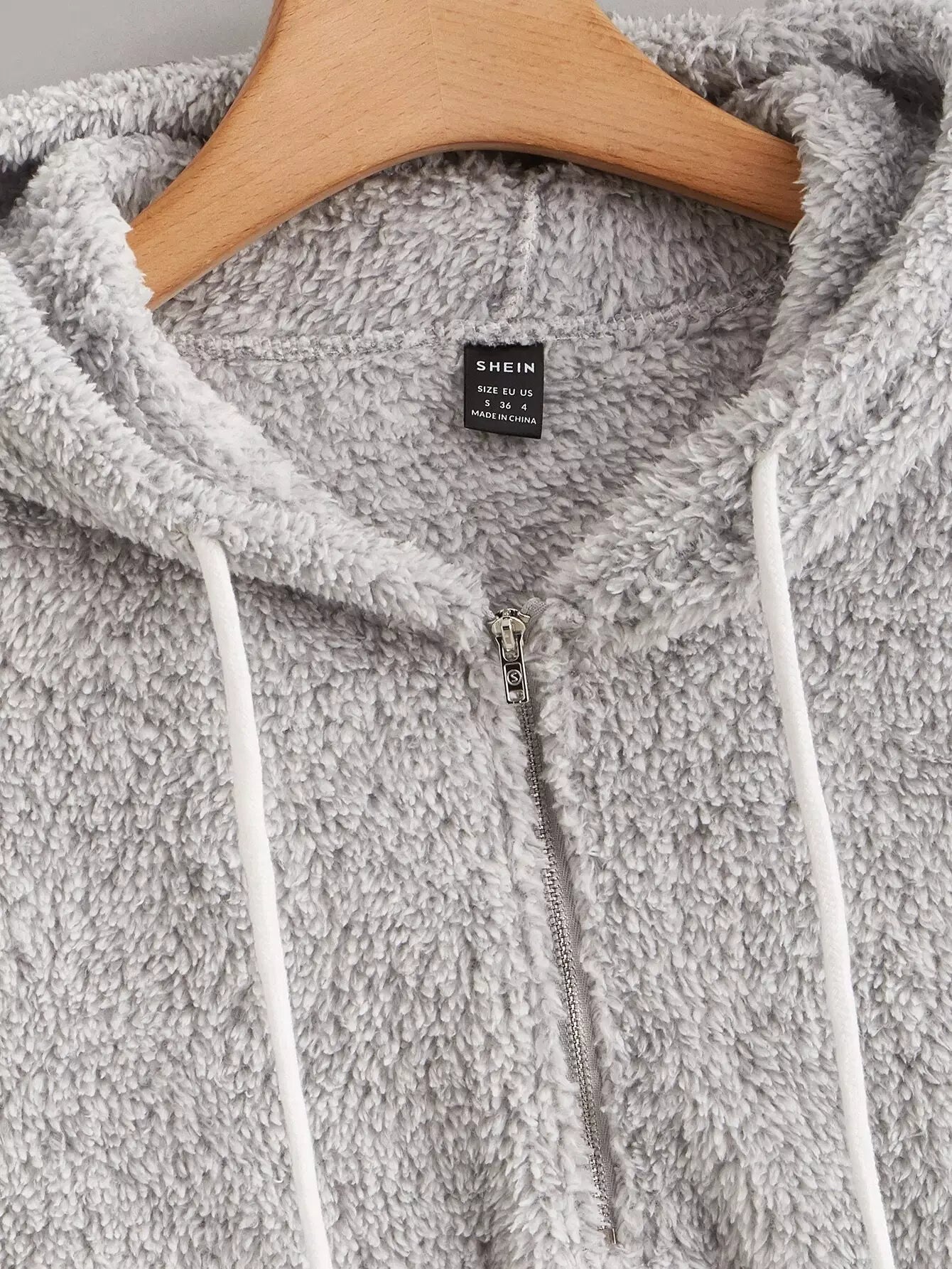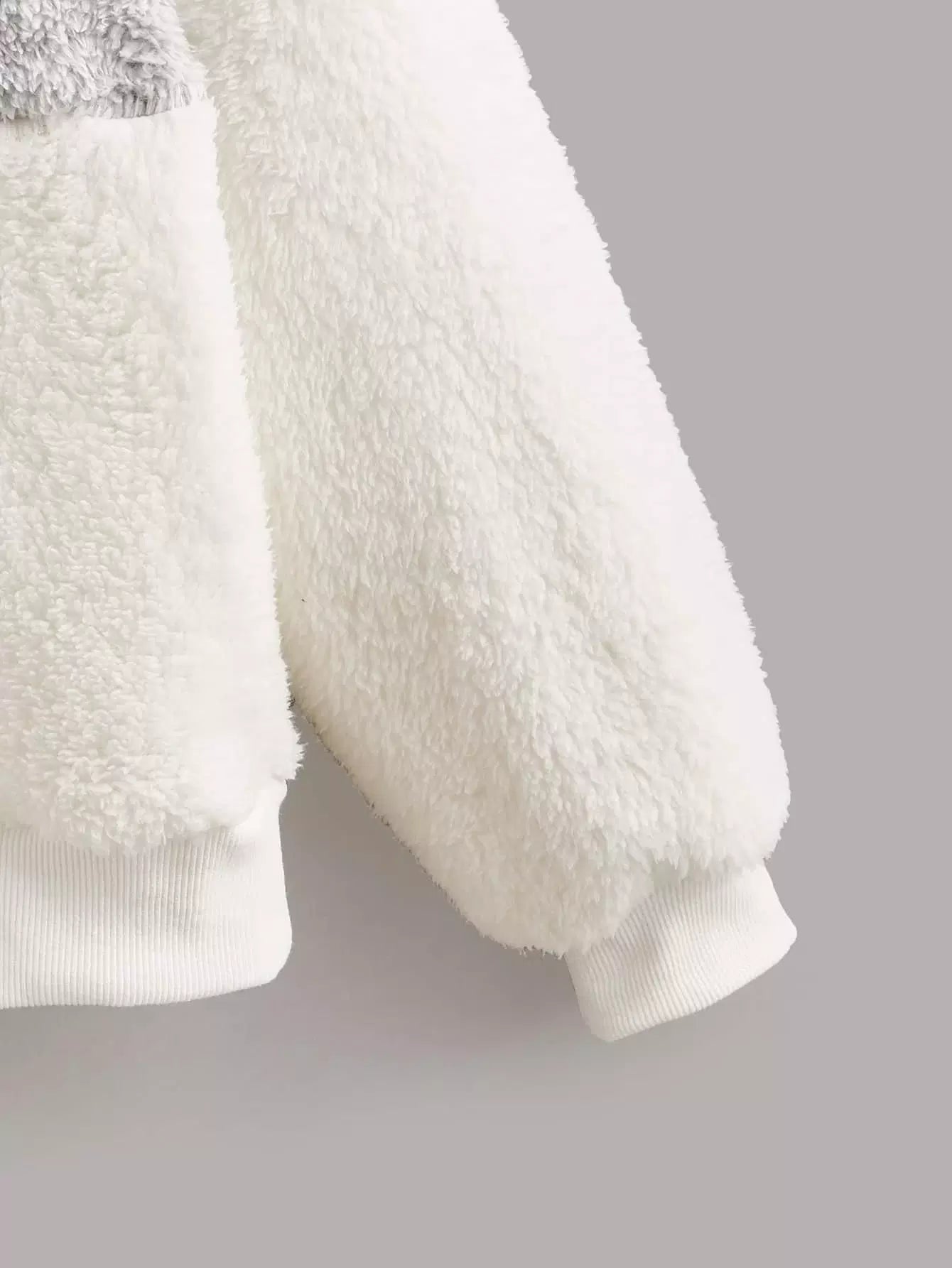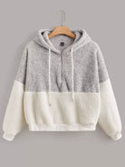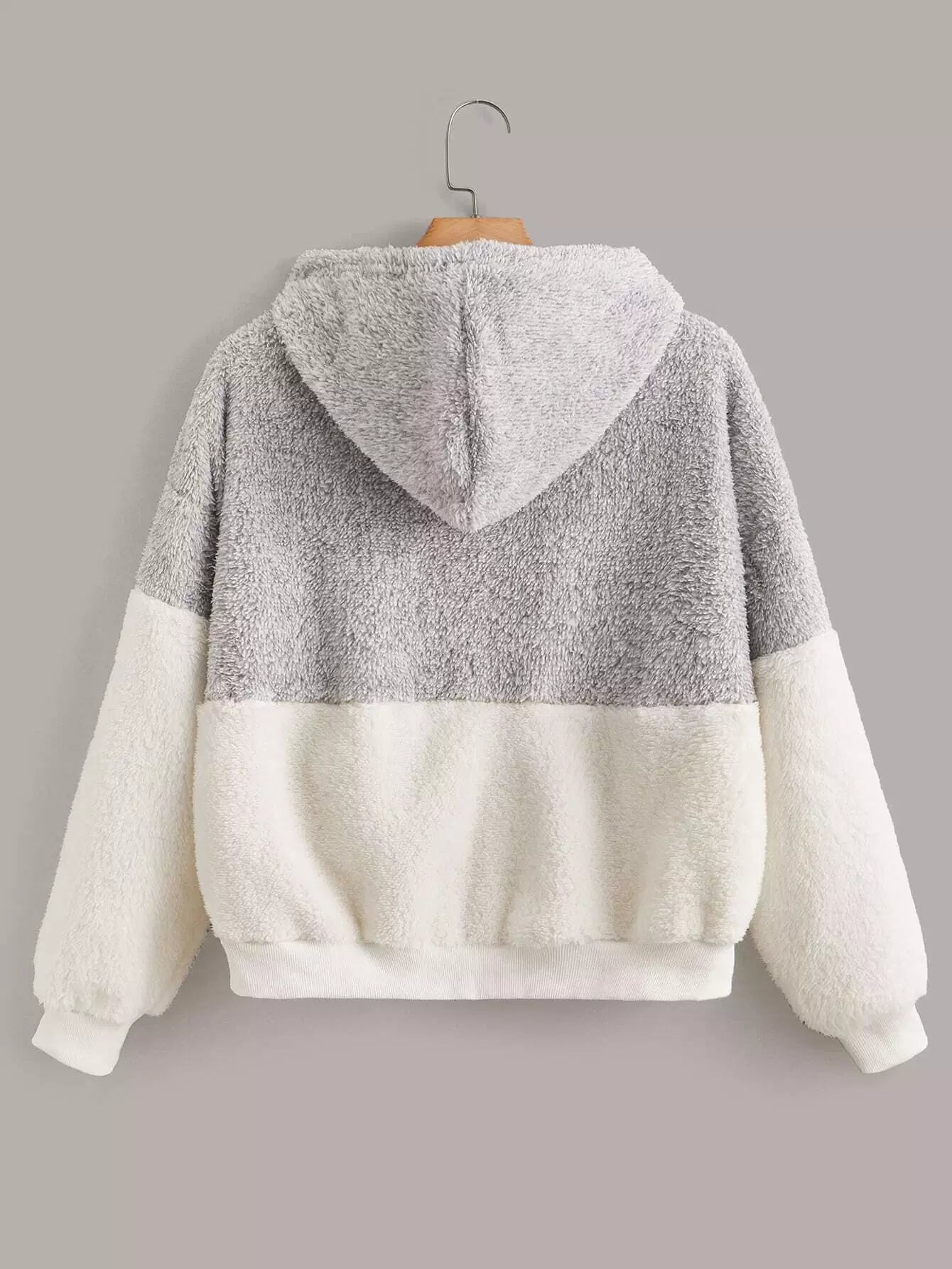 Color Block Drop Shoulder Quarter Zip Drawstring Teddy Hoodie