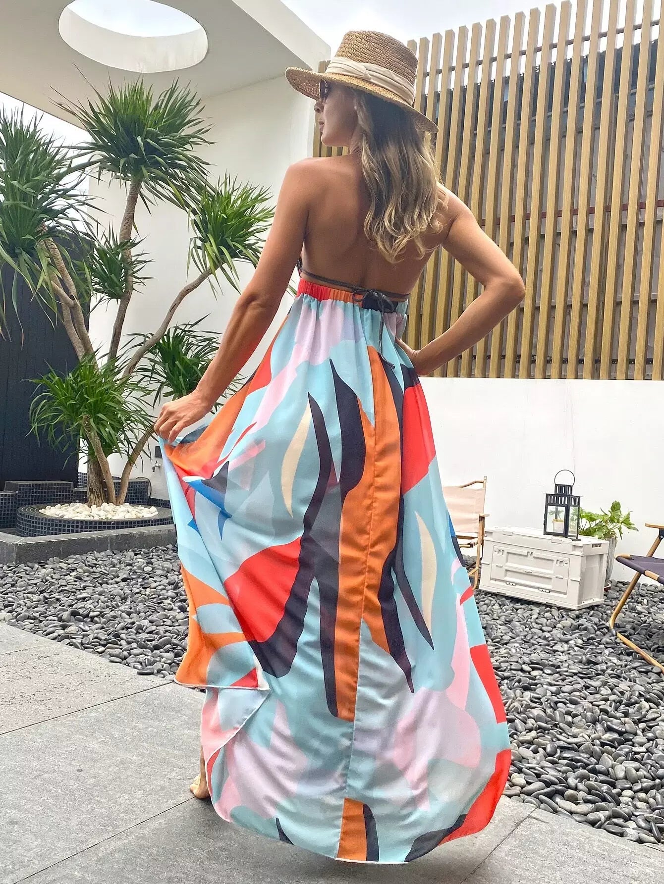 Color Block Halter Cover Up