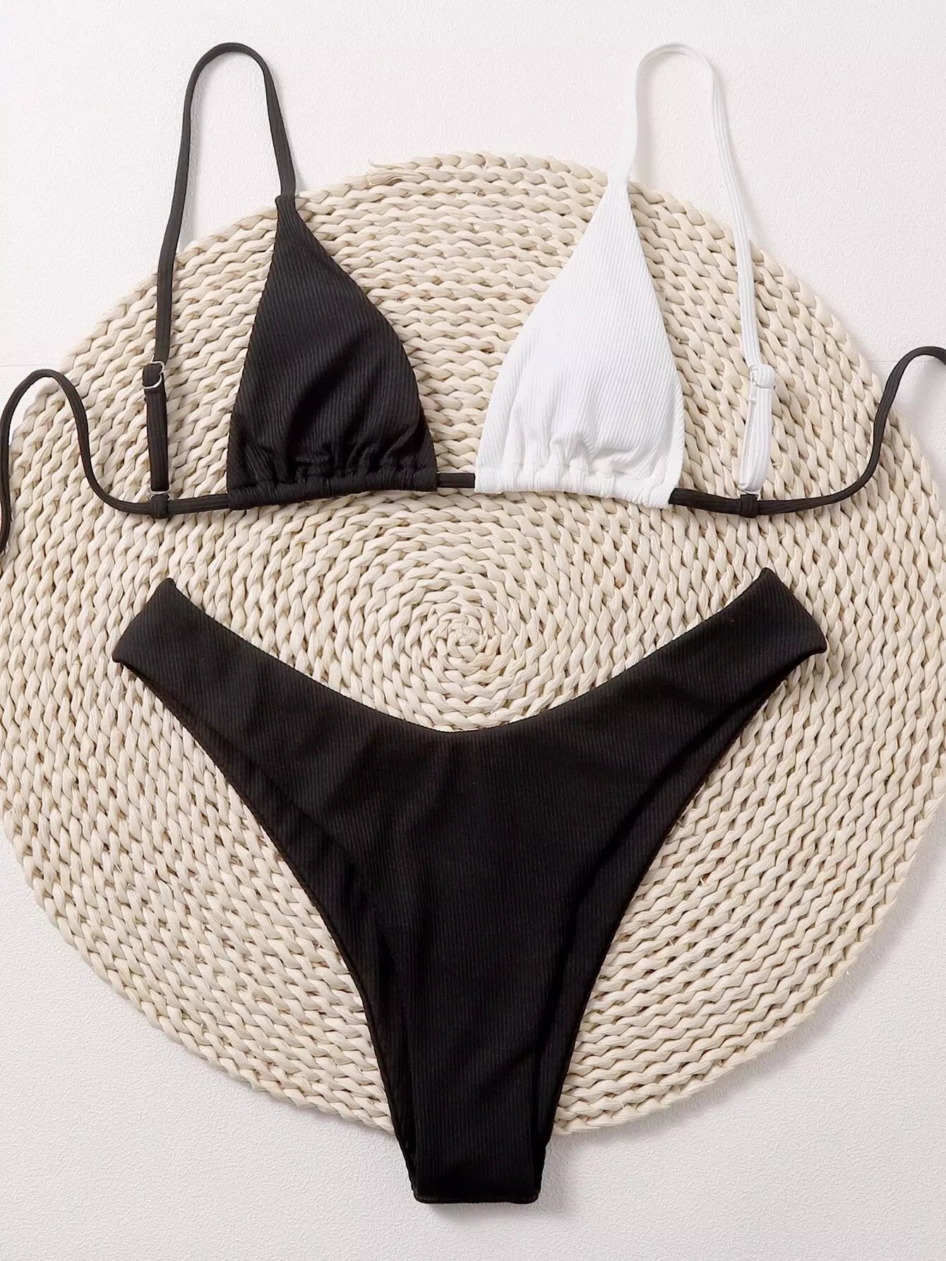 Color Block High Cut Bikini Swimsuit