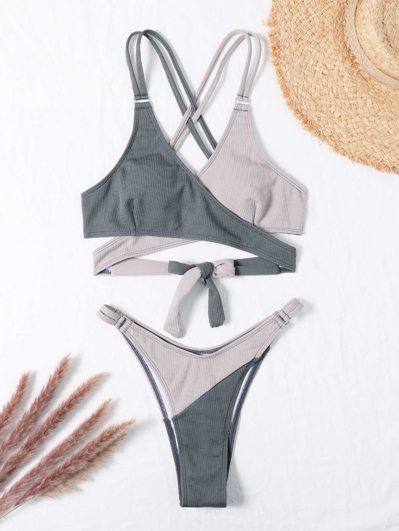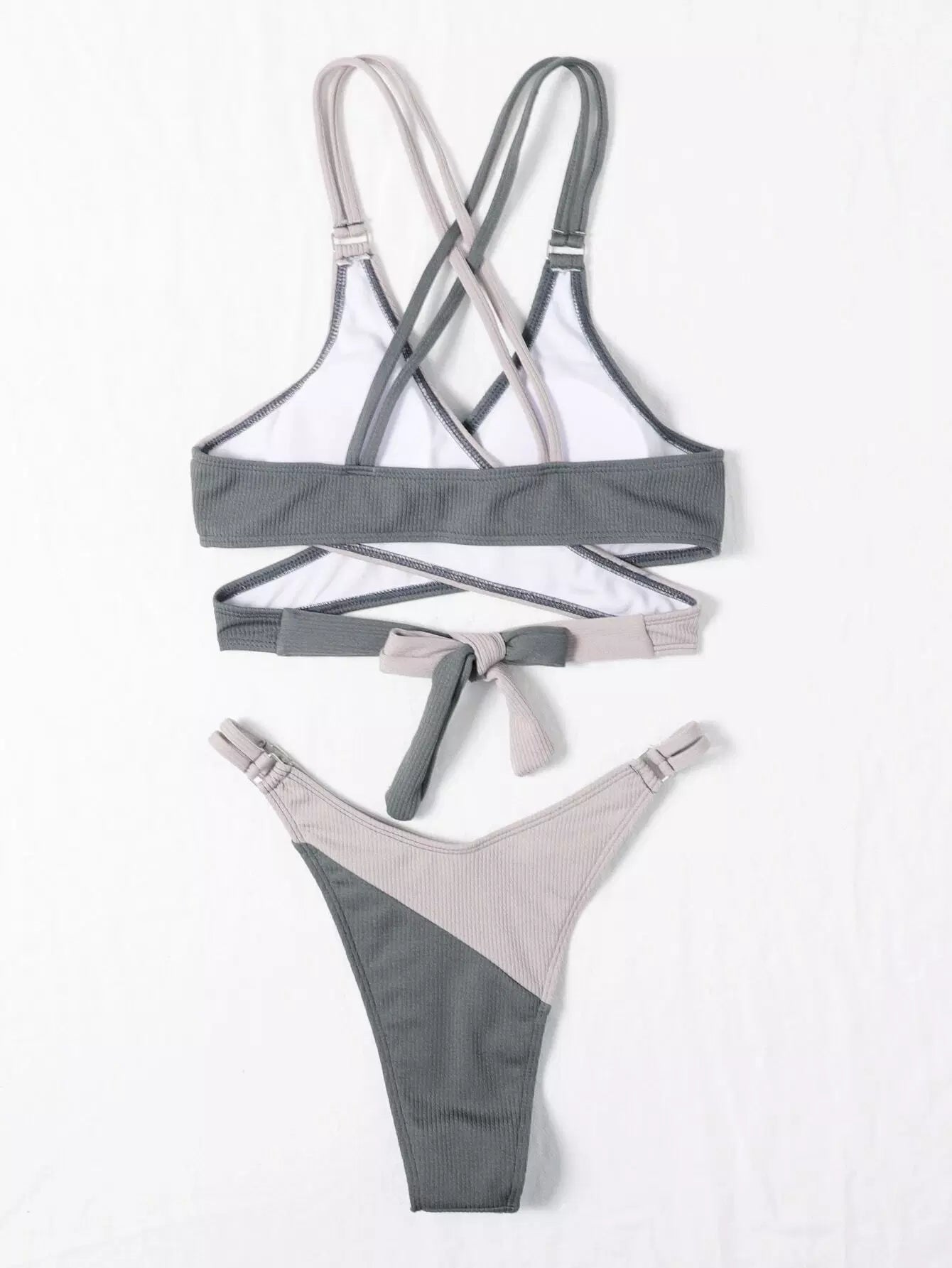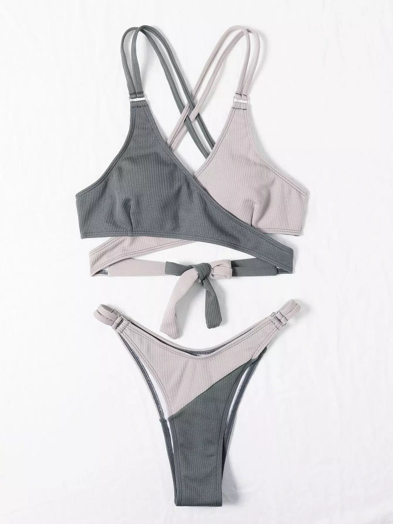 Color Block Wrap High Cut Bikini Swimsuit