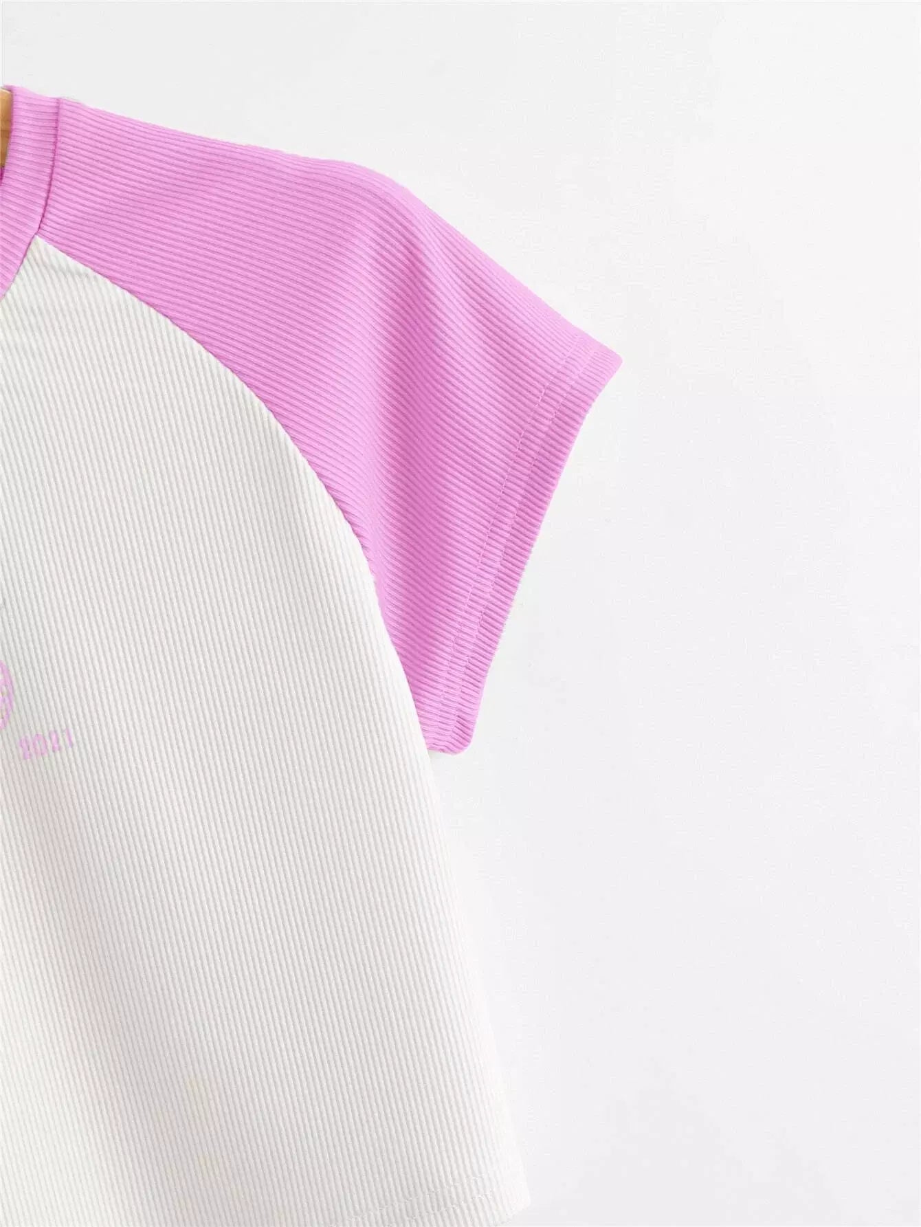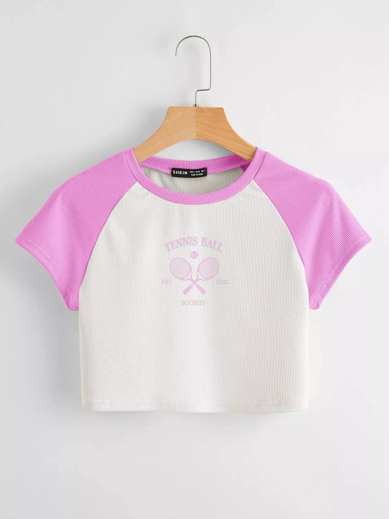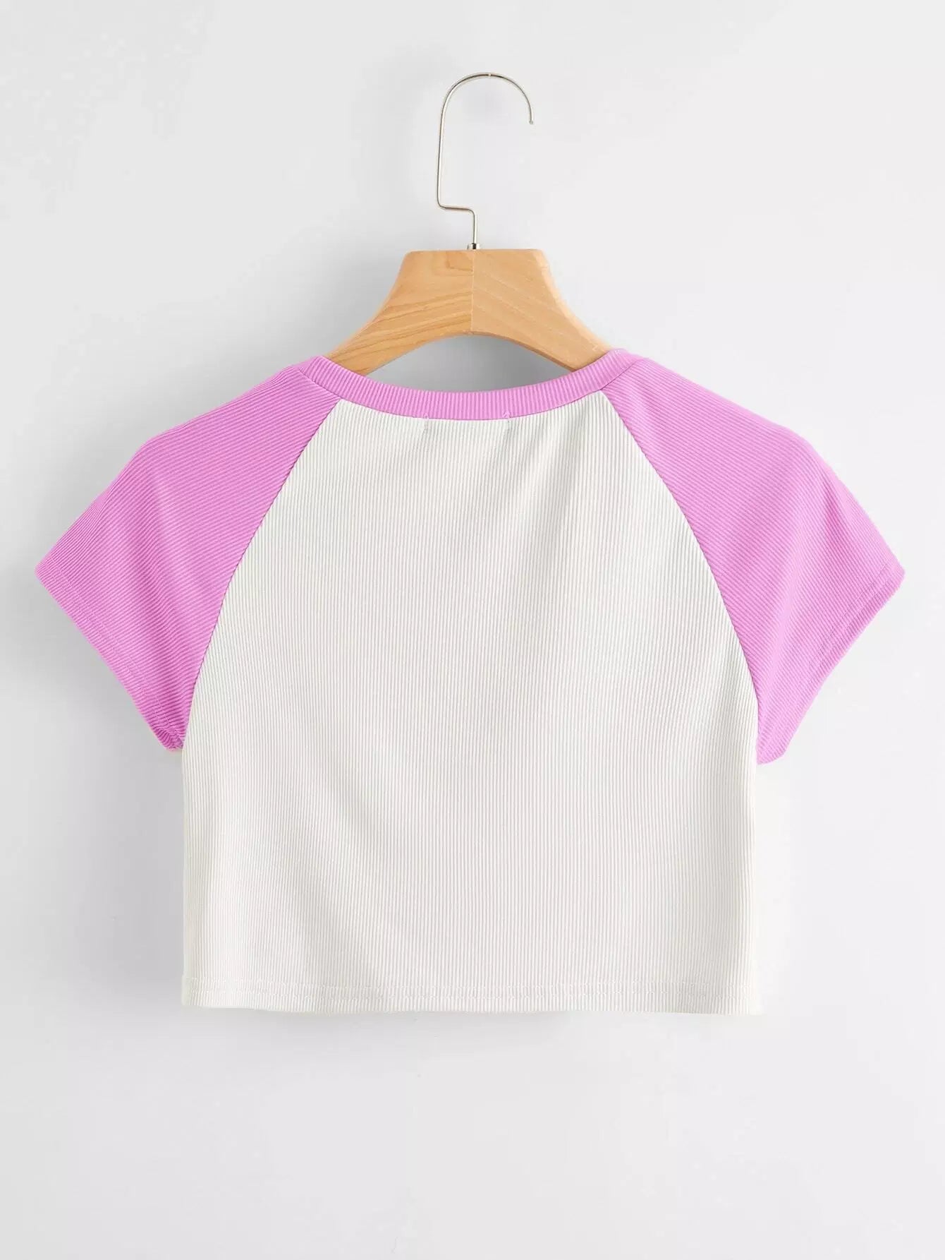 Colorblock And Letter Graphic Crop Tee
