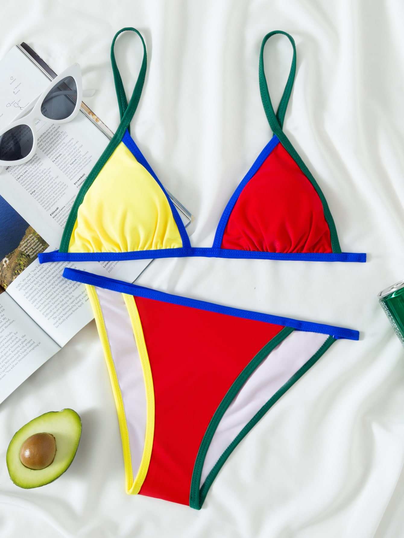Colorblock Contrast Binding Bikini Swimsuit