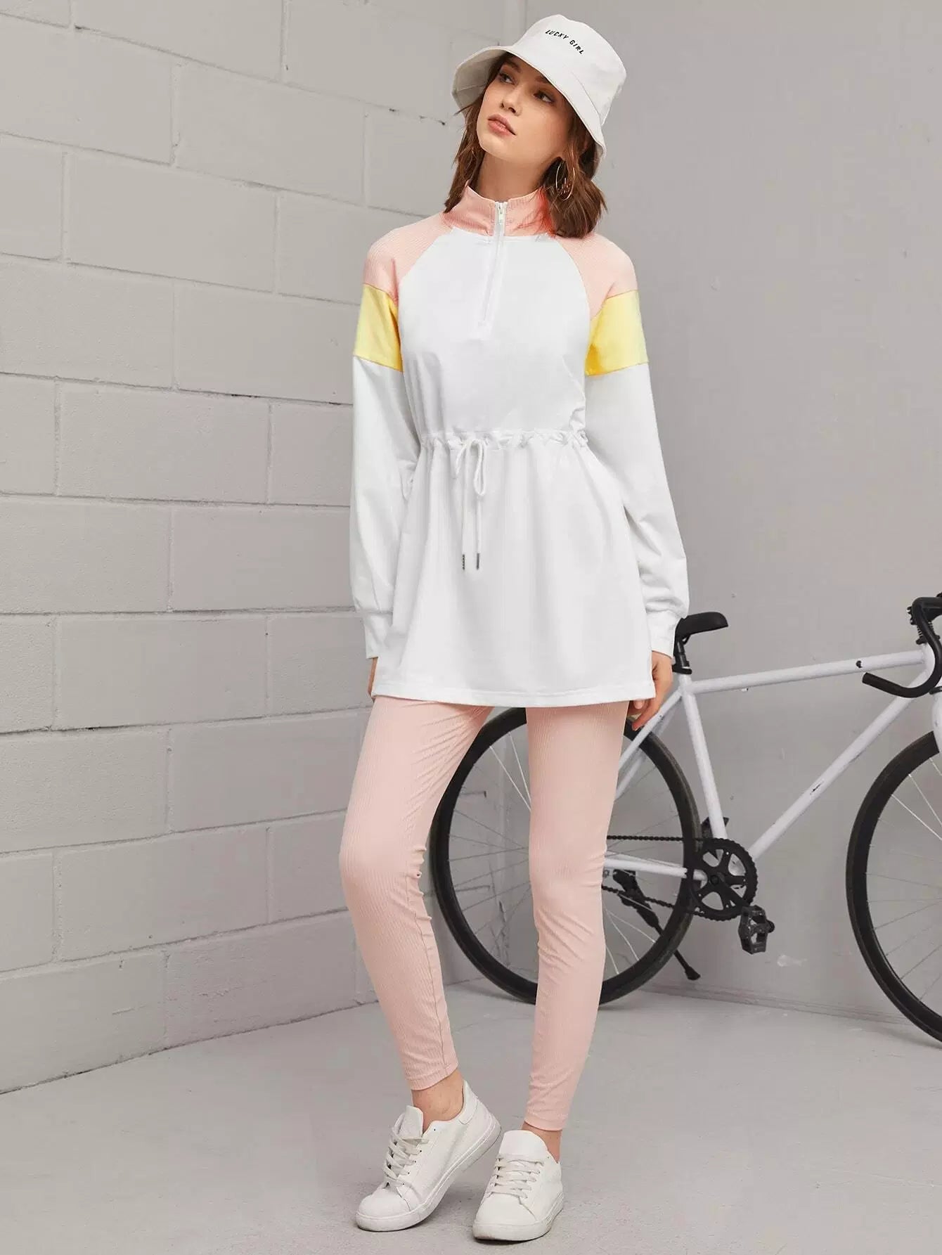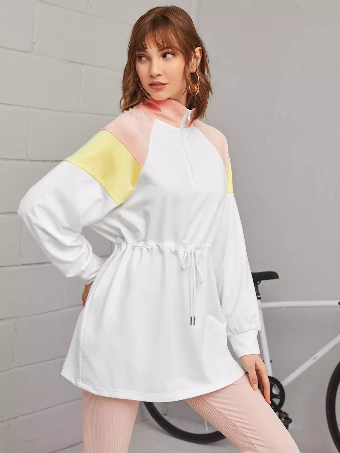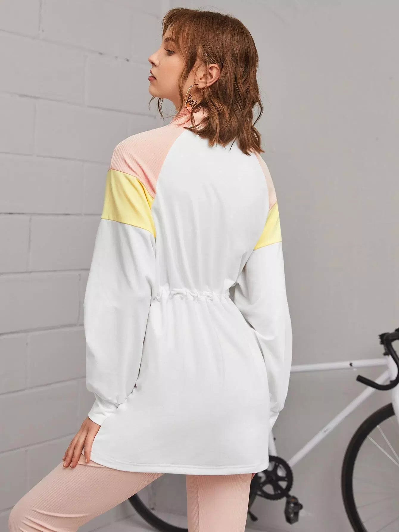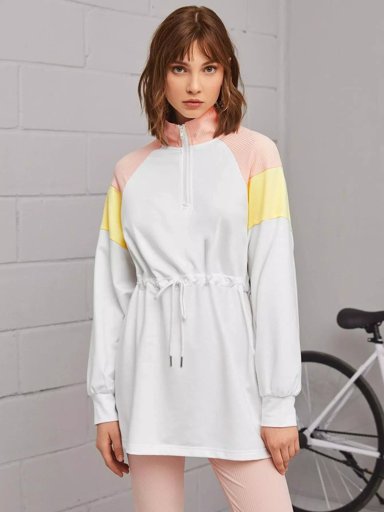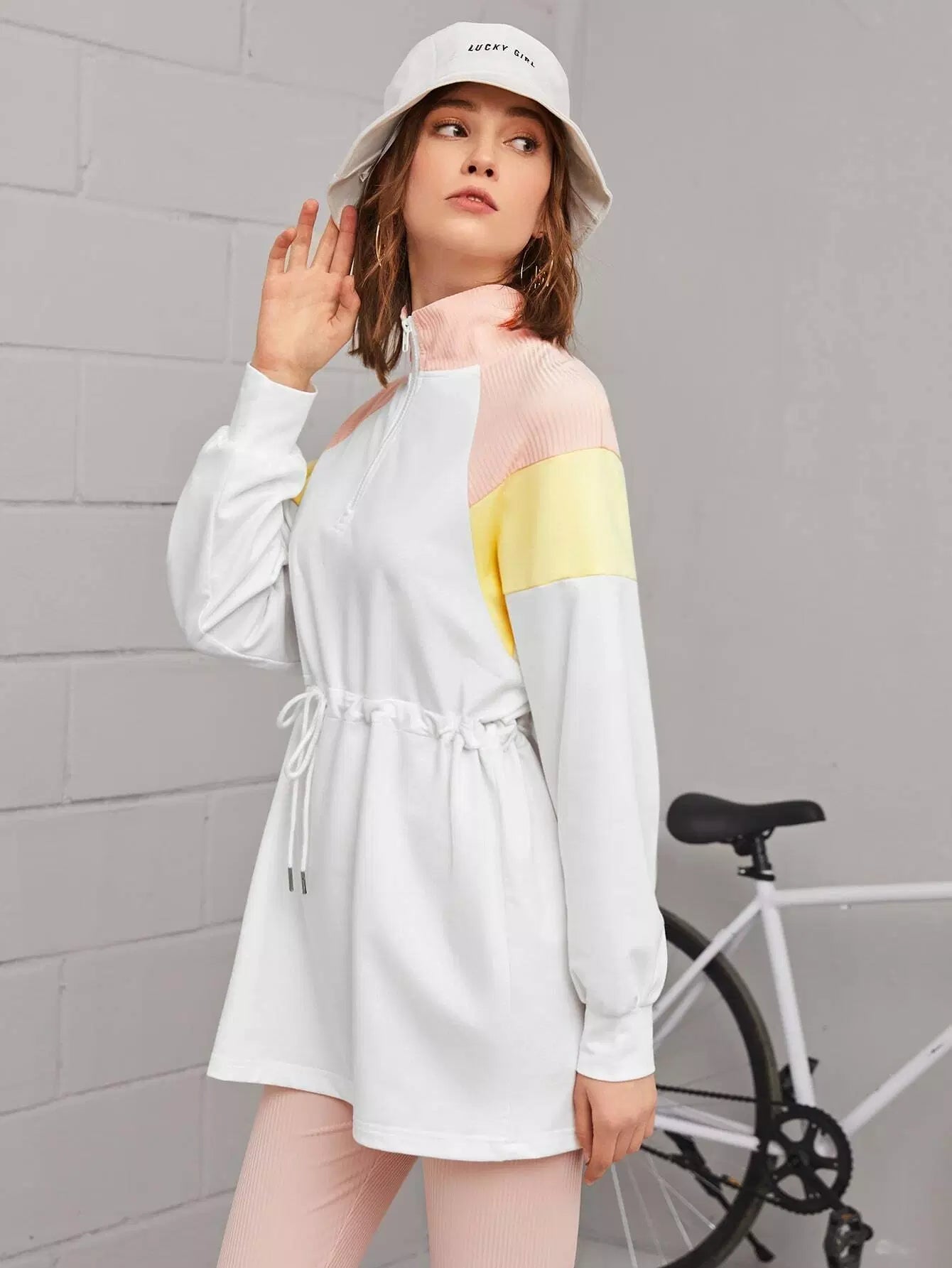 Women - Colorblock Drawstring Waist Sweatshirt Dress