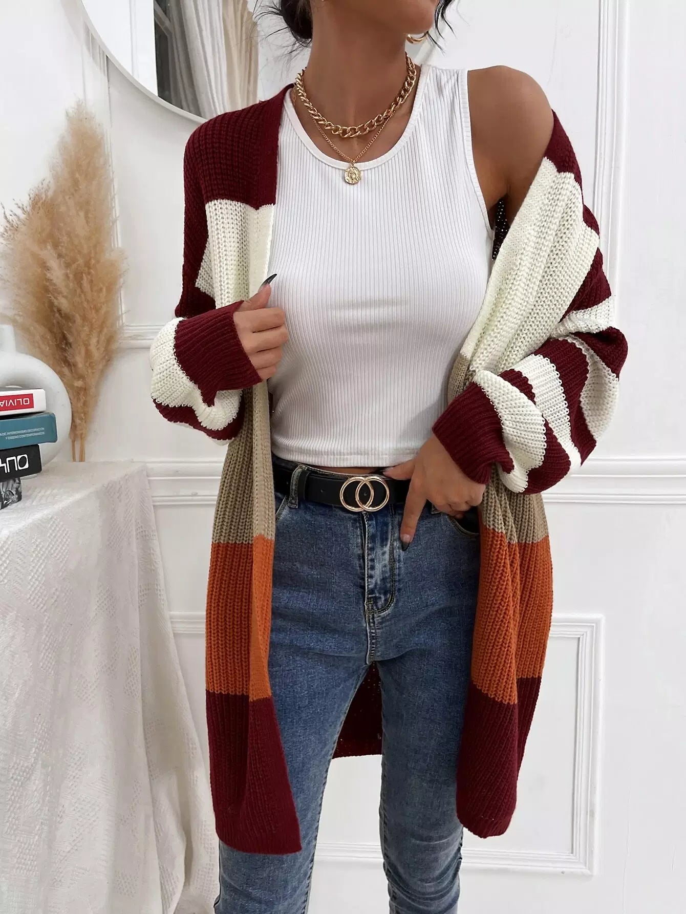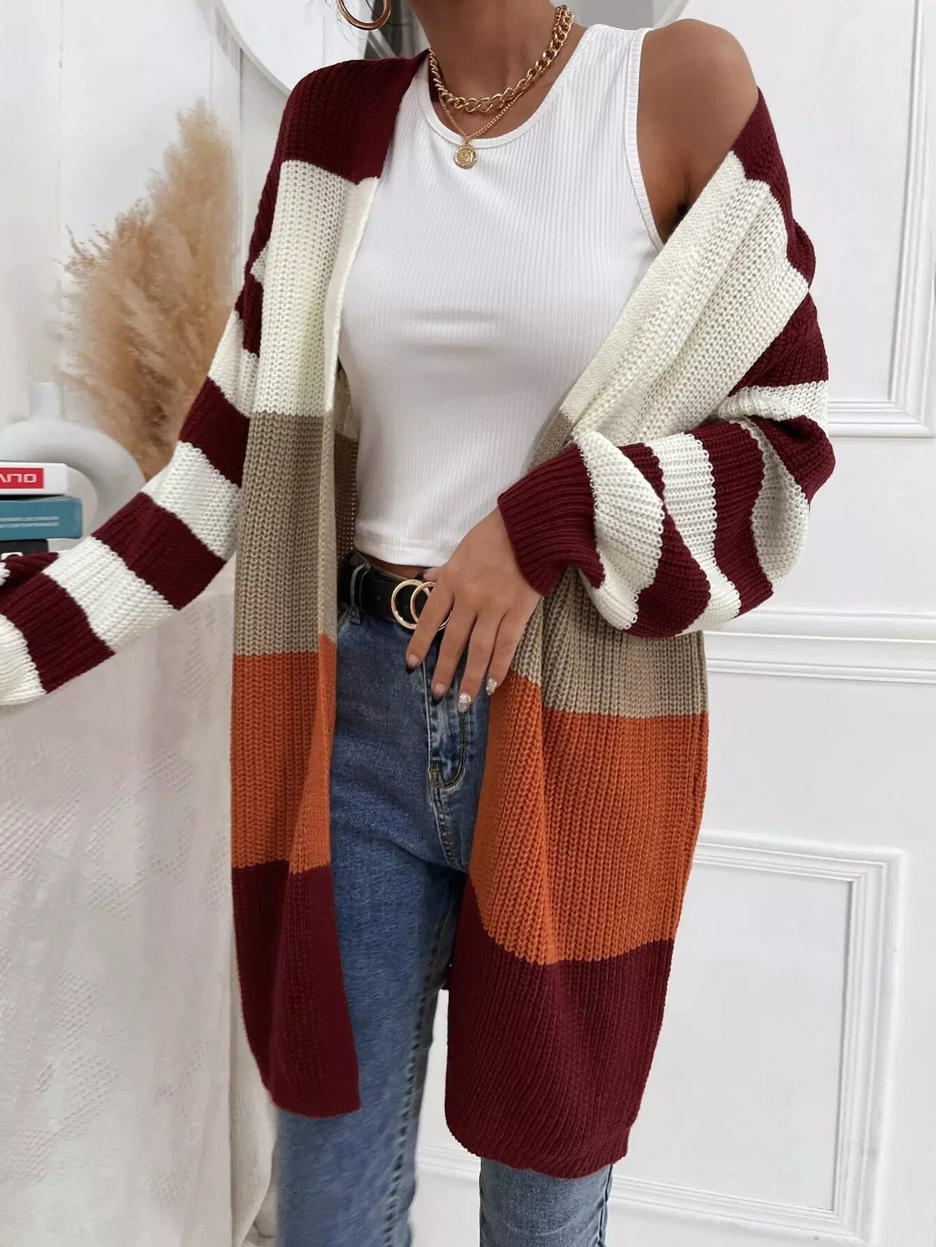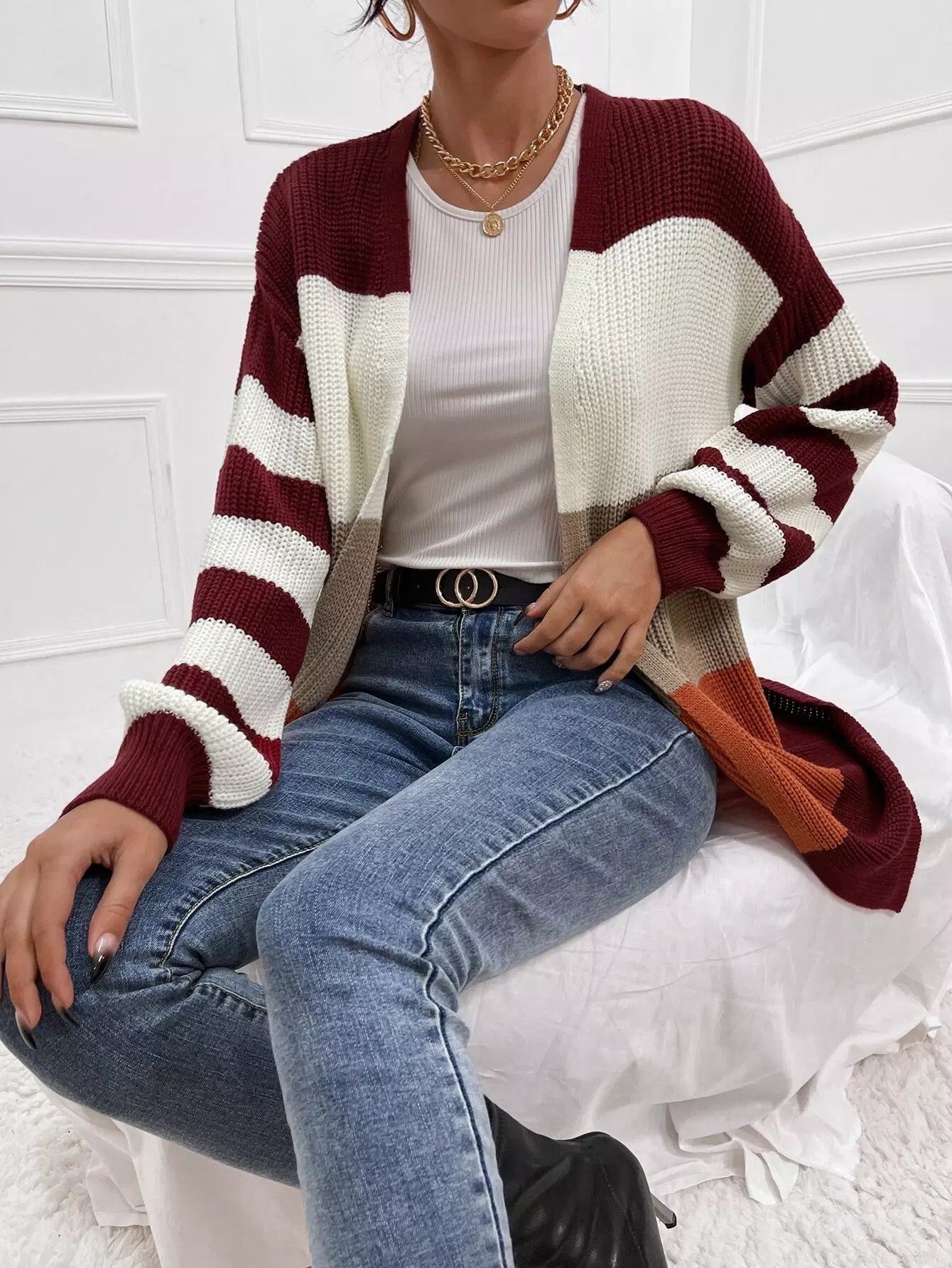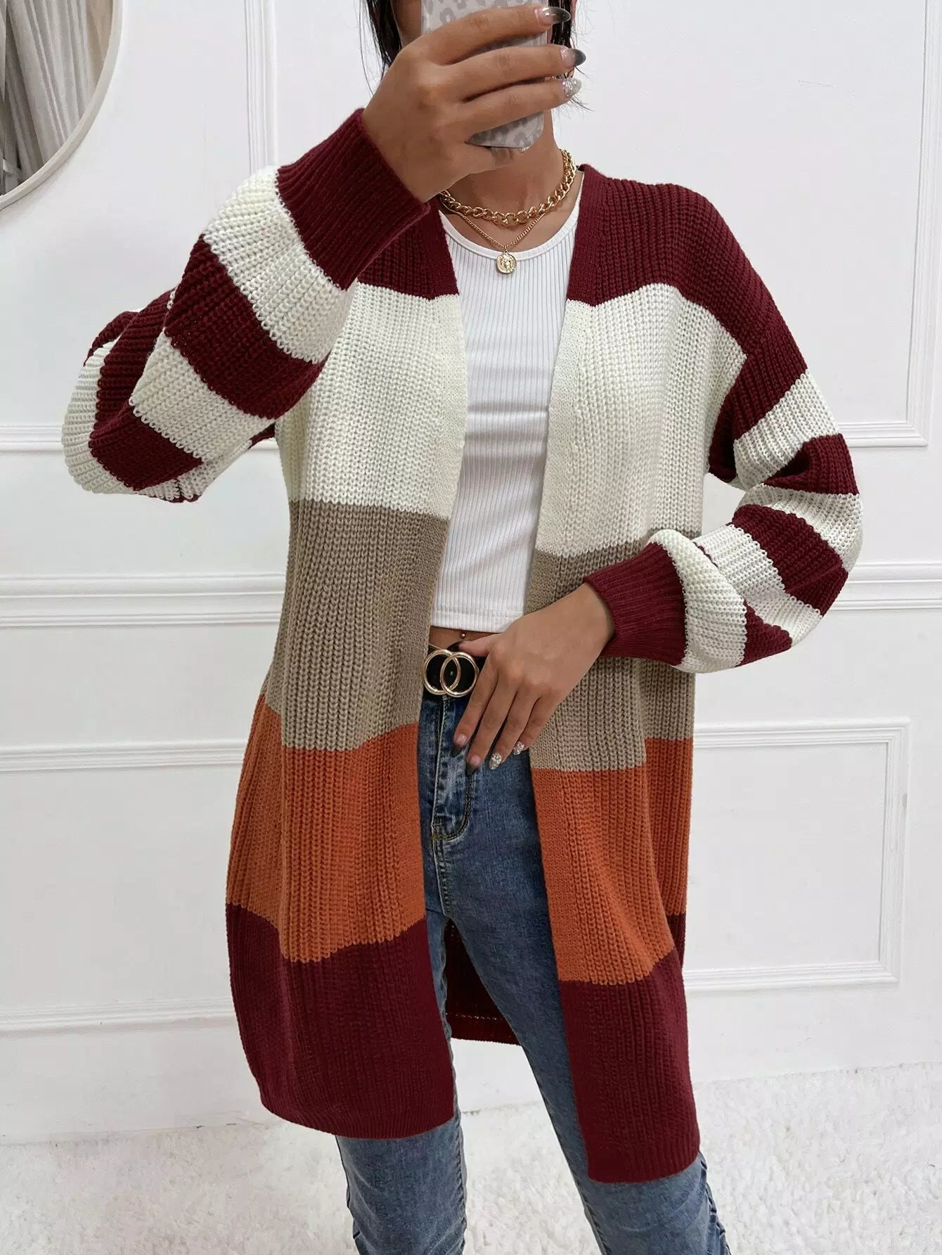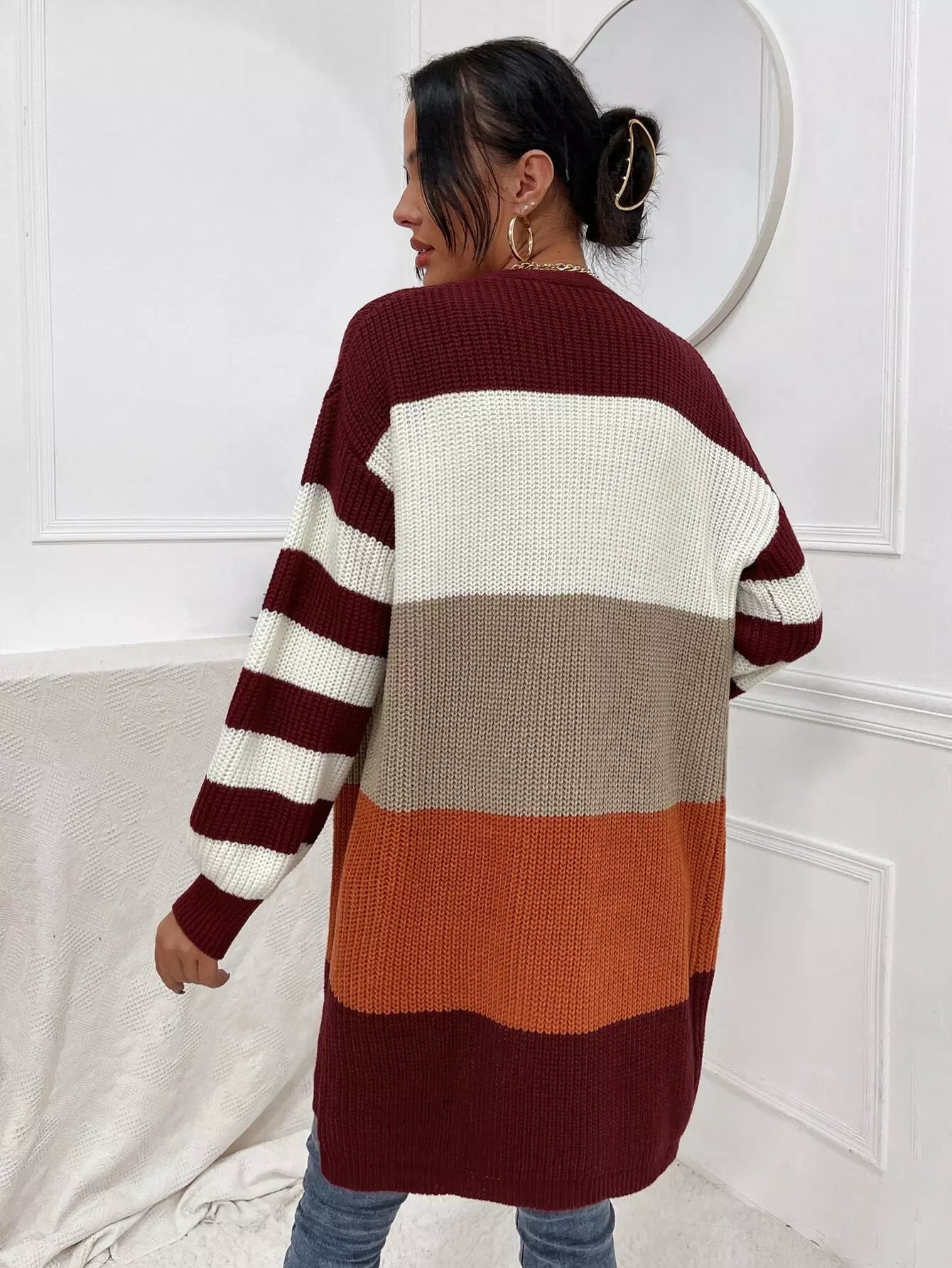Colorblock Open Front Cardigan