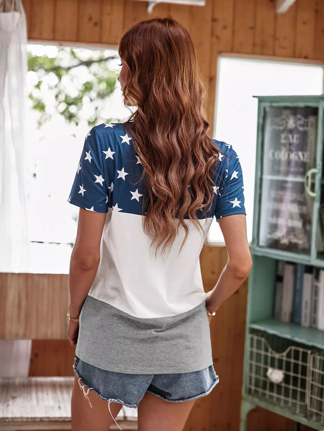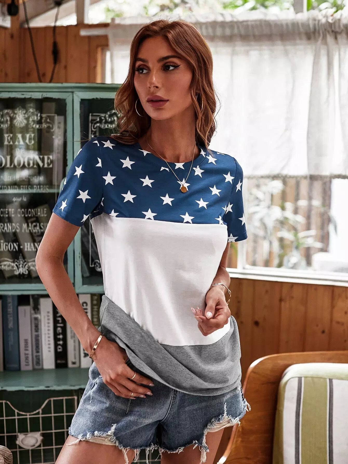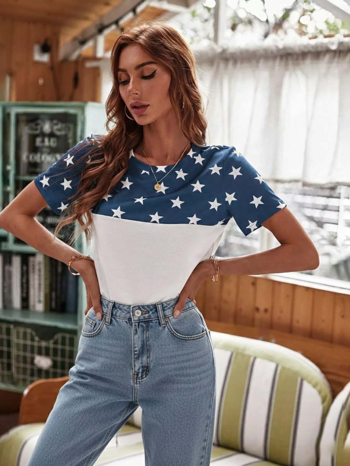 Colorblock Star Print Tee
