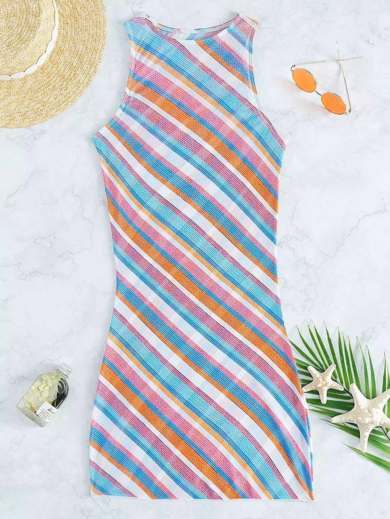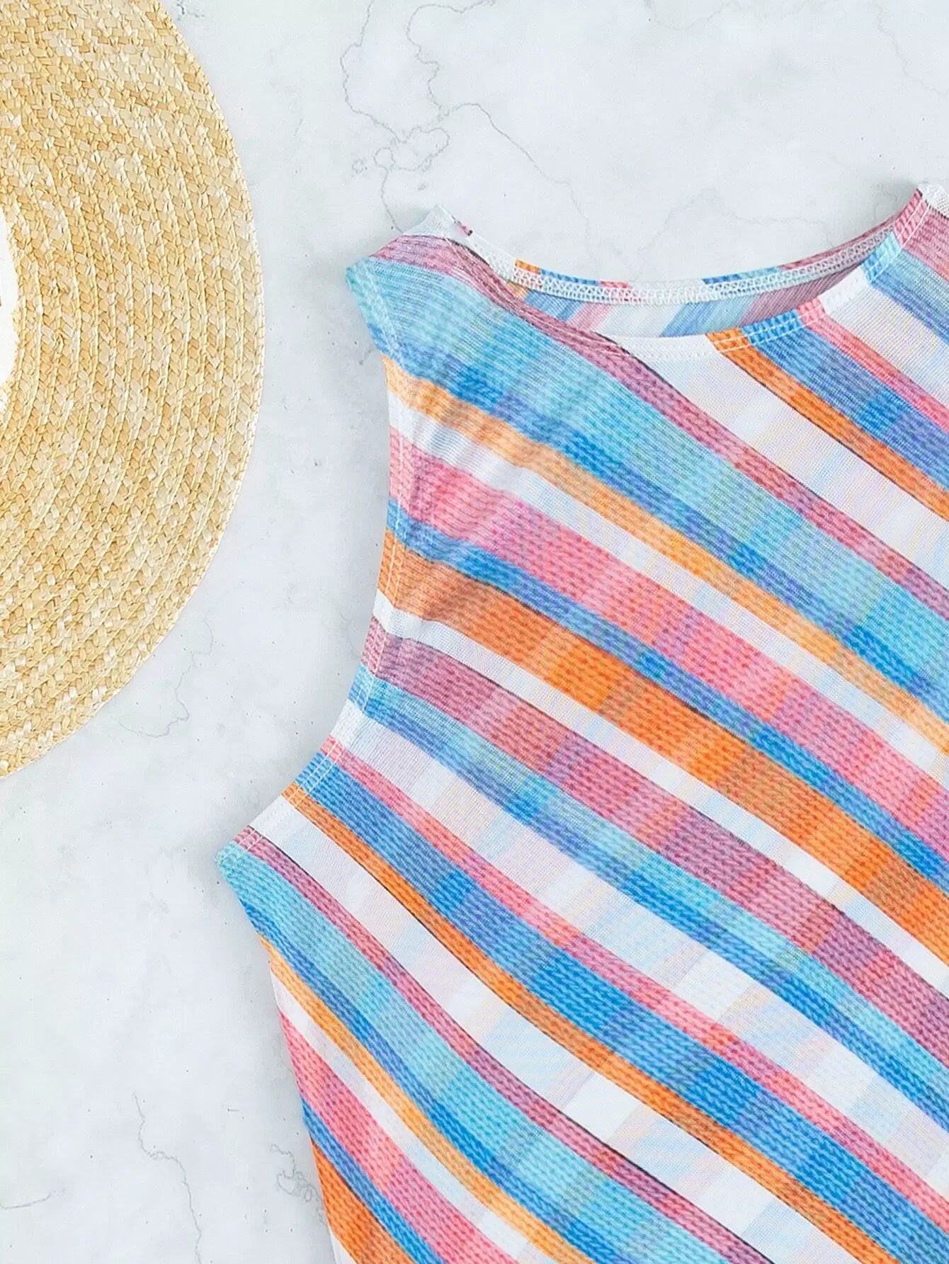 Colorful Stripe Mesh Cover Up