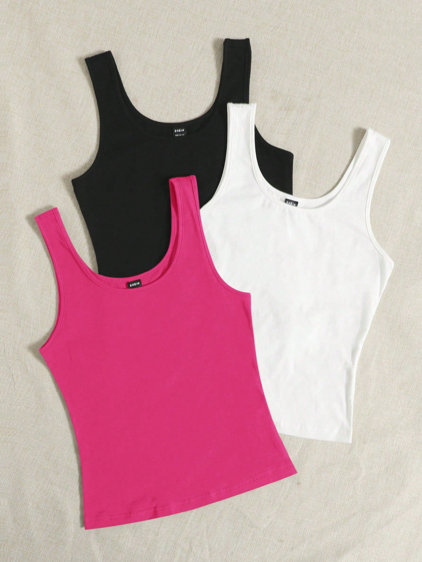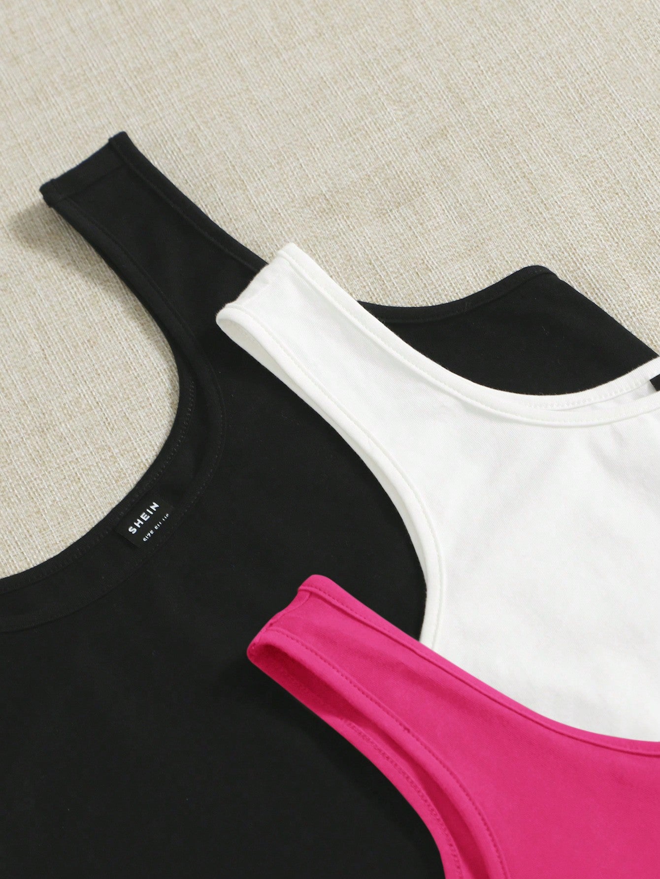 Comfortcana Women's Plus Size Solid Color Round Neck Tank Top 3pcs/Set Summer Clothes