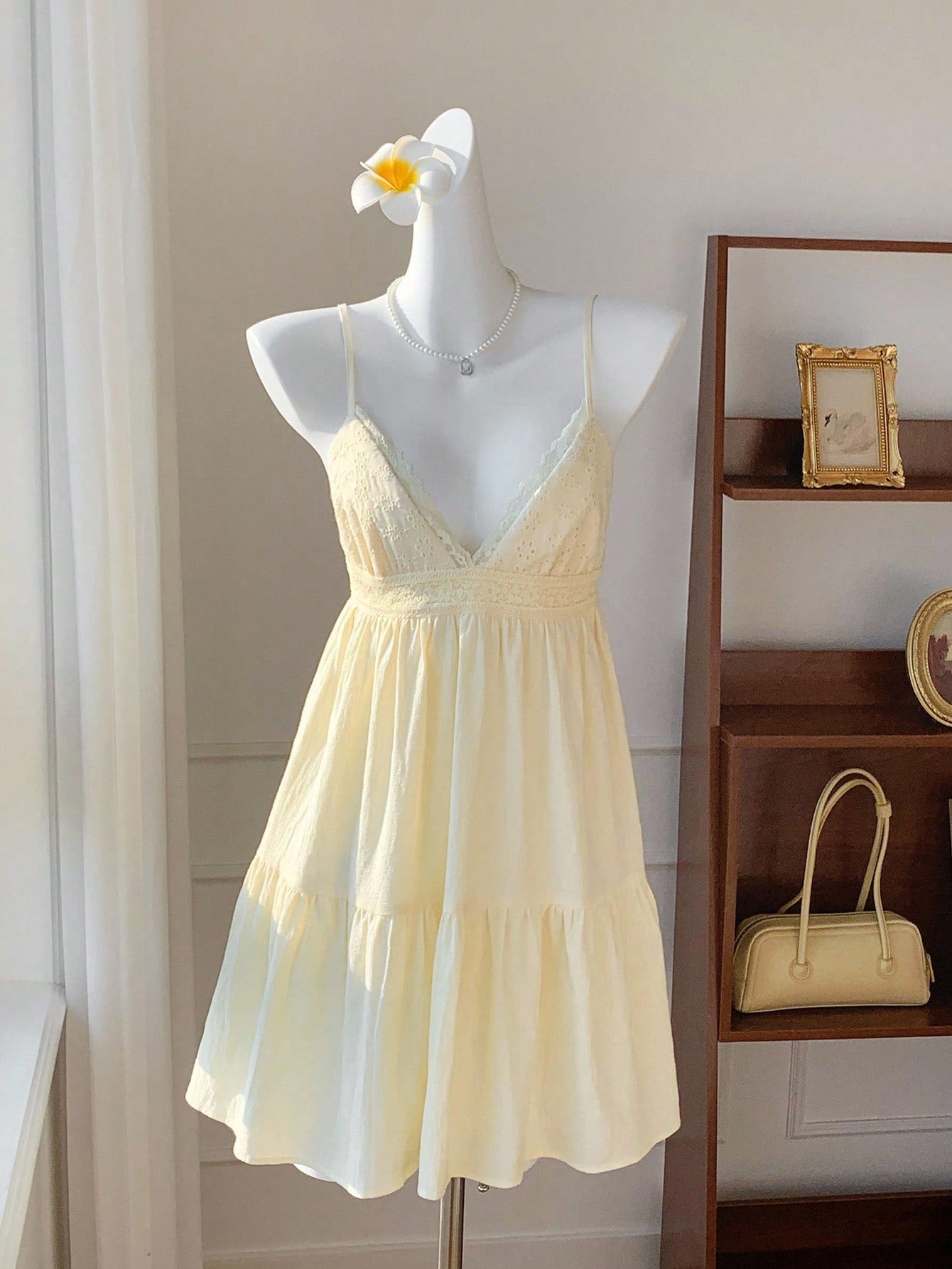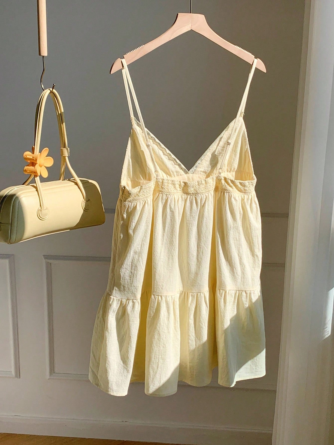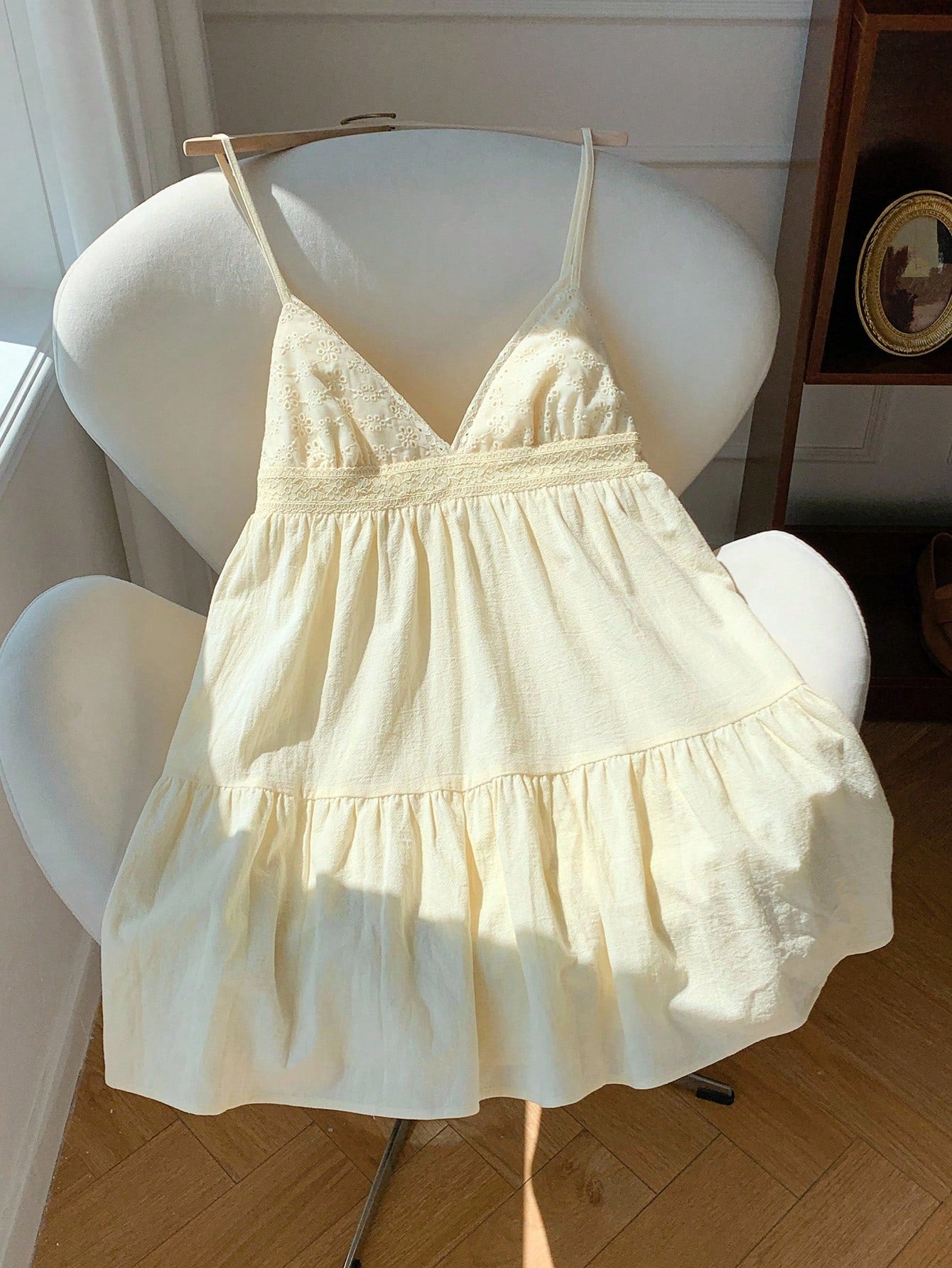 Comfortcana Women's Vacation Casual Beige Woven Spaghetti Strap Mini Dress Cotton