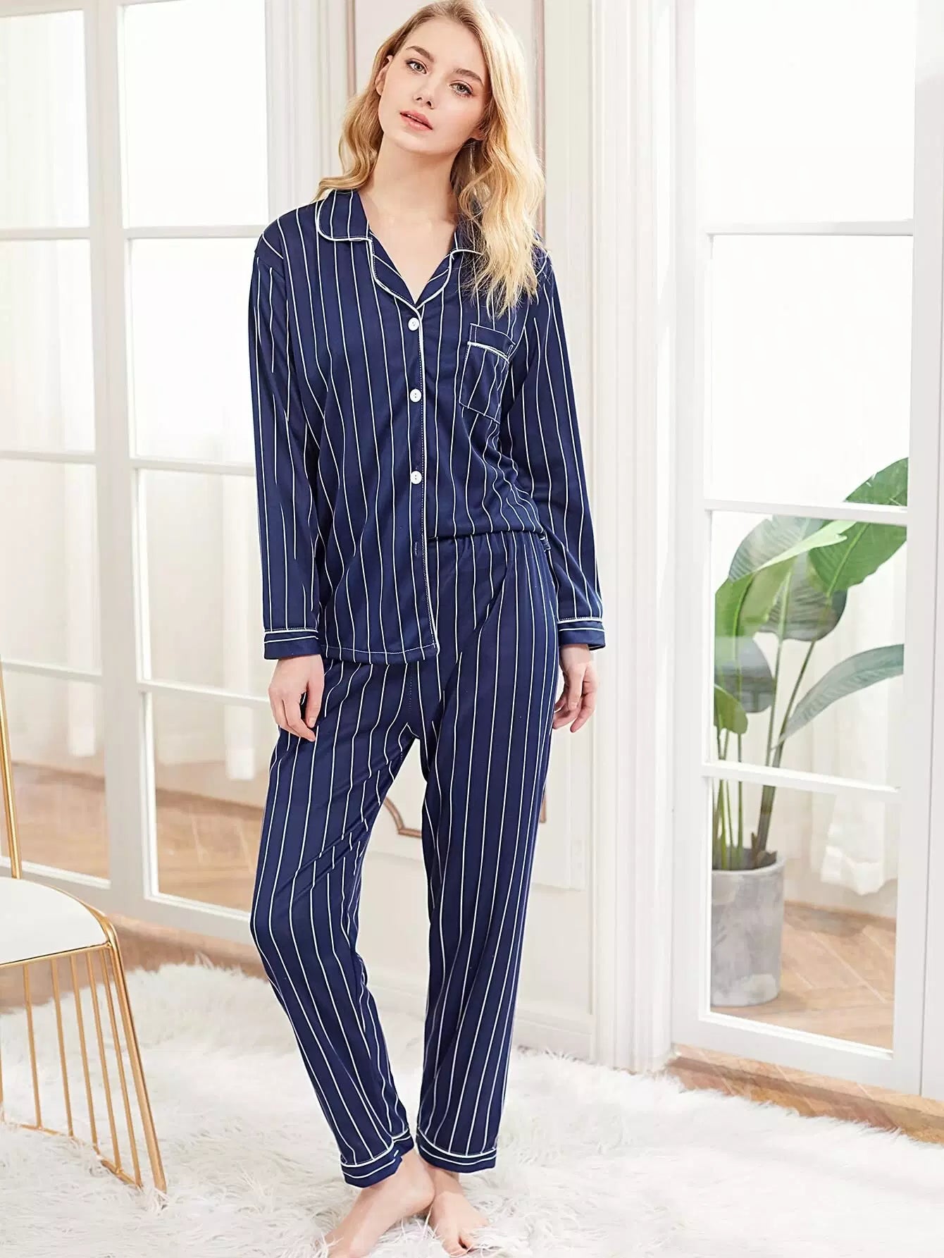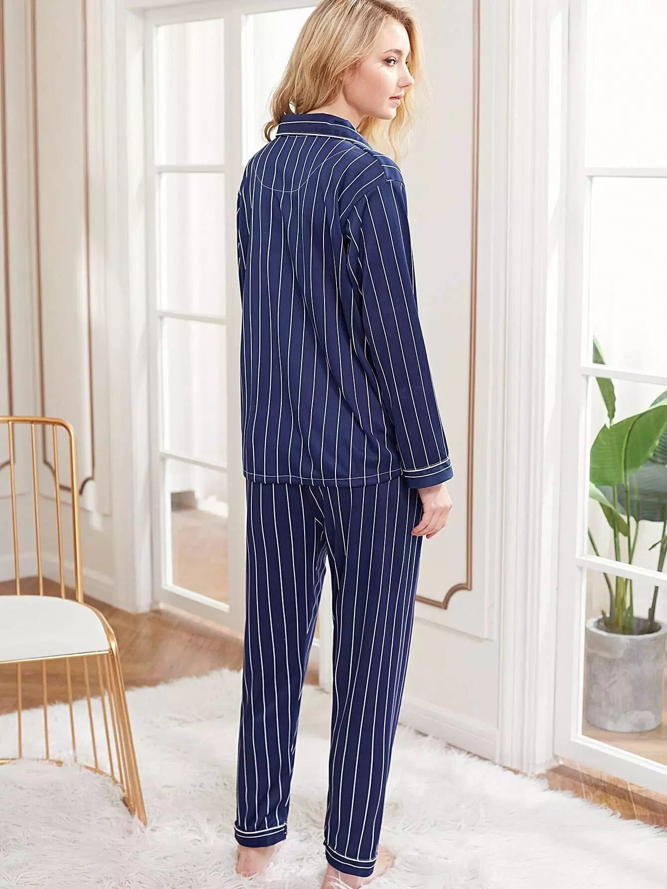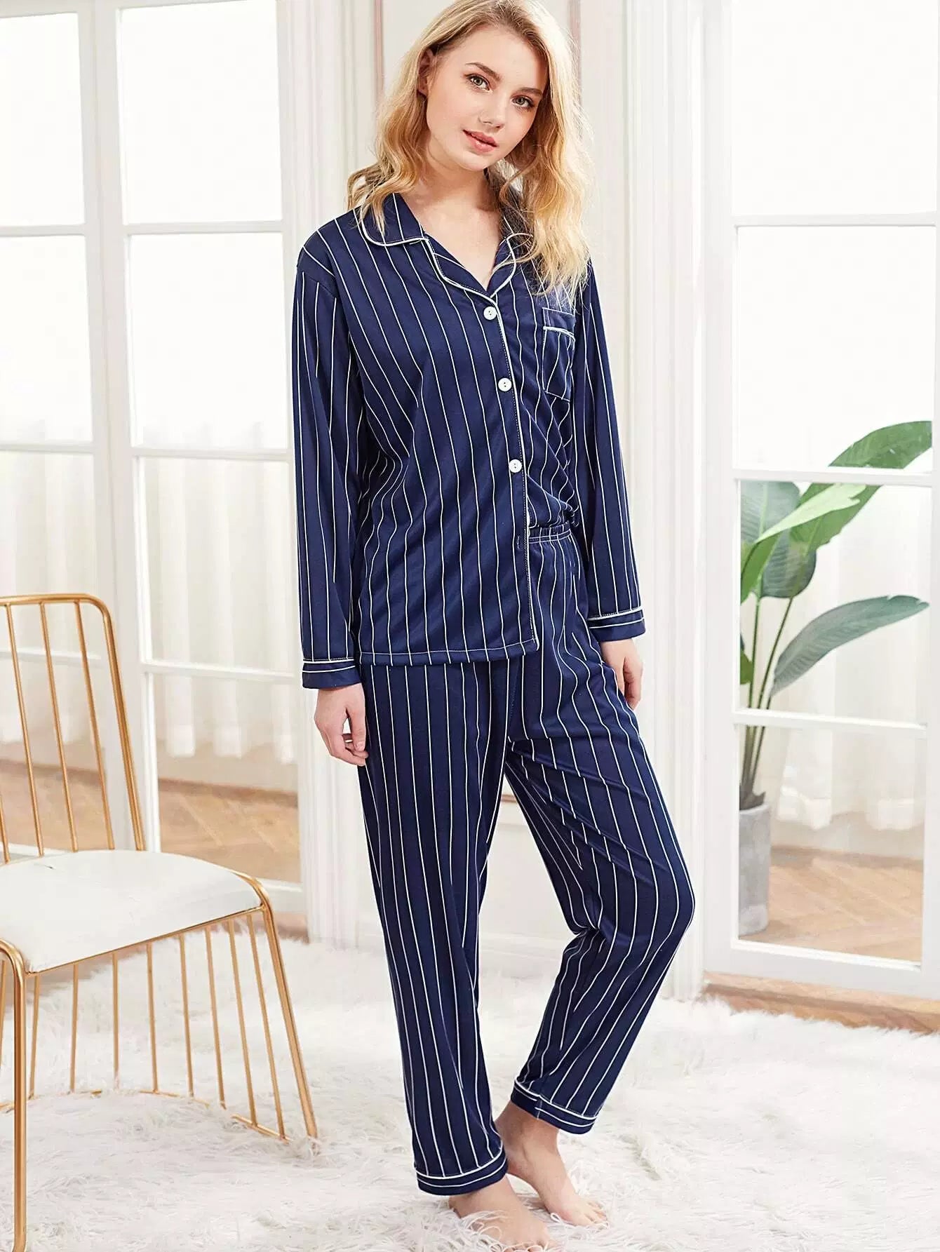 Contrast Binding Striped PJ Set