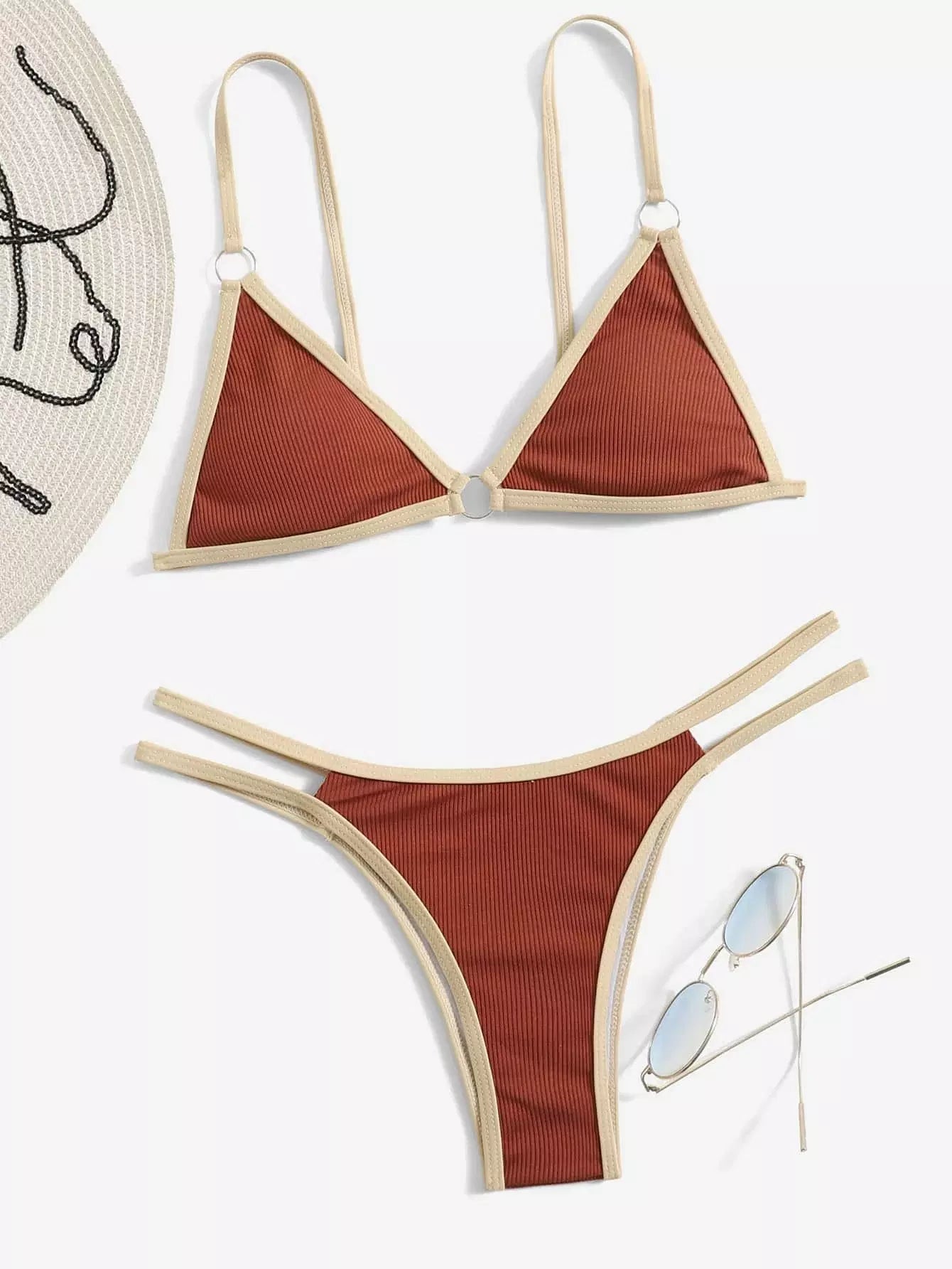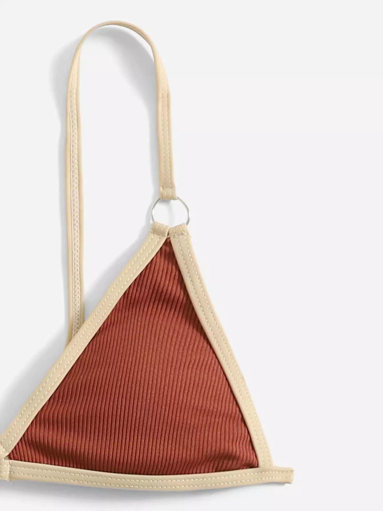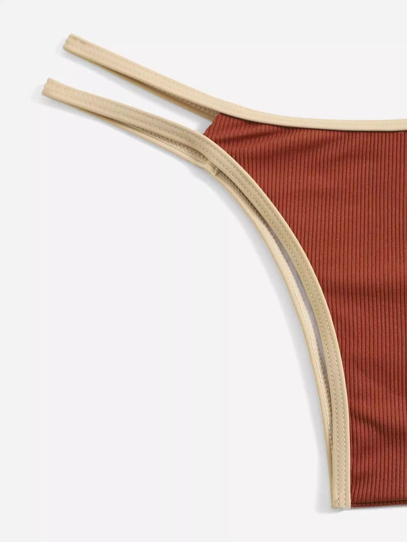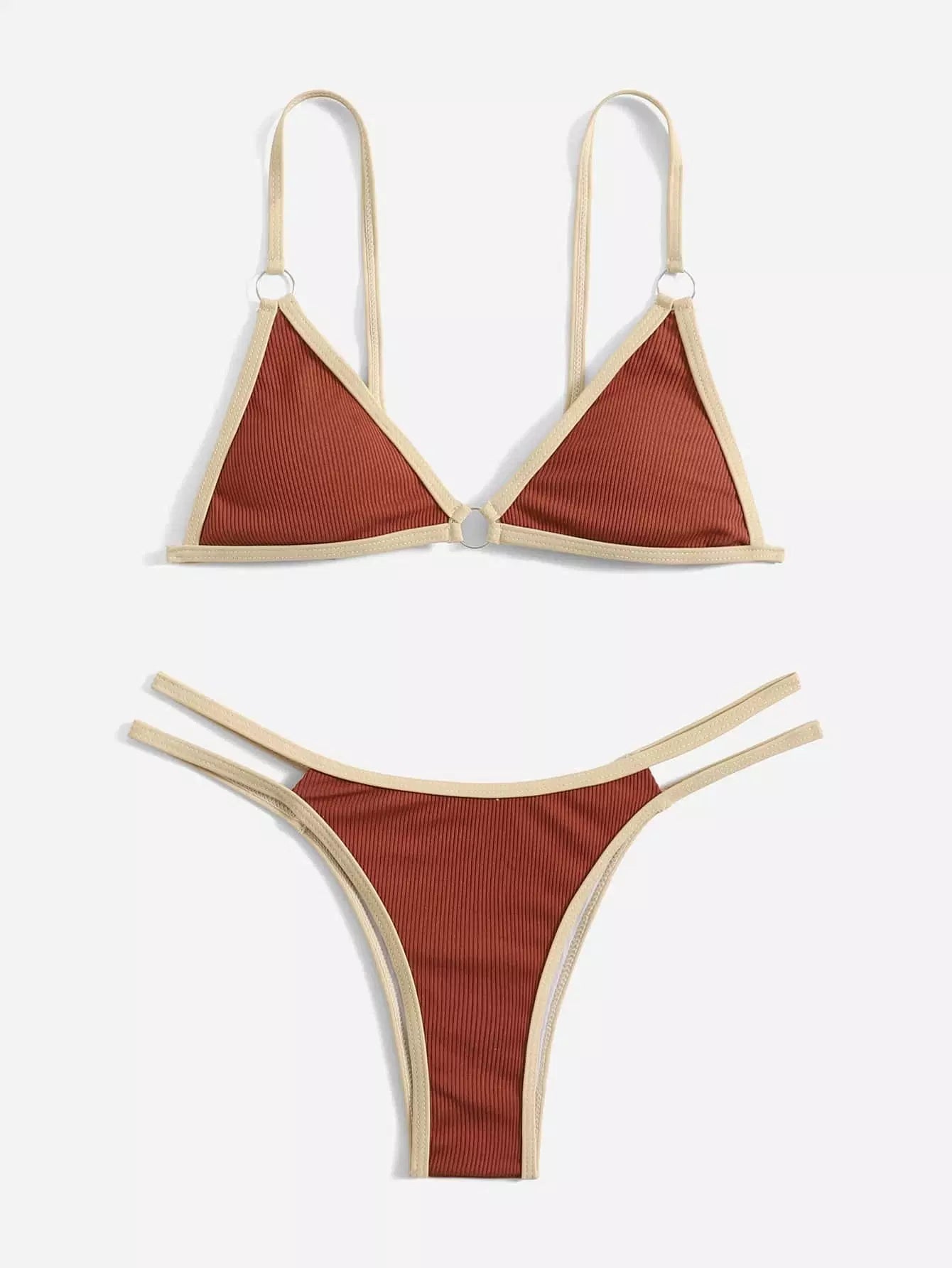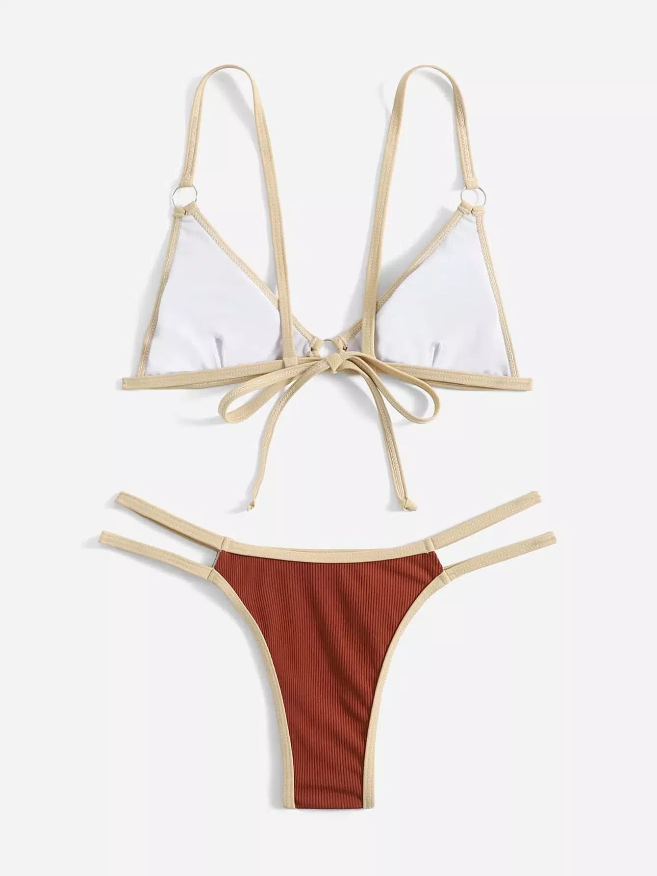 Contrast Binding Triangle Thong Bikini Swimsuit