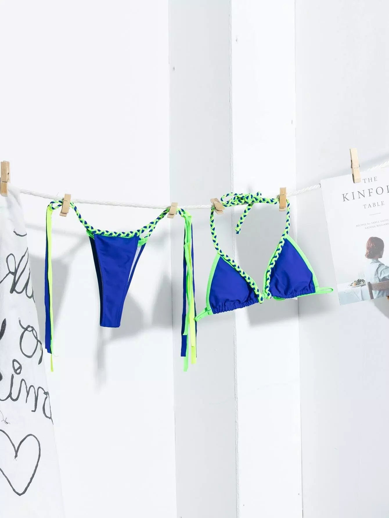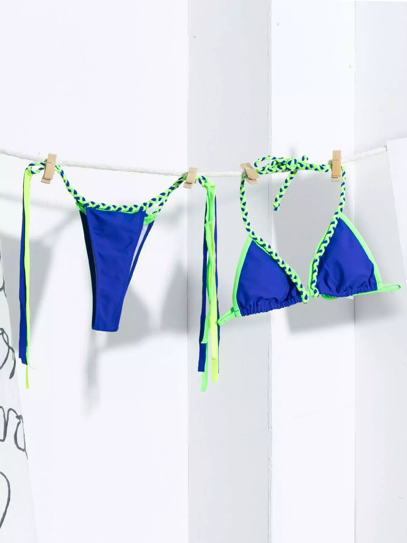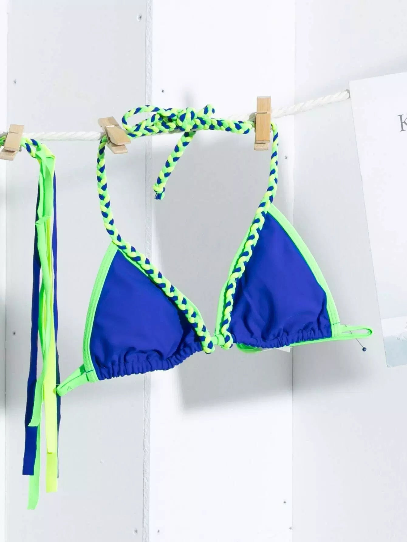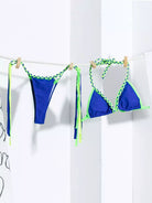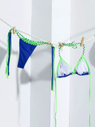 Contrast Binding Triangle Thong Bikini Swimsuit