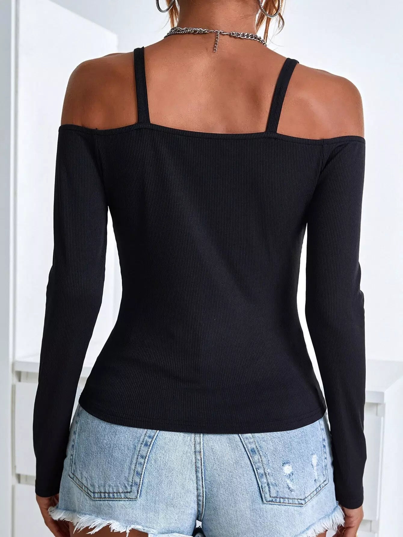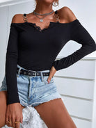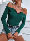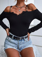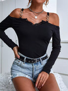 Contrast Lace Chain Detail Cold Shoulder Tee