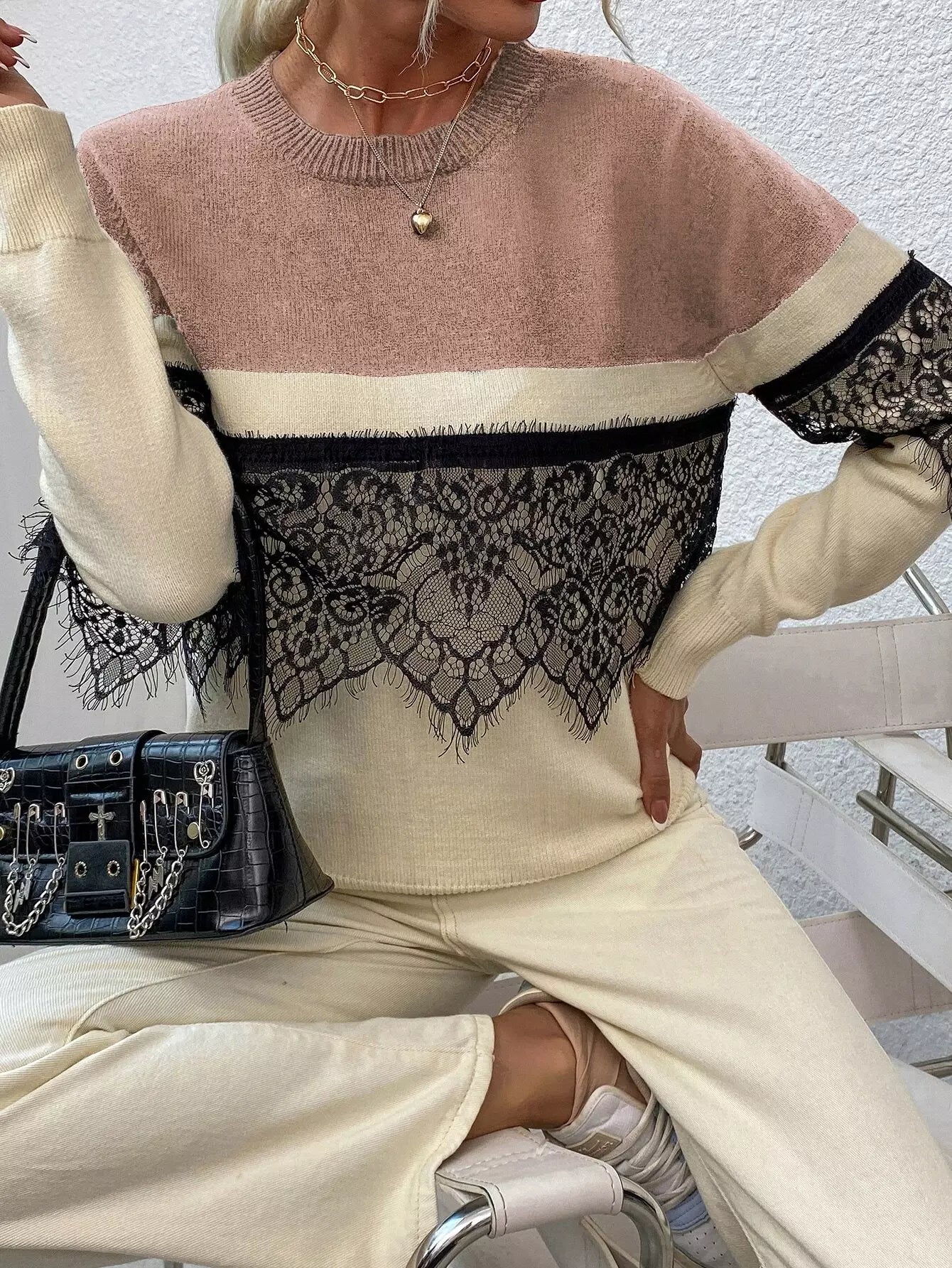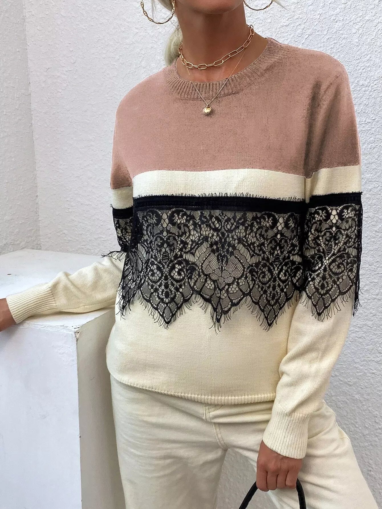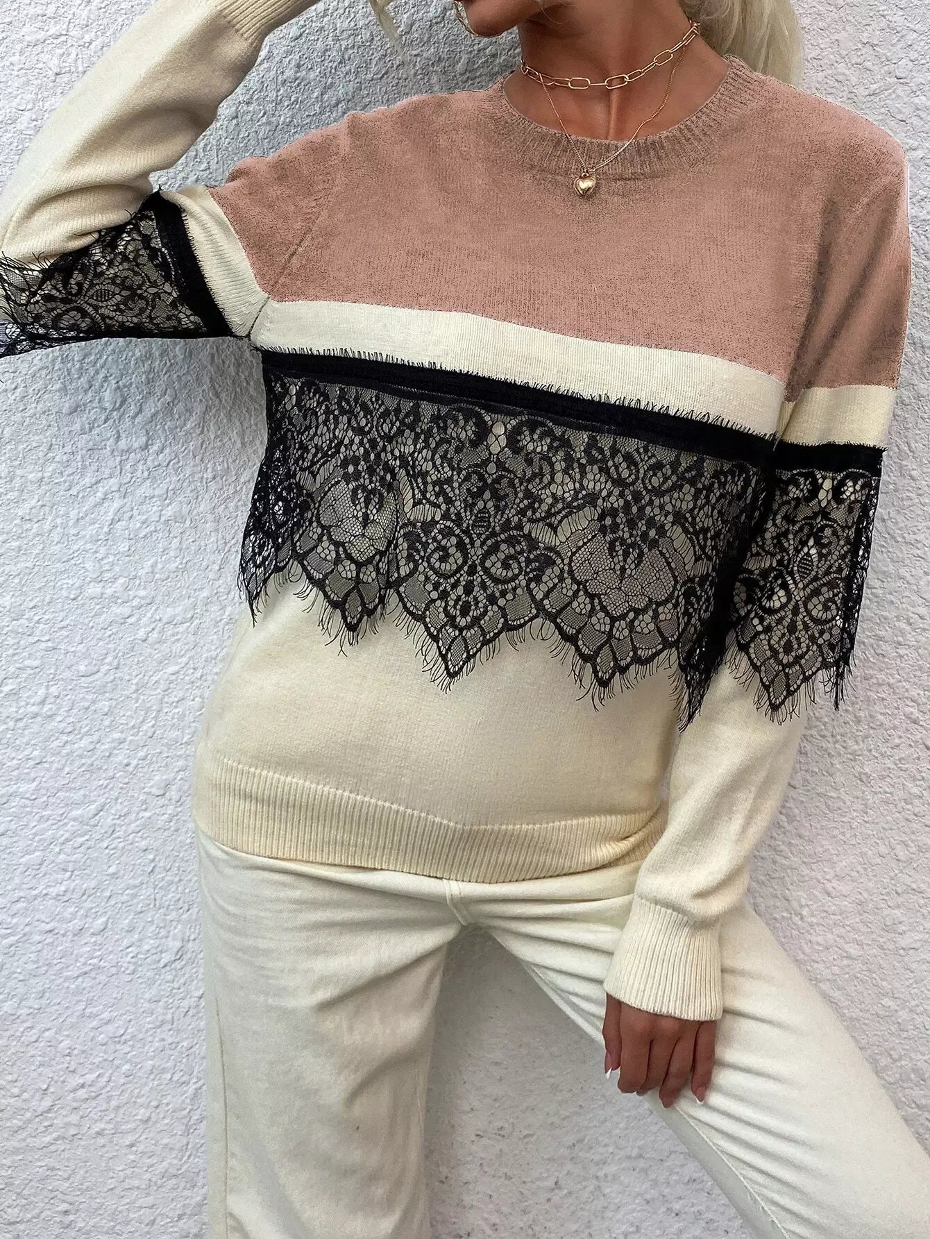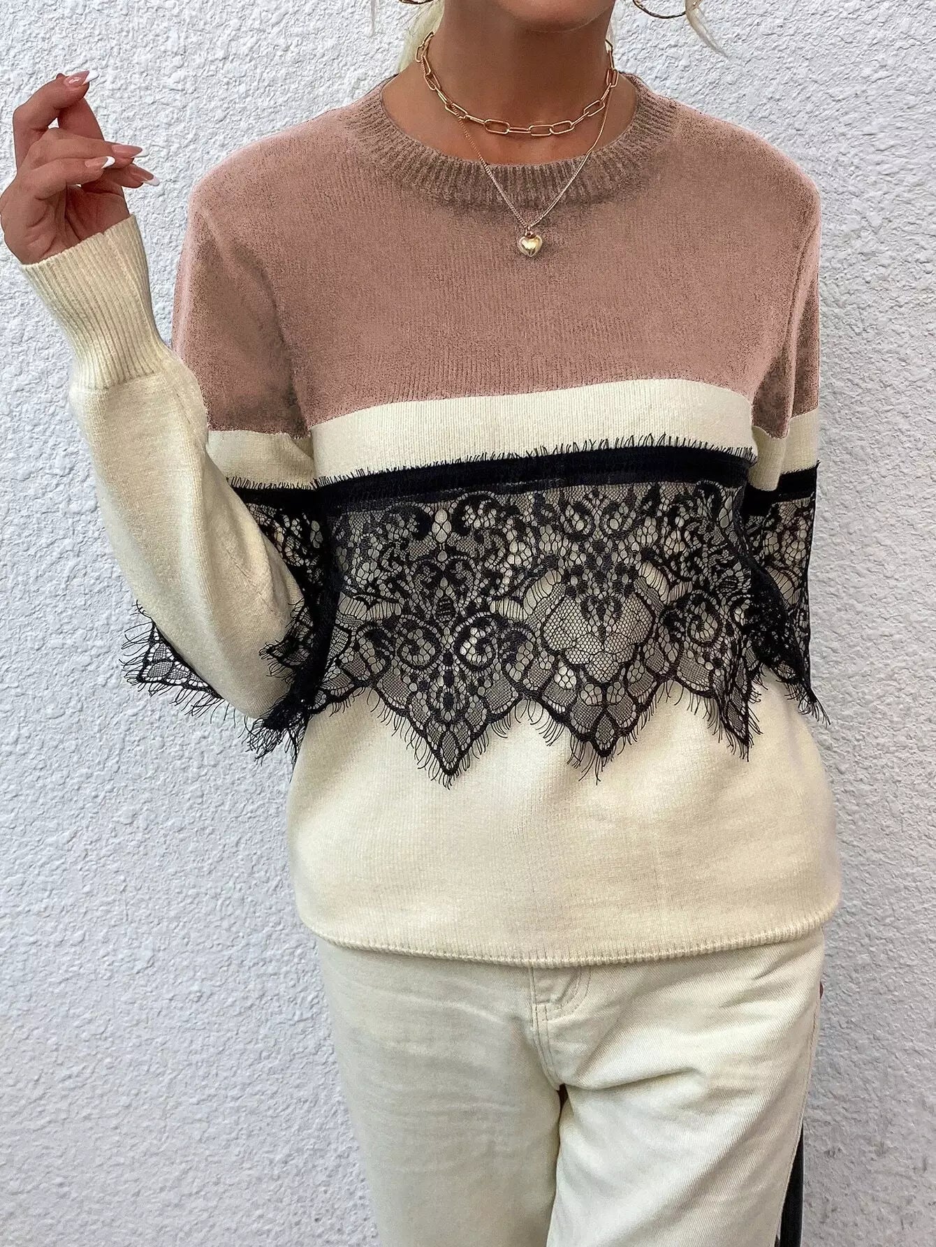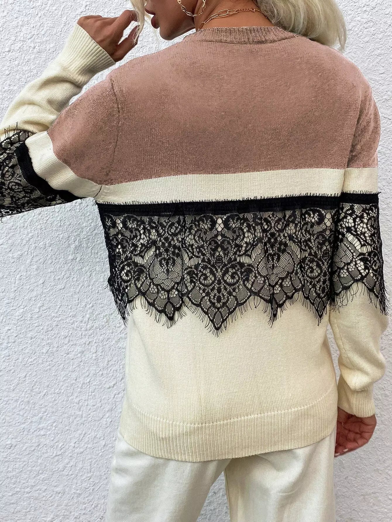 Contrast Lace Colorblock Sweater