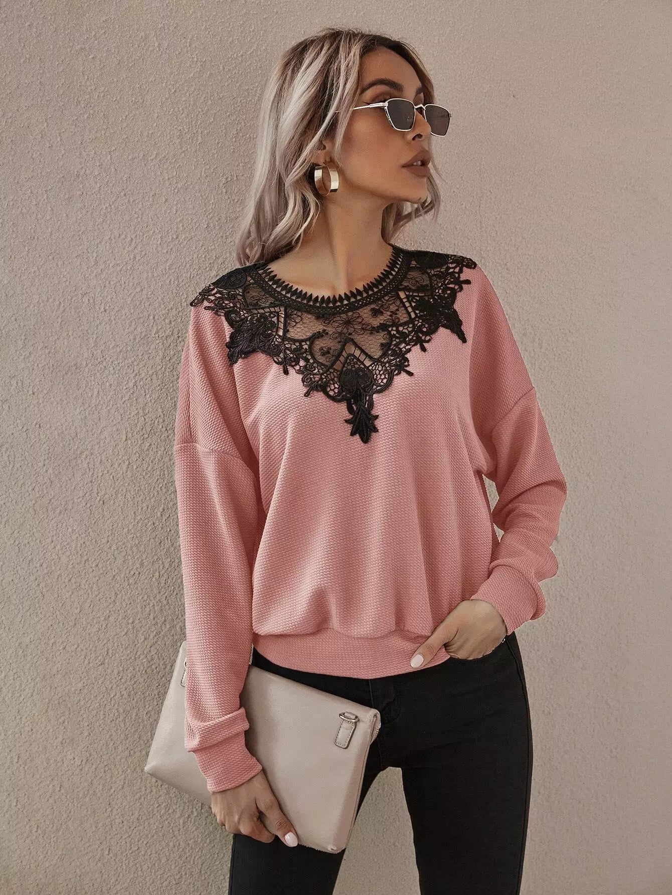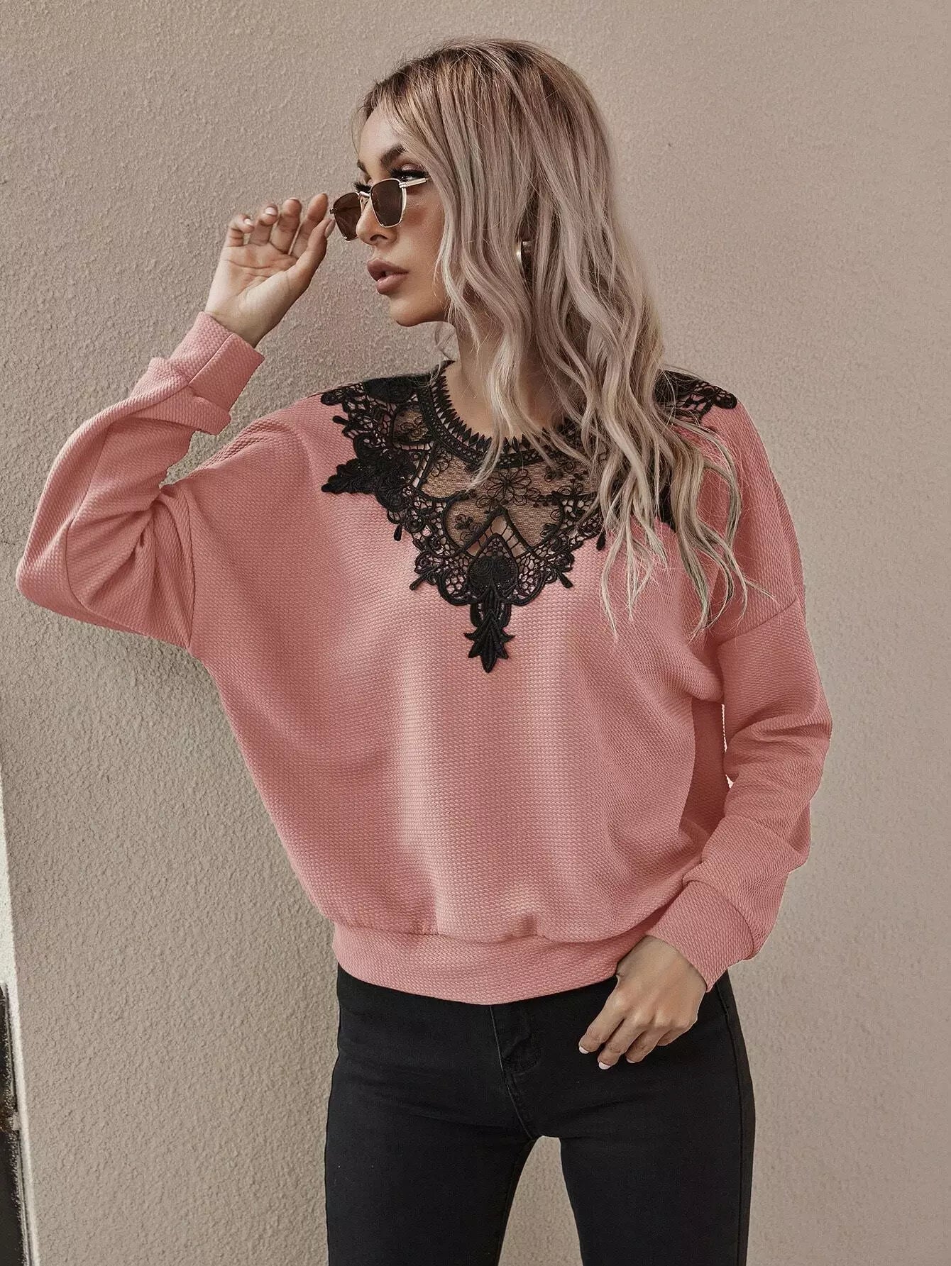 Contrast Lace Drop Shoulder Sweatshirt