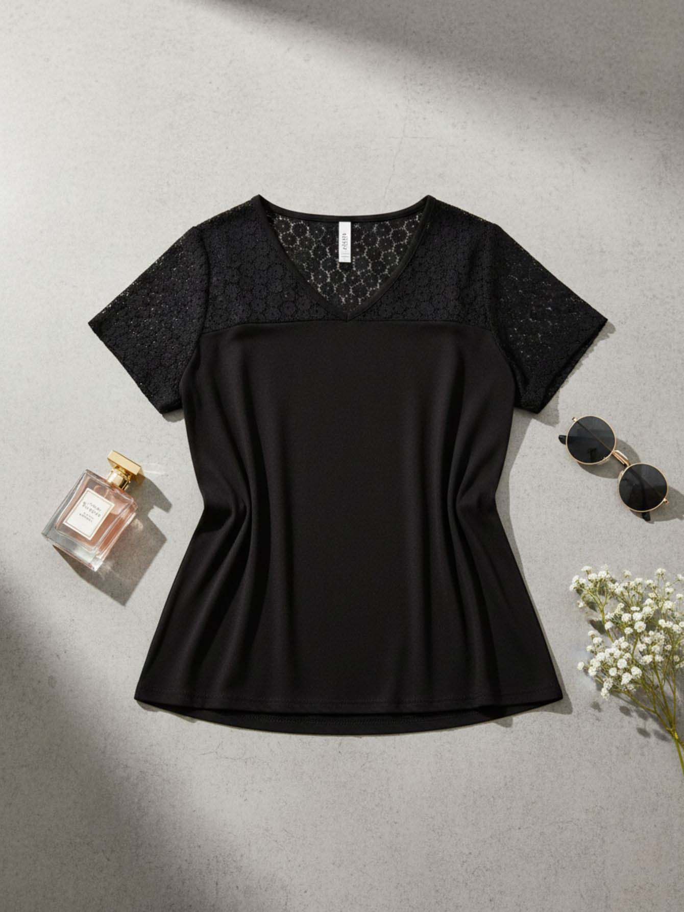 Contrast Lace V Neck Tee