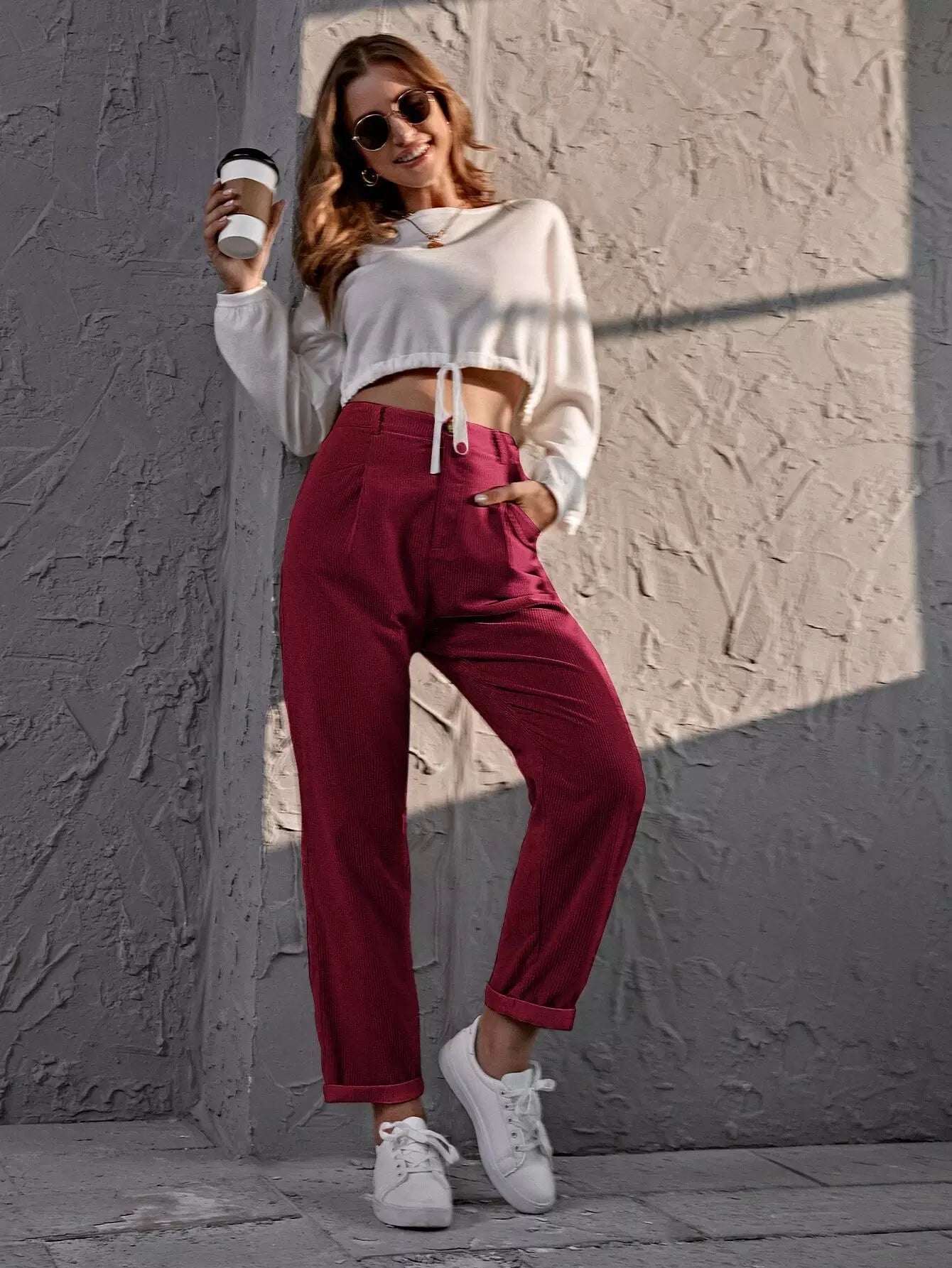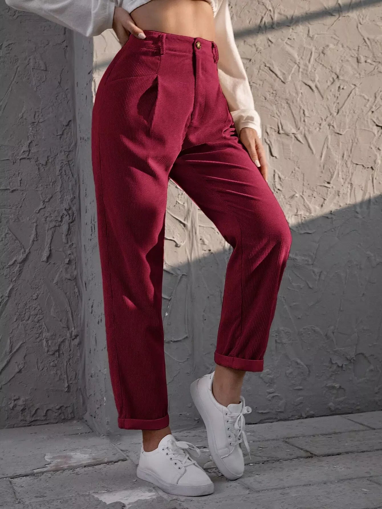 Corduroy High Rise Straight Pants