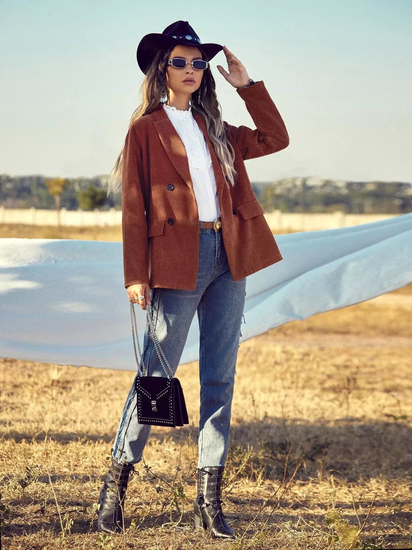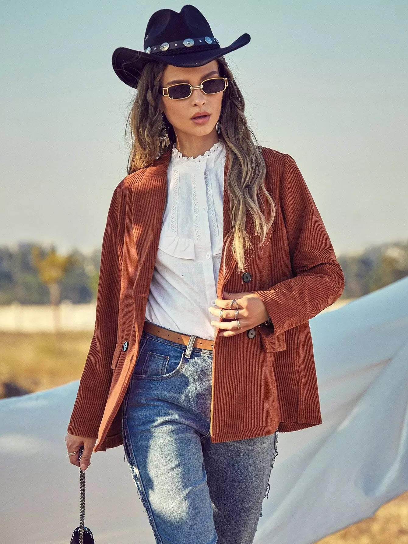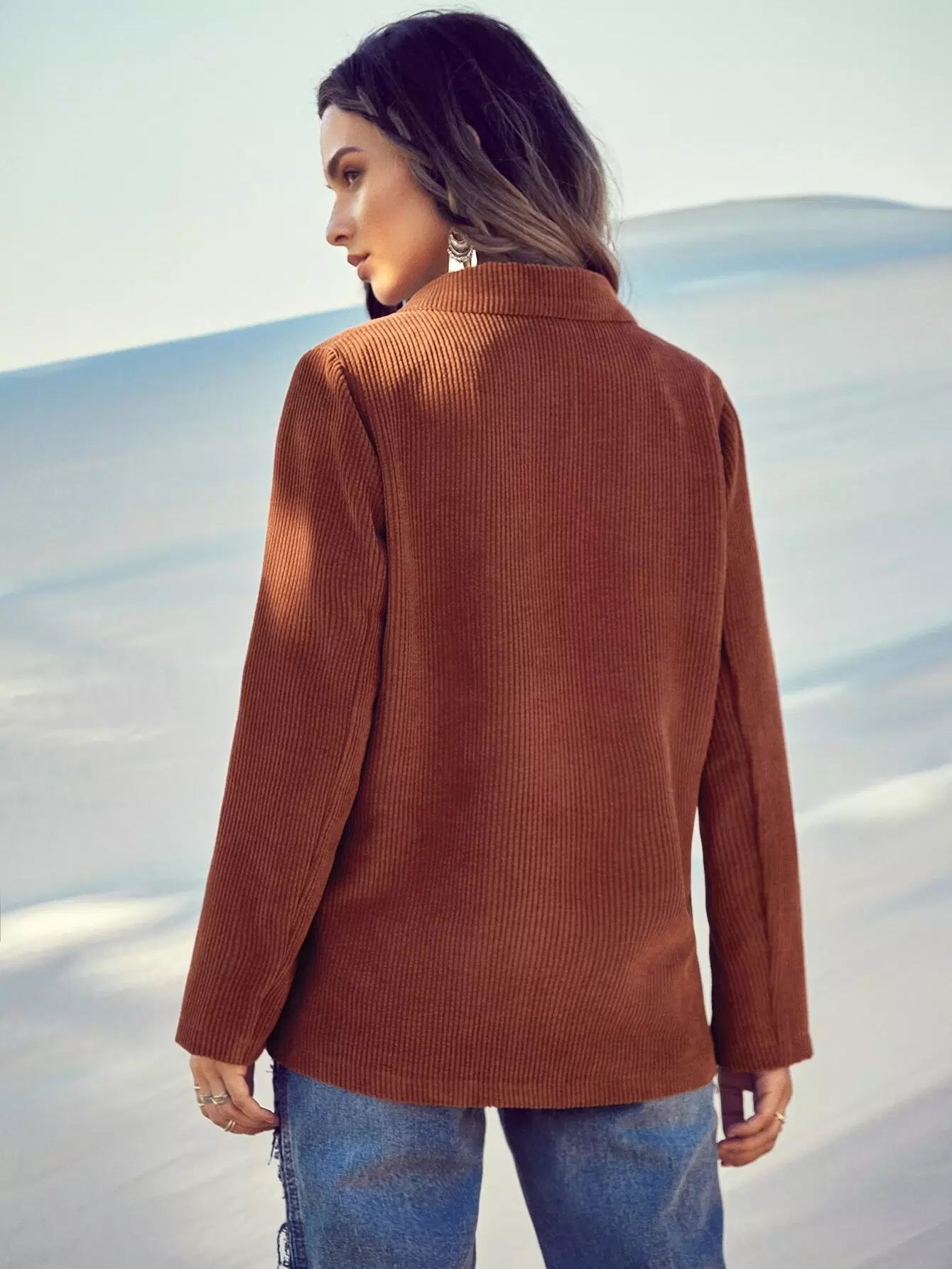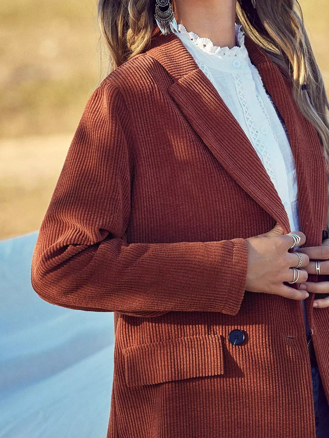 Women - Corduroy Lapel Neck Double Breasted Blazer