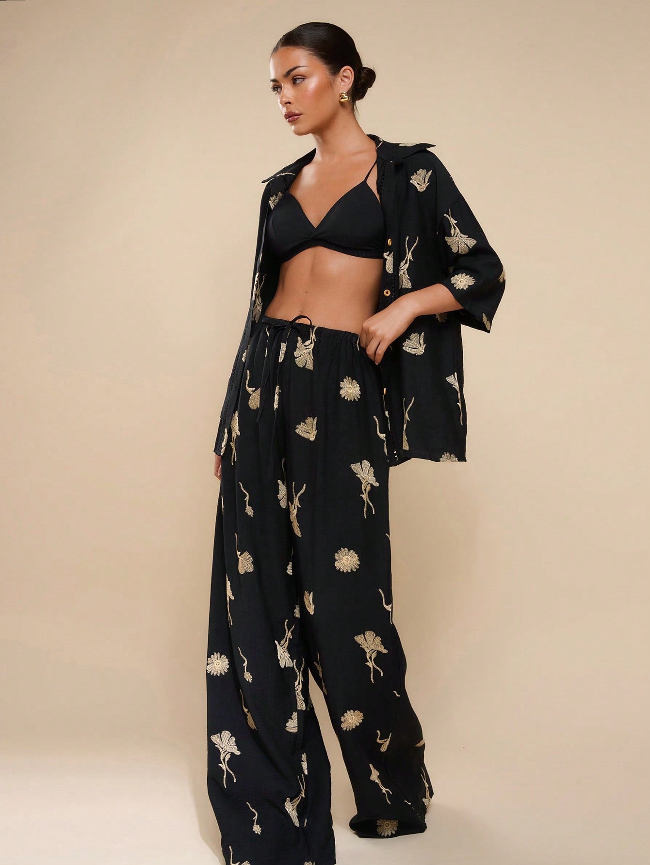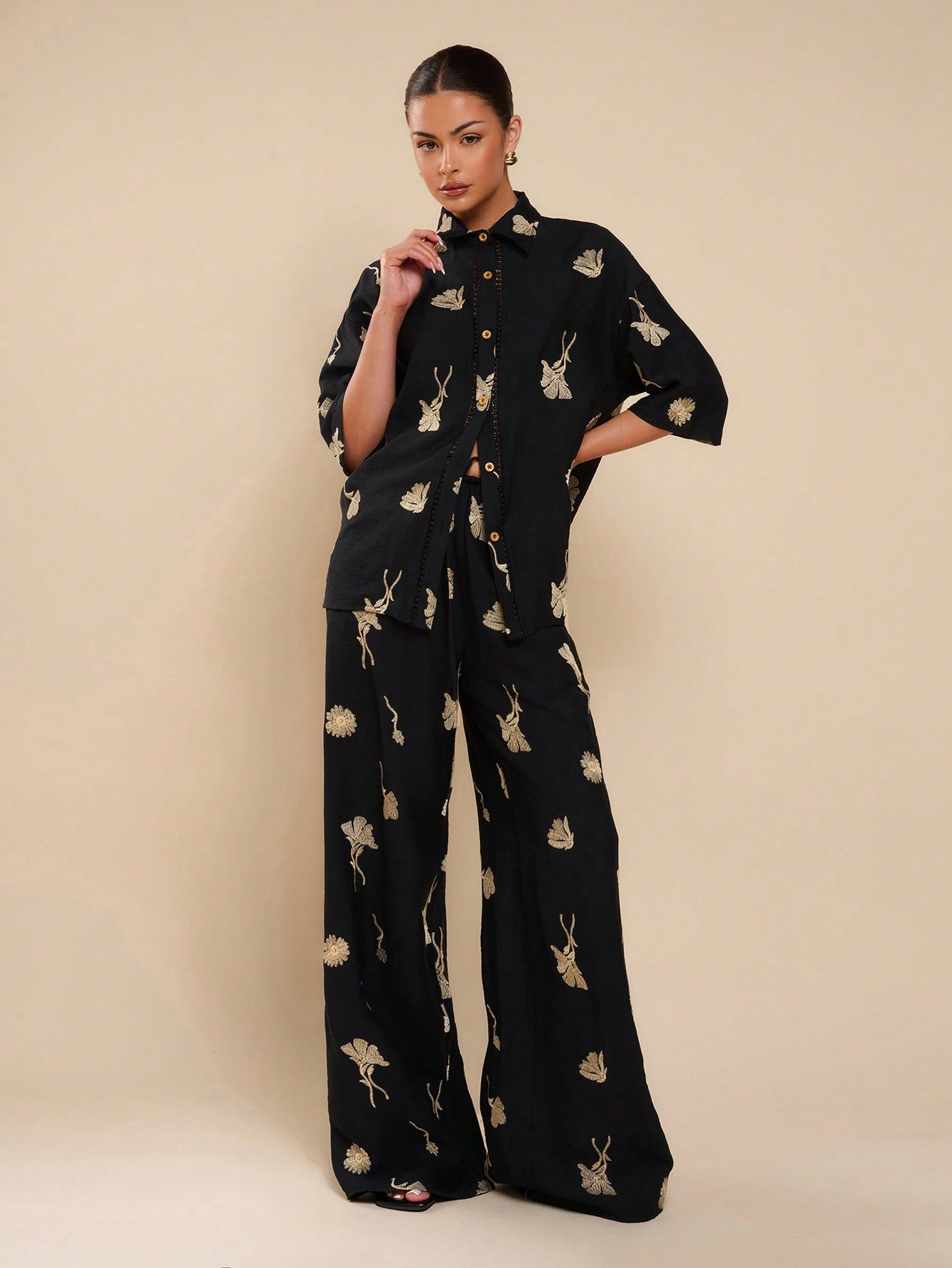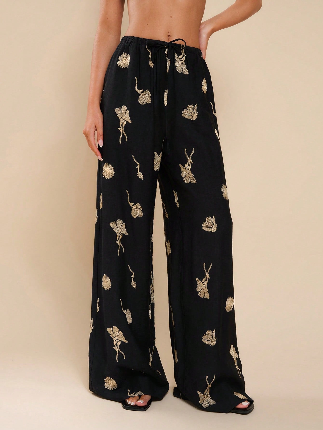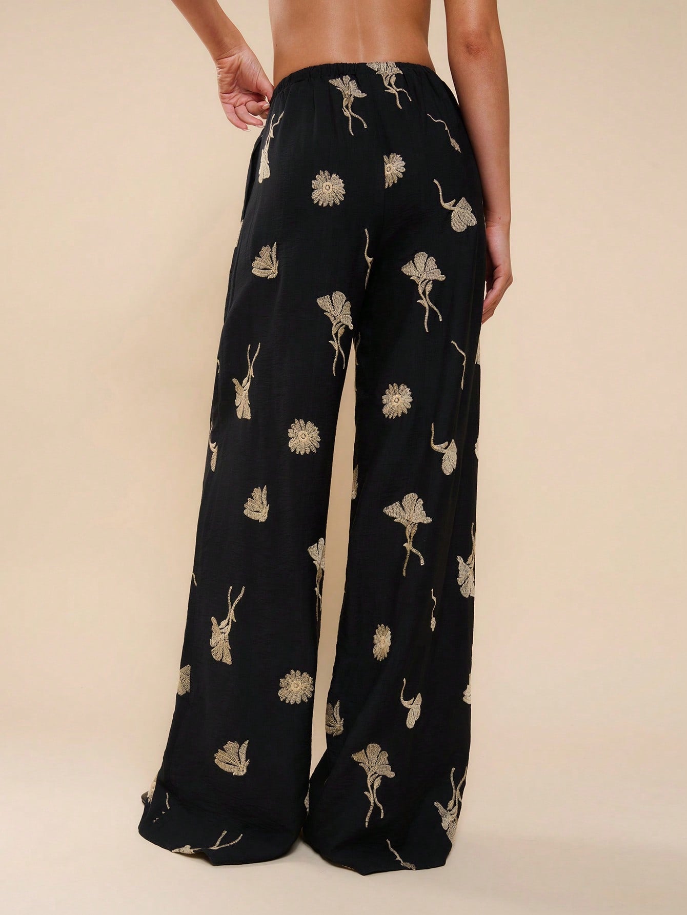 COSMINA Women Embroidery Decor Casual Versatile Straight Leg Pants For Everyday Wear