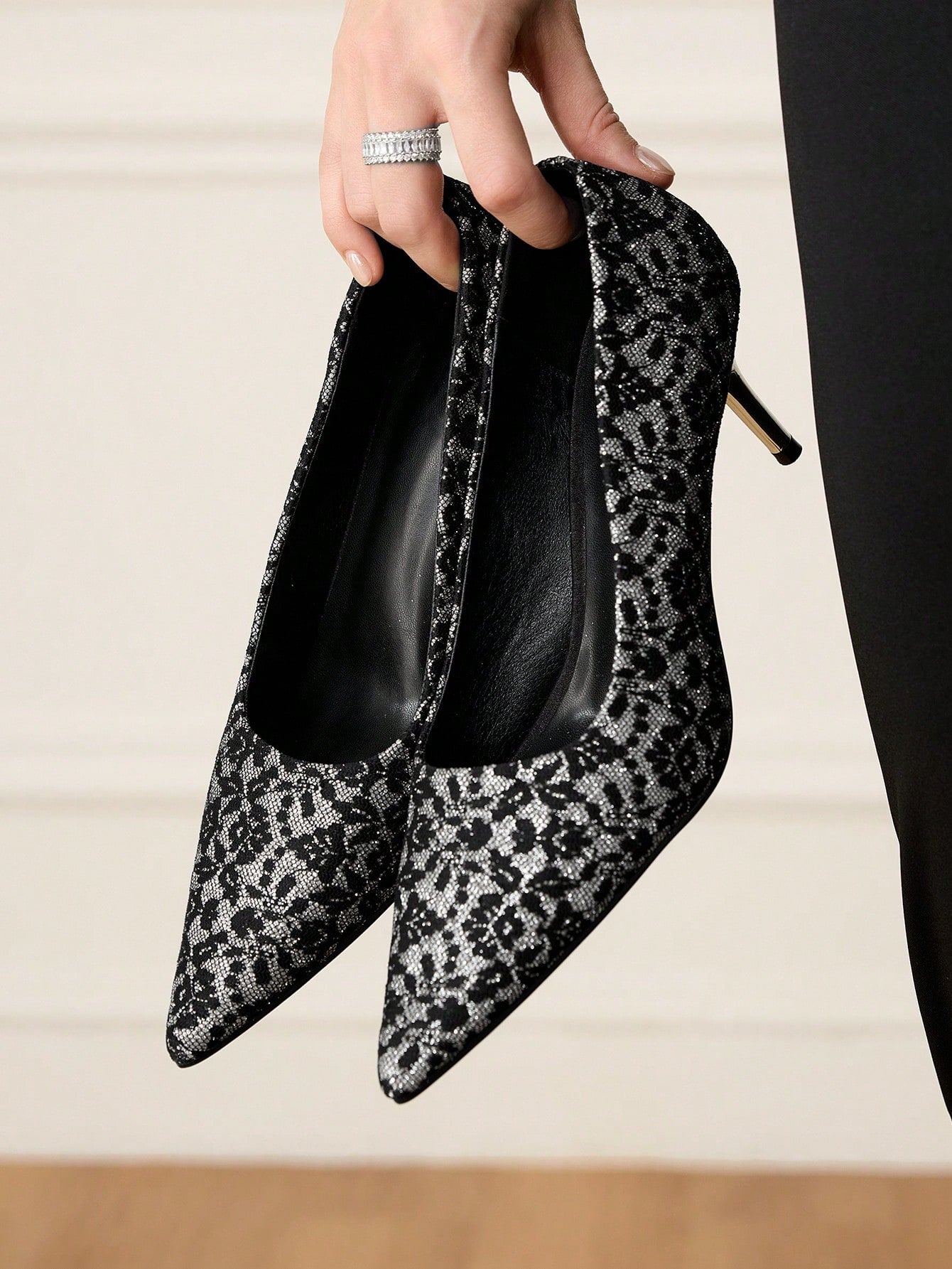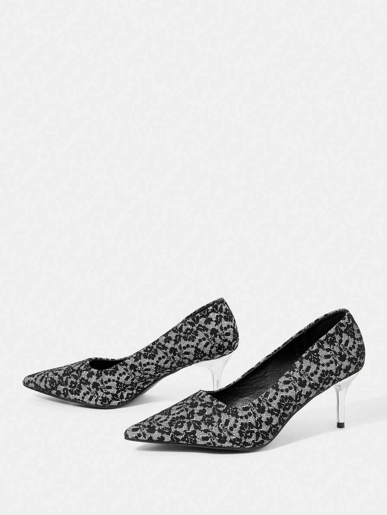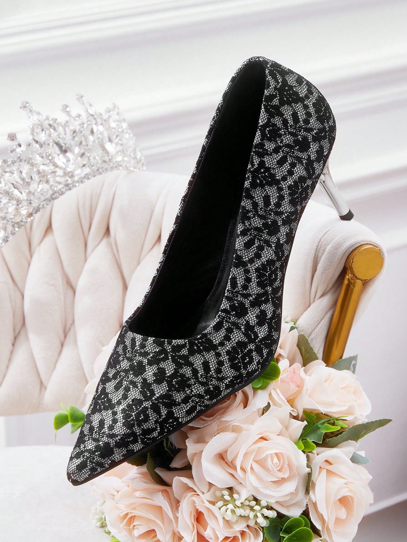 CUCCOO HITCHD Women's Lace Slip-On Stiletto High Heel Shoes