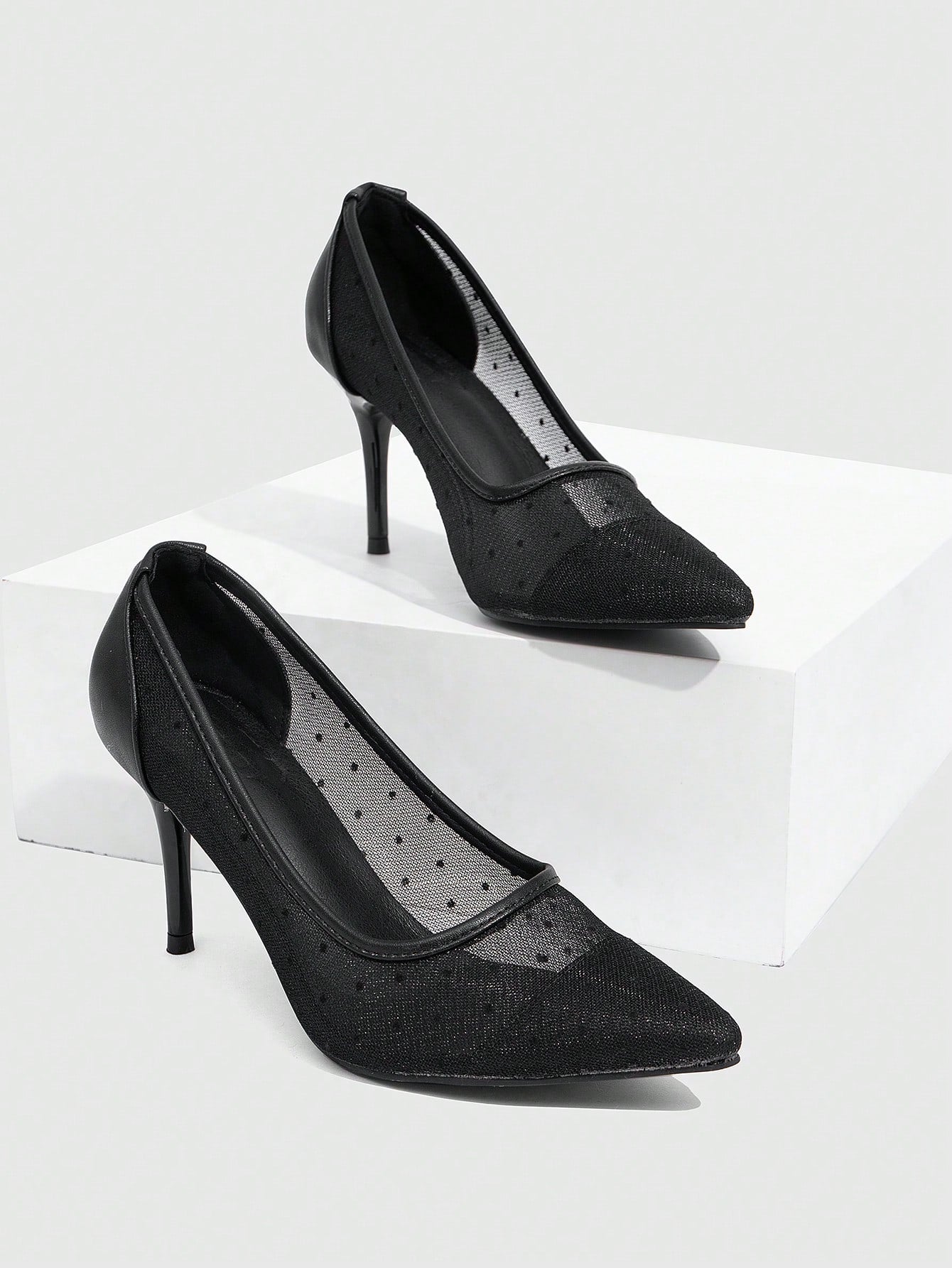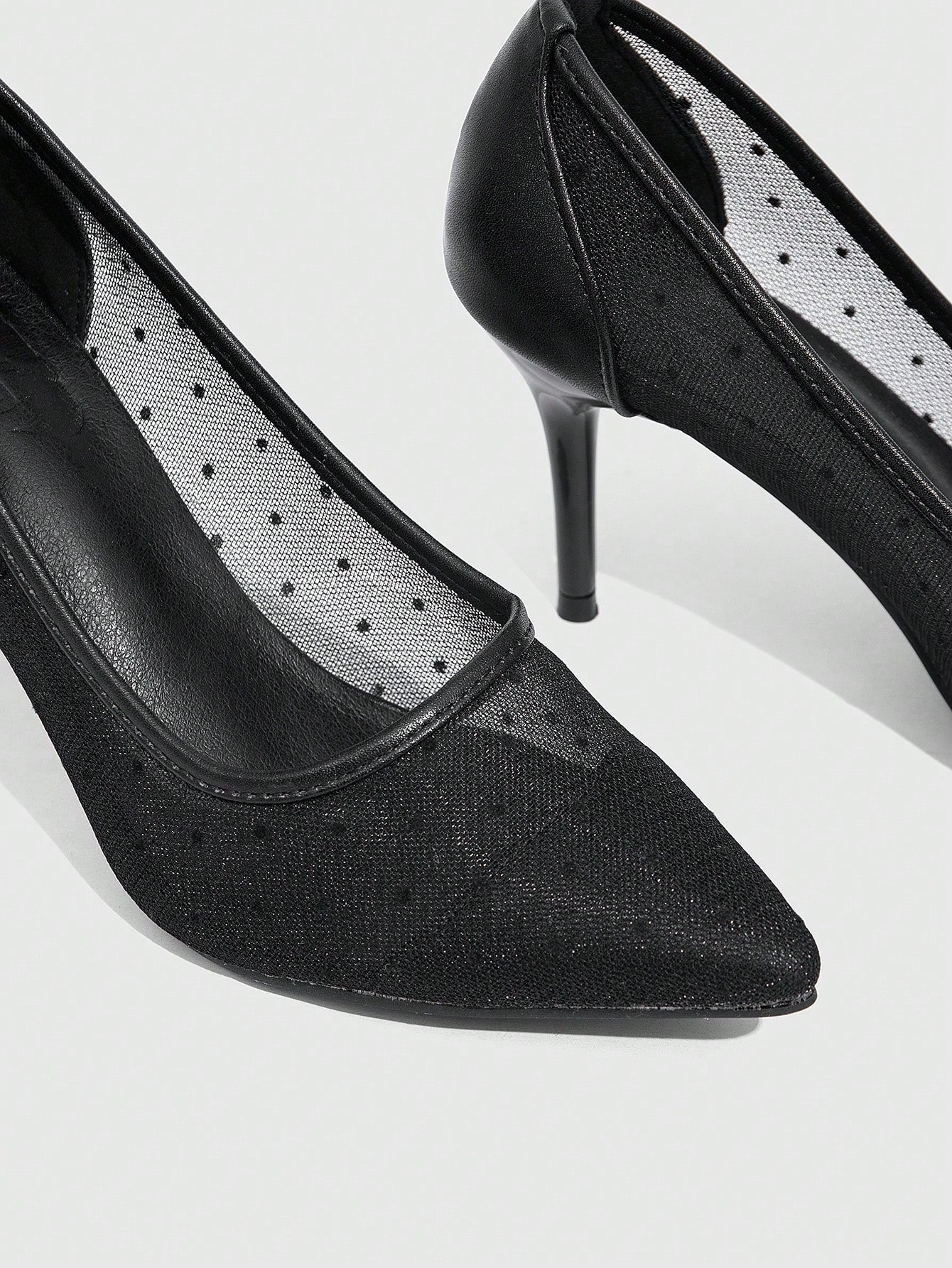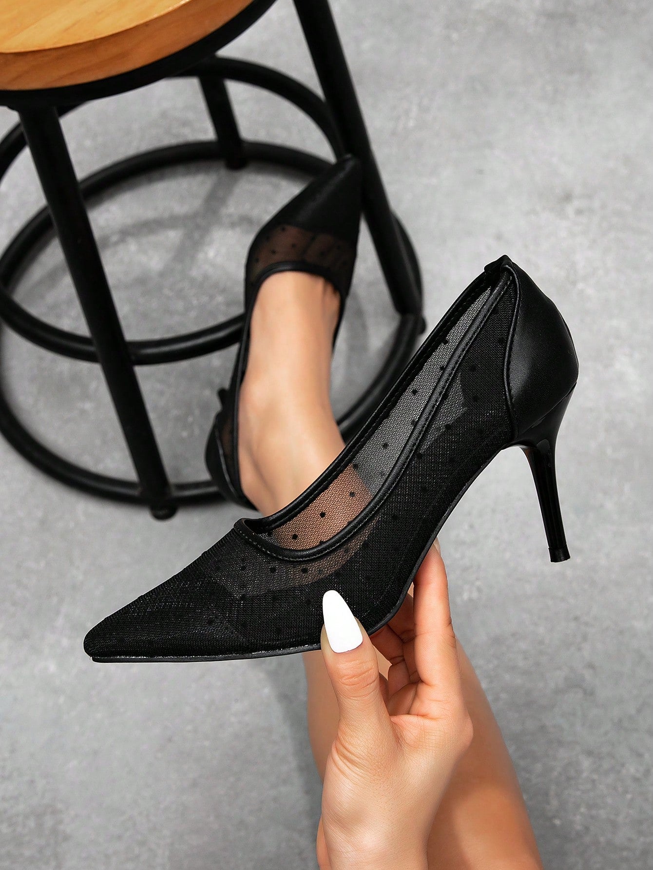 CUCCOO SZL Fashionable Sexy Black Mesh High Heels For Women