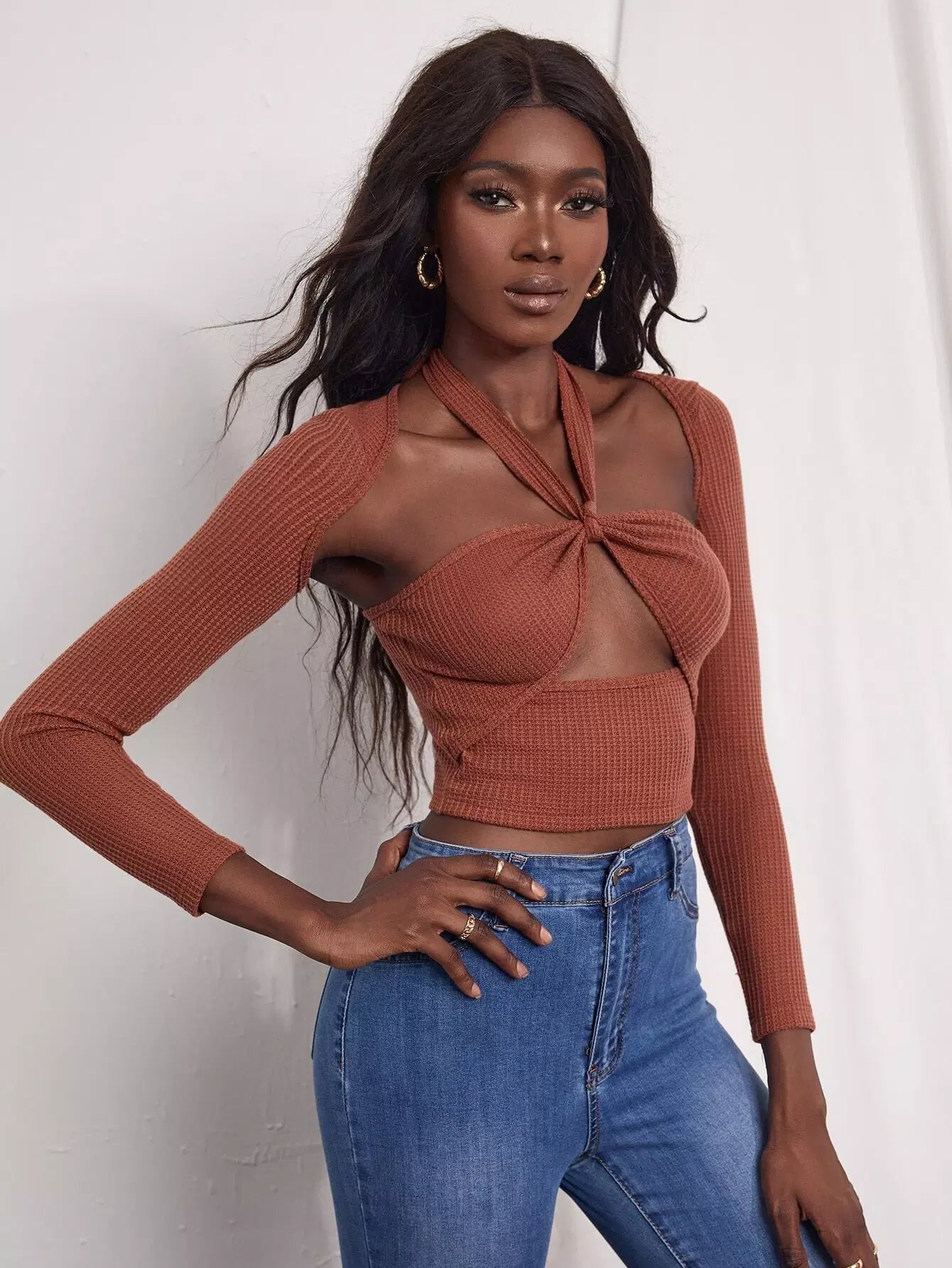 Cut Out Front Halter Top & Super Crop Coat