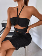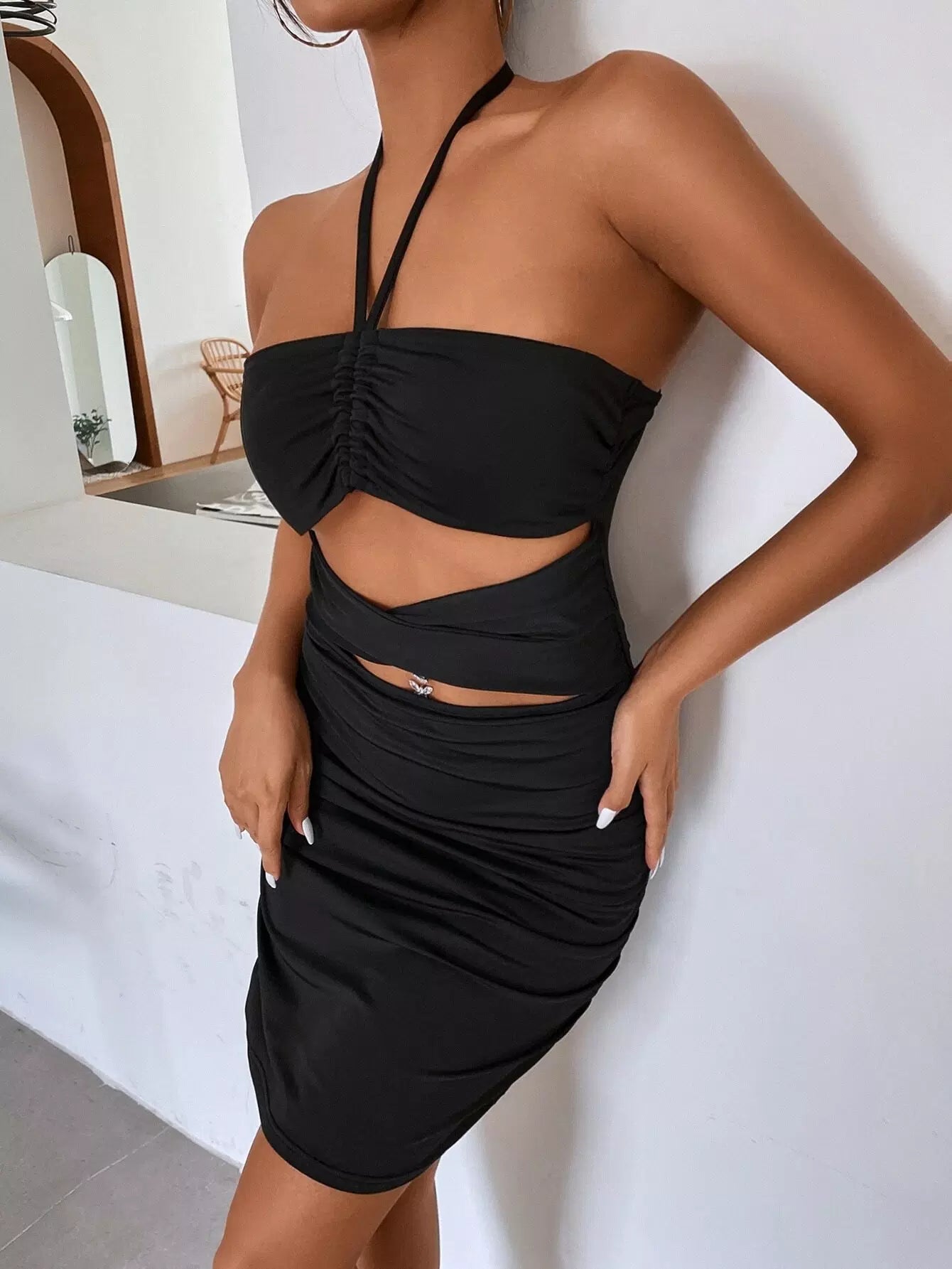Cut Out Ruched Halter Neck Bodycon Dress
