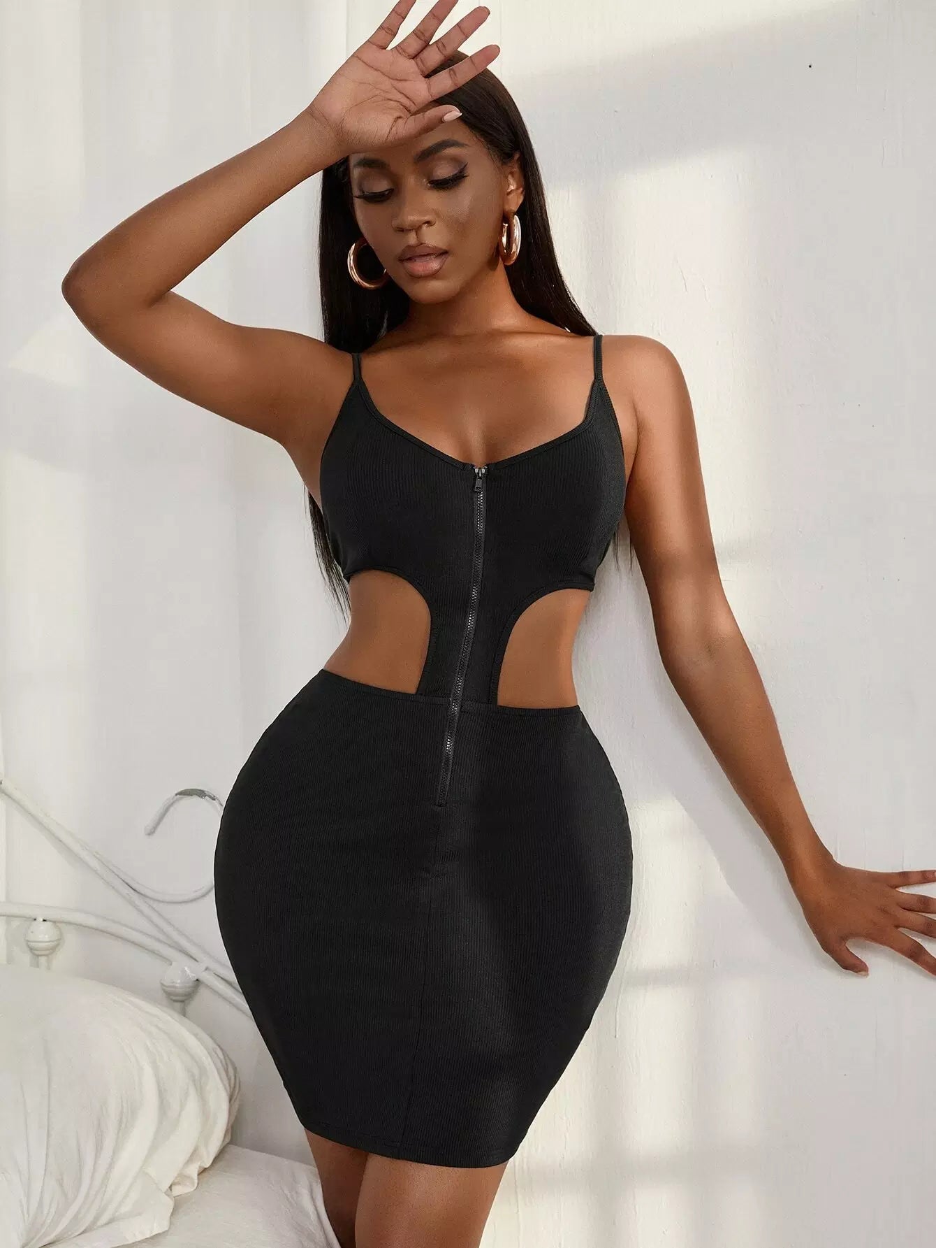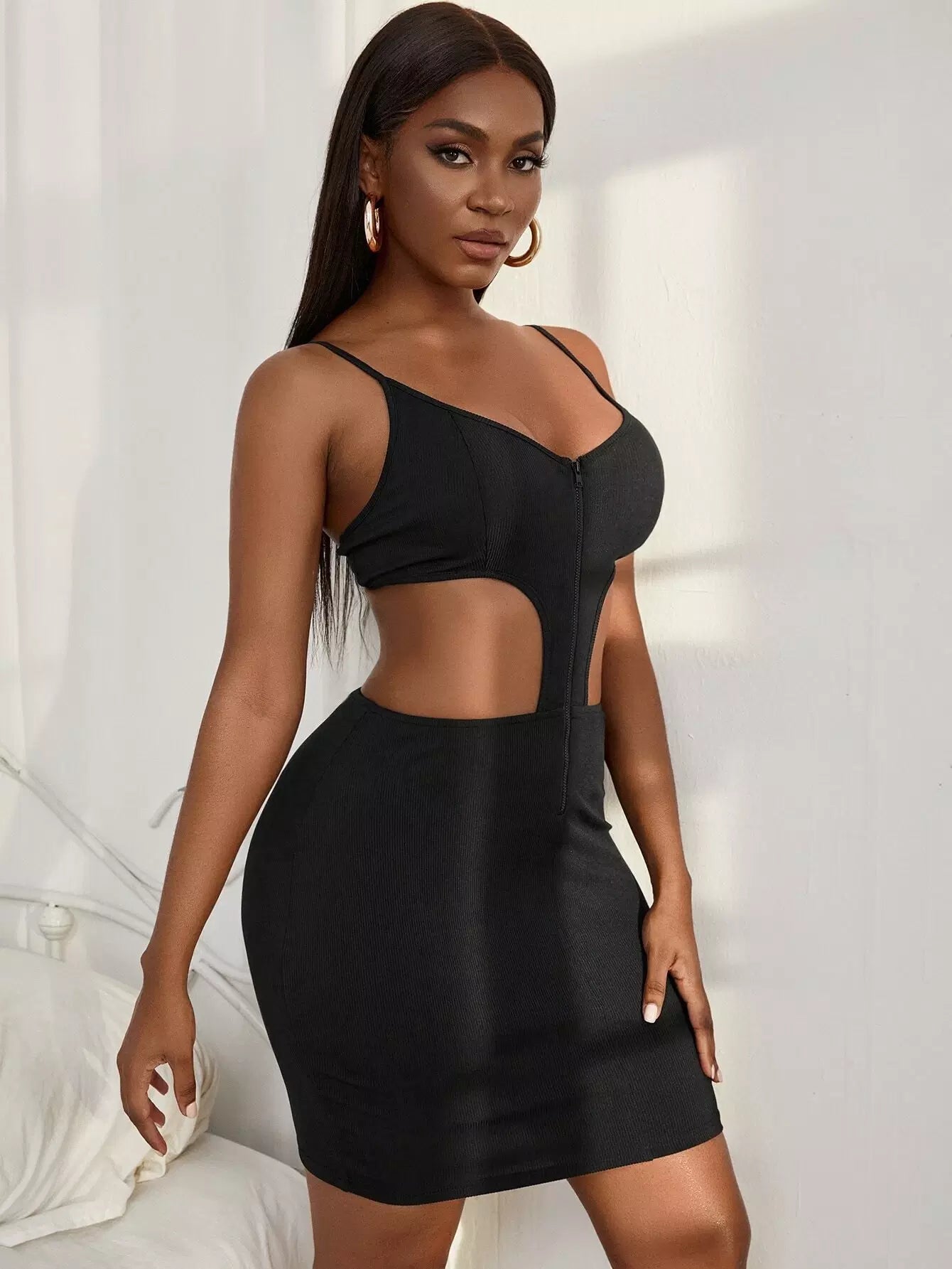 Cut Out Zip Front Bodycon Dress