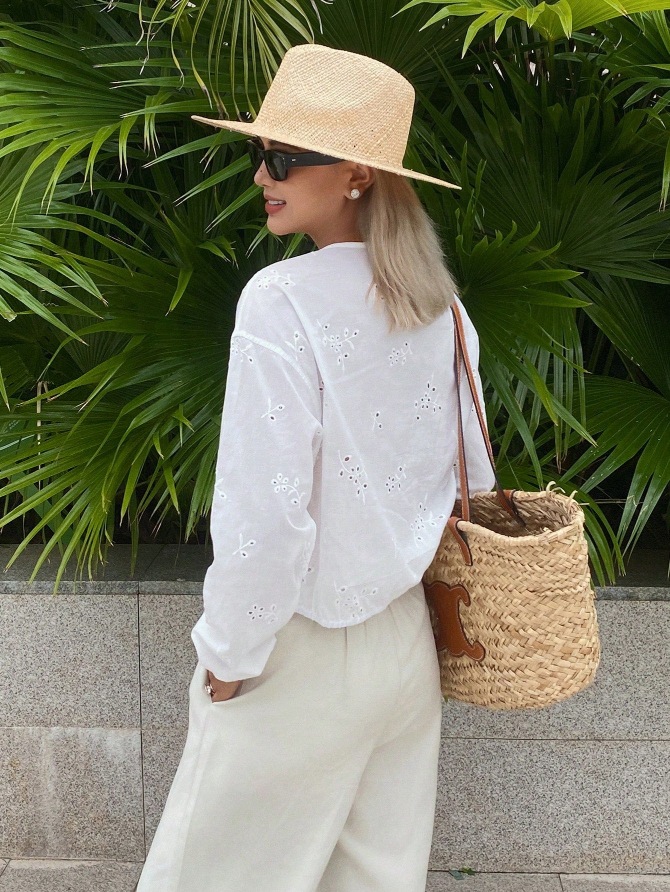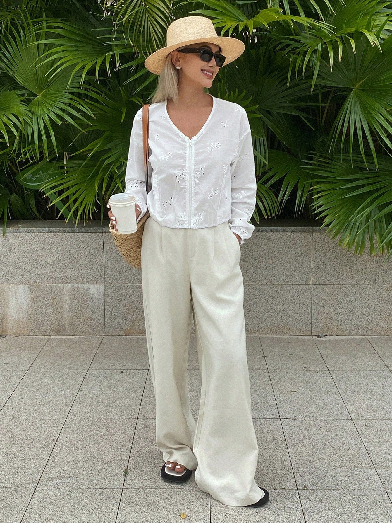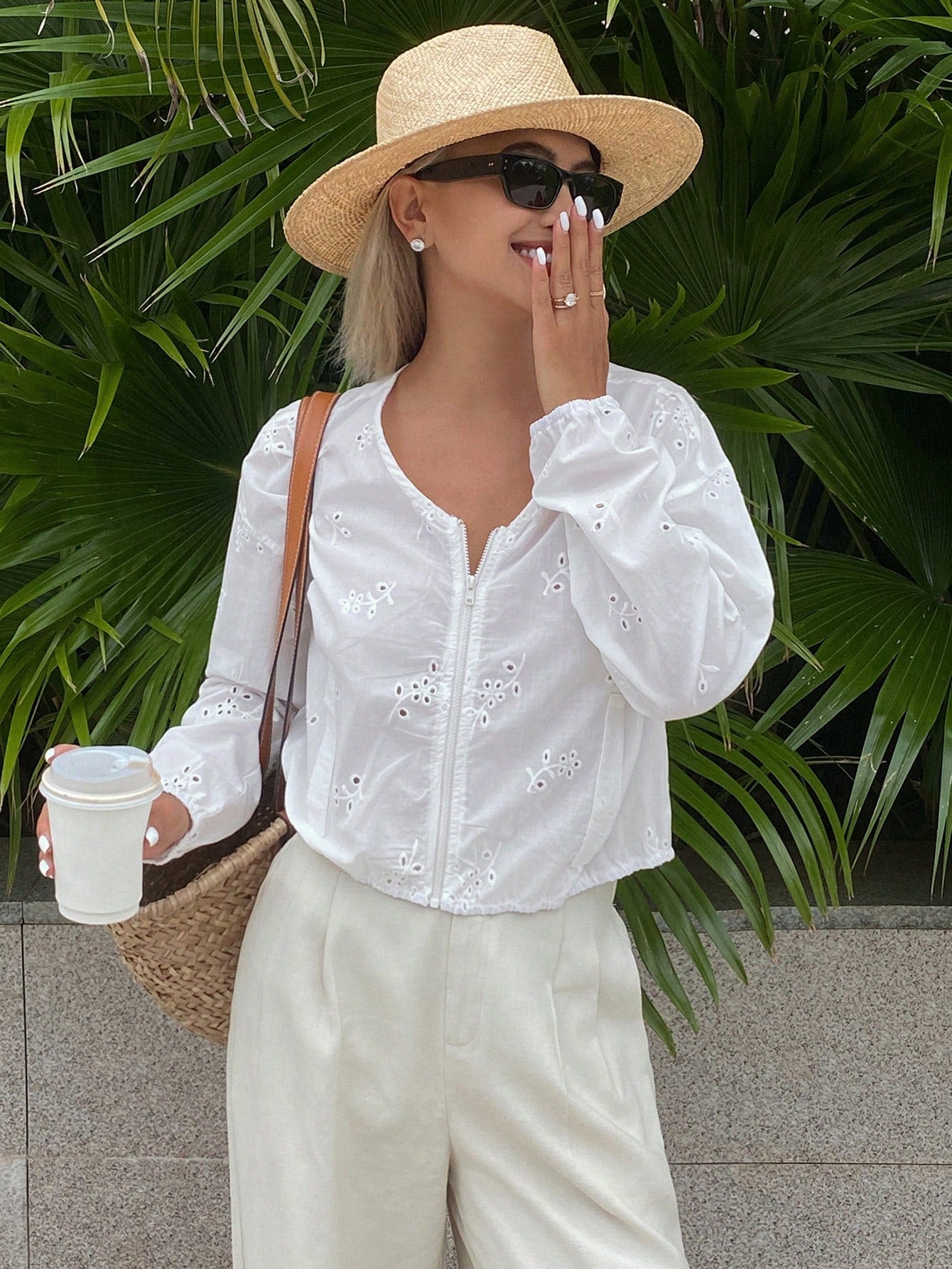 DAZY Hollow Out Jacquard V-Neck Zip-Up Casual Vacation Lightweight Summer Jacket For Women