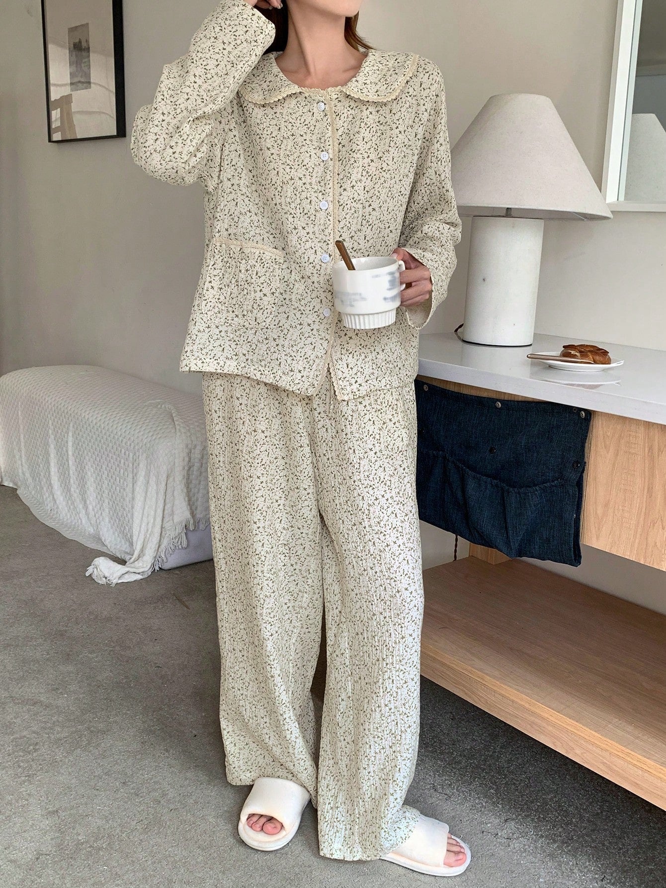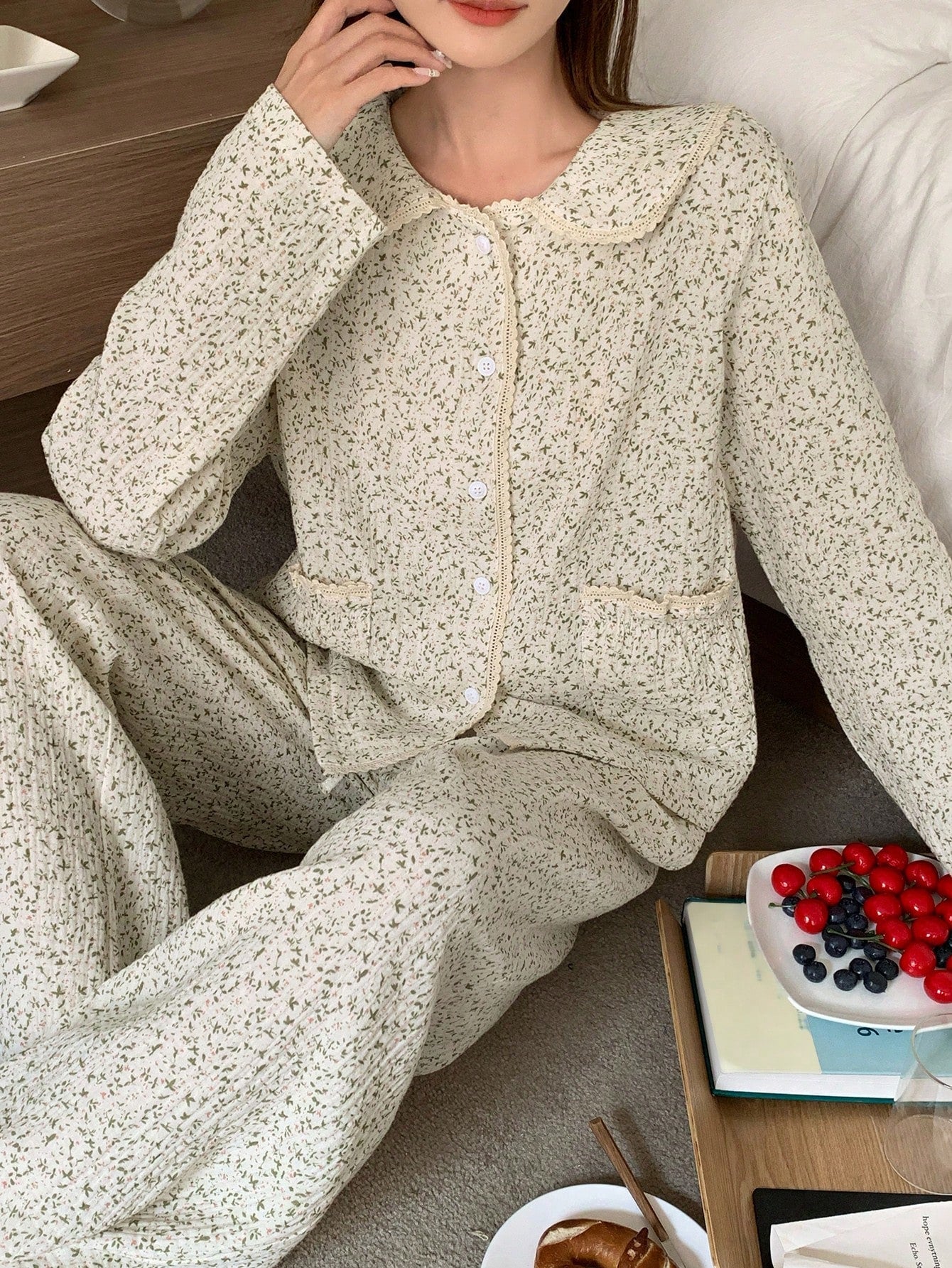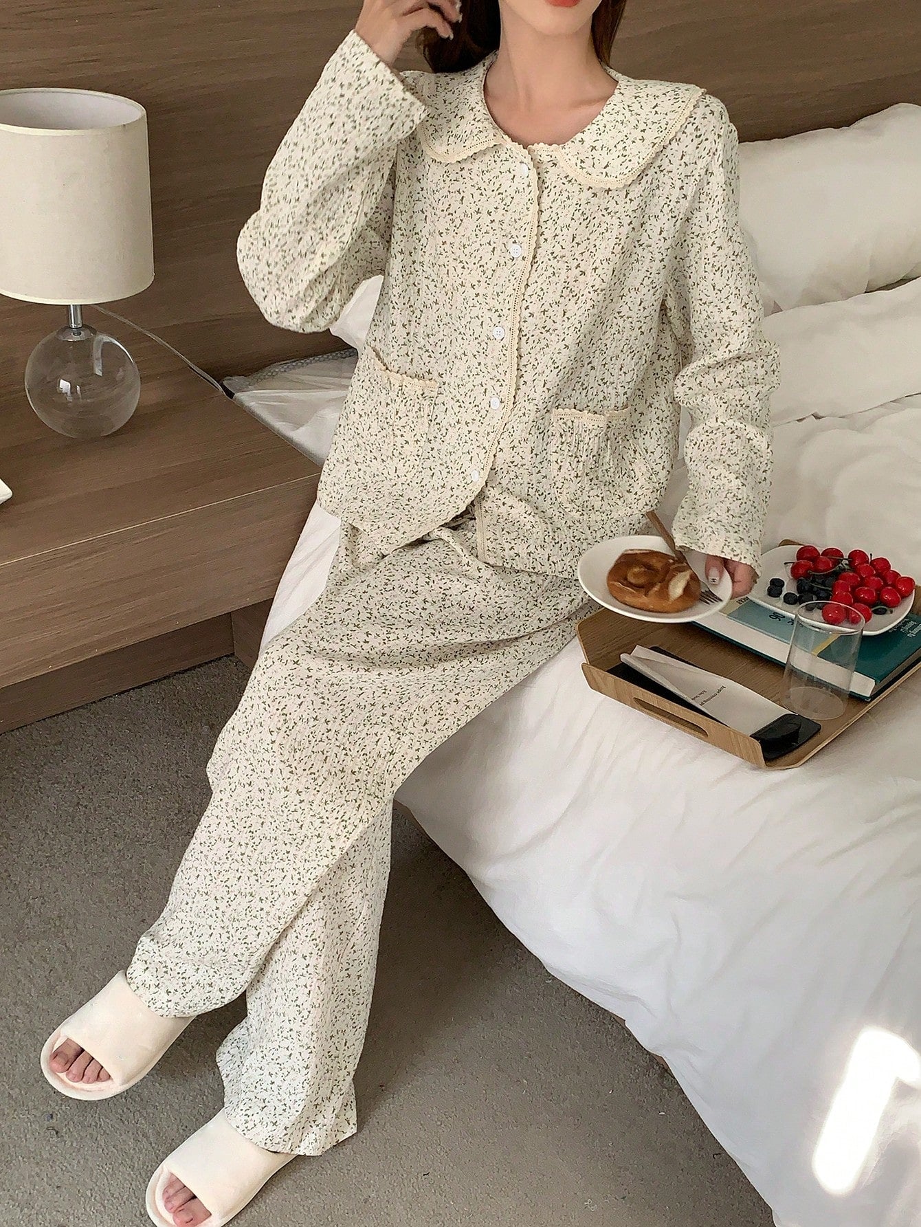 DAZY Lovely Ditsy Floral Ruffle Decor Sleepwear Set Pajama