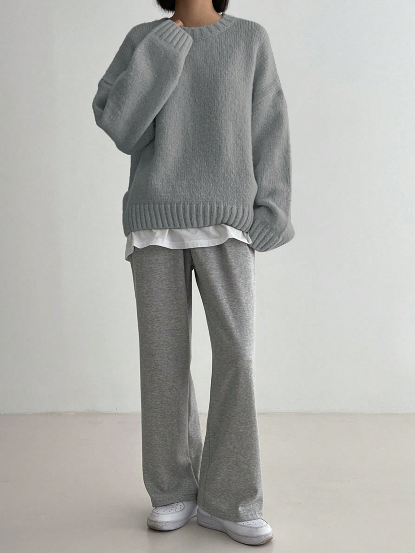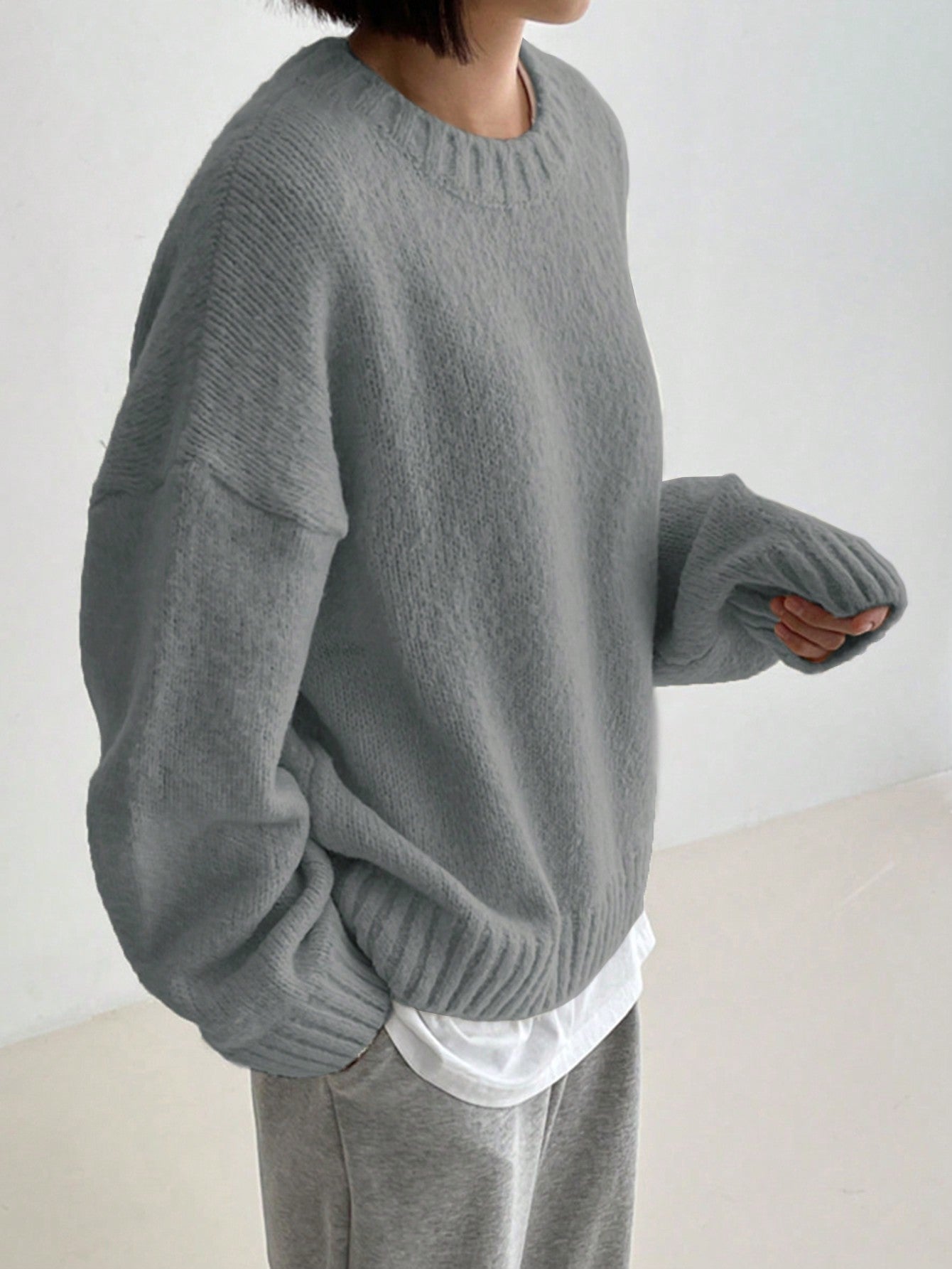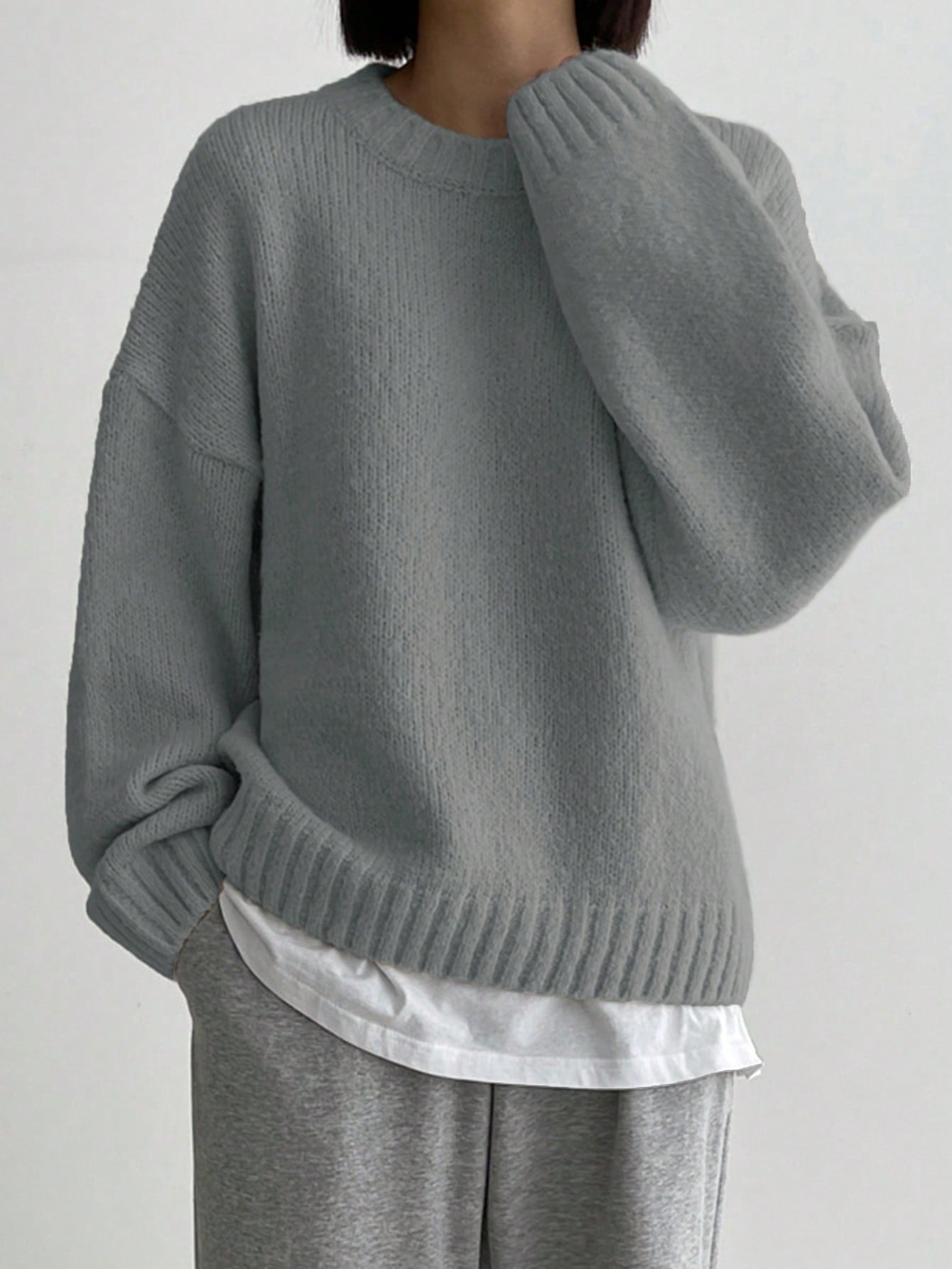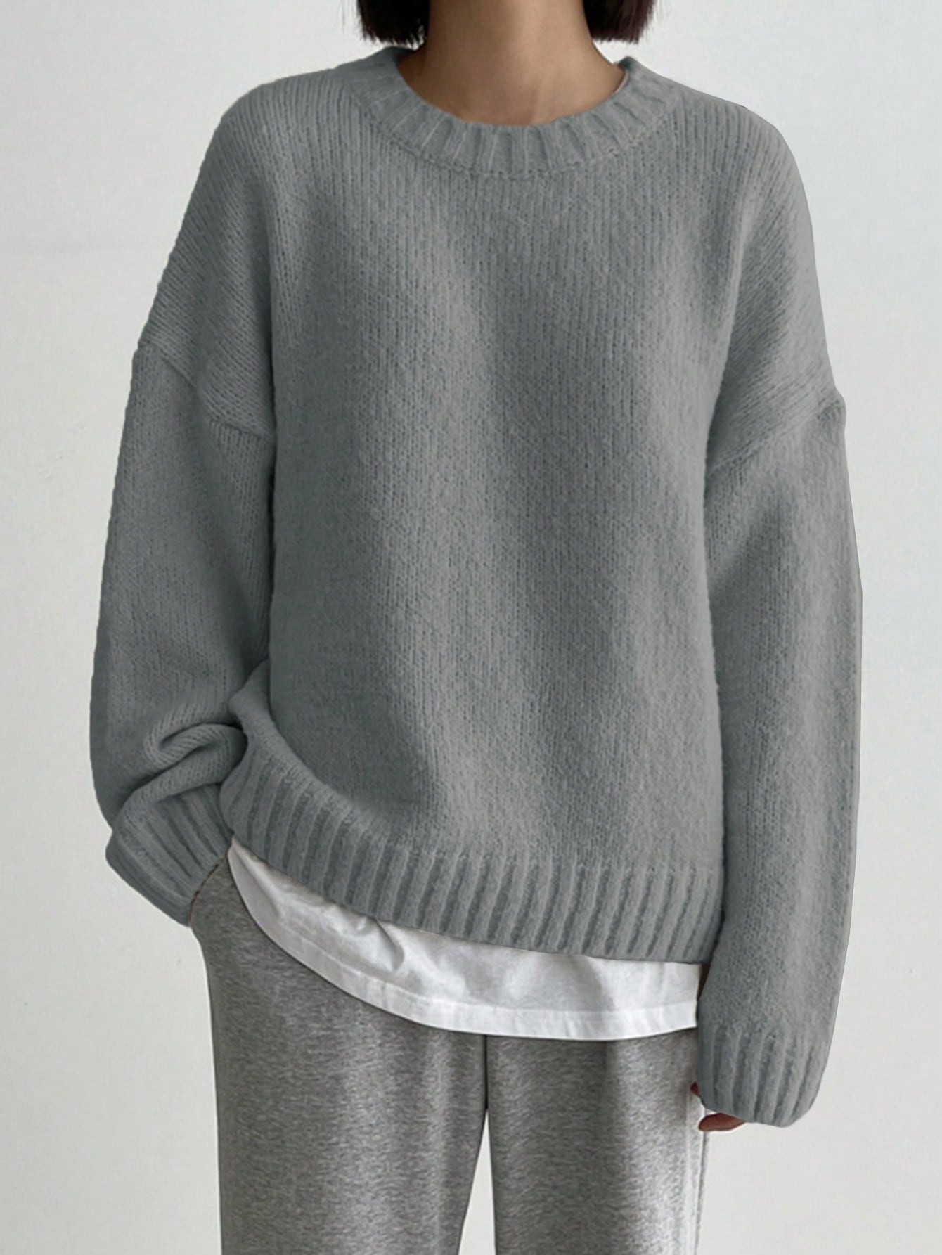 DAZY Plain Crew Neck Long Sleeve Minimalist Pullover Sweater