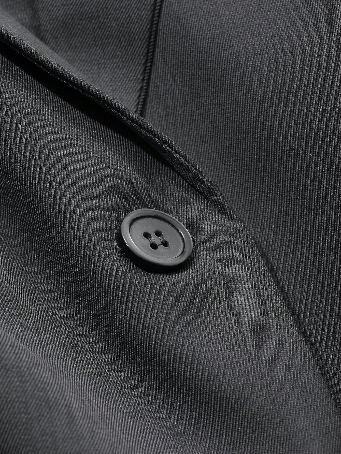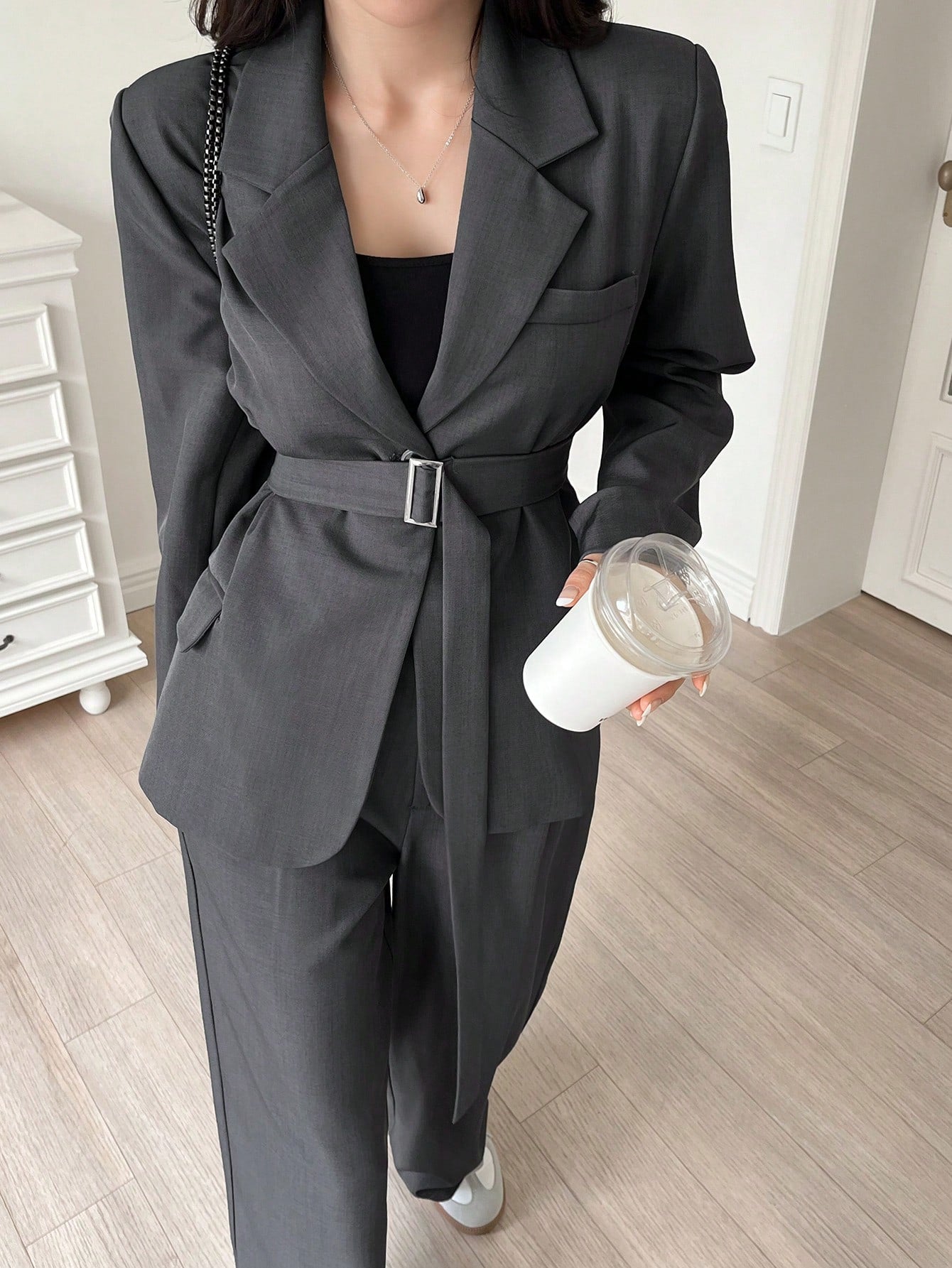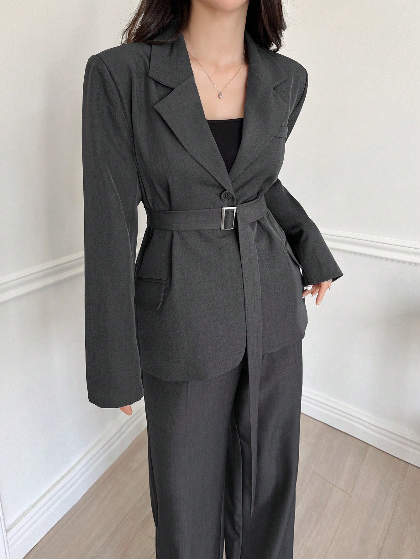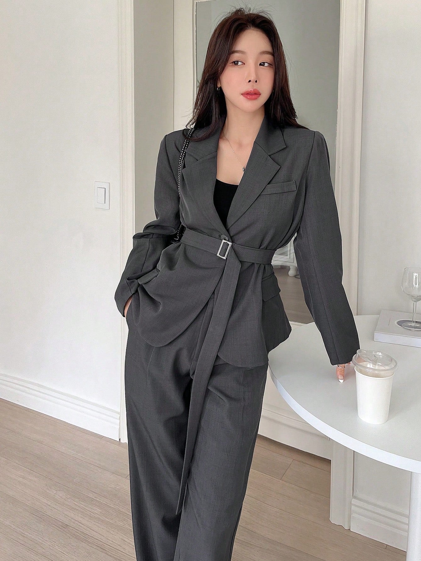 women DAZY Solid Color Loose Waistband Suit Jacket And Wide Leg Pants Women Suit Set