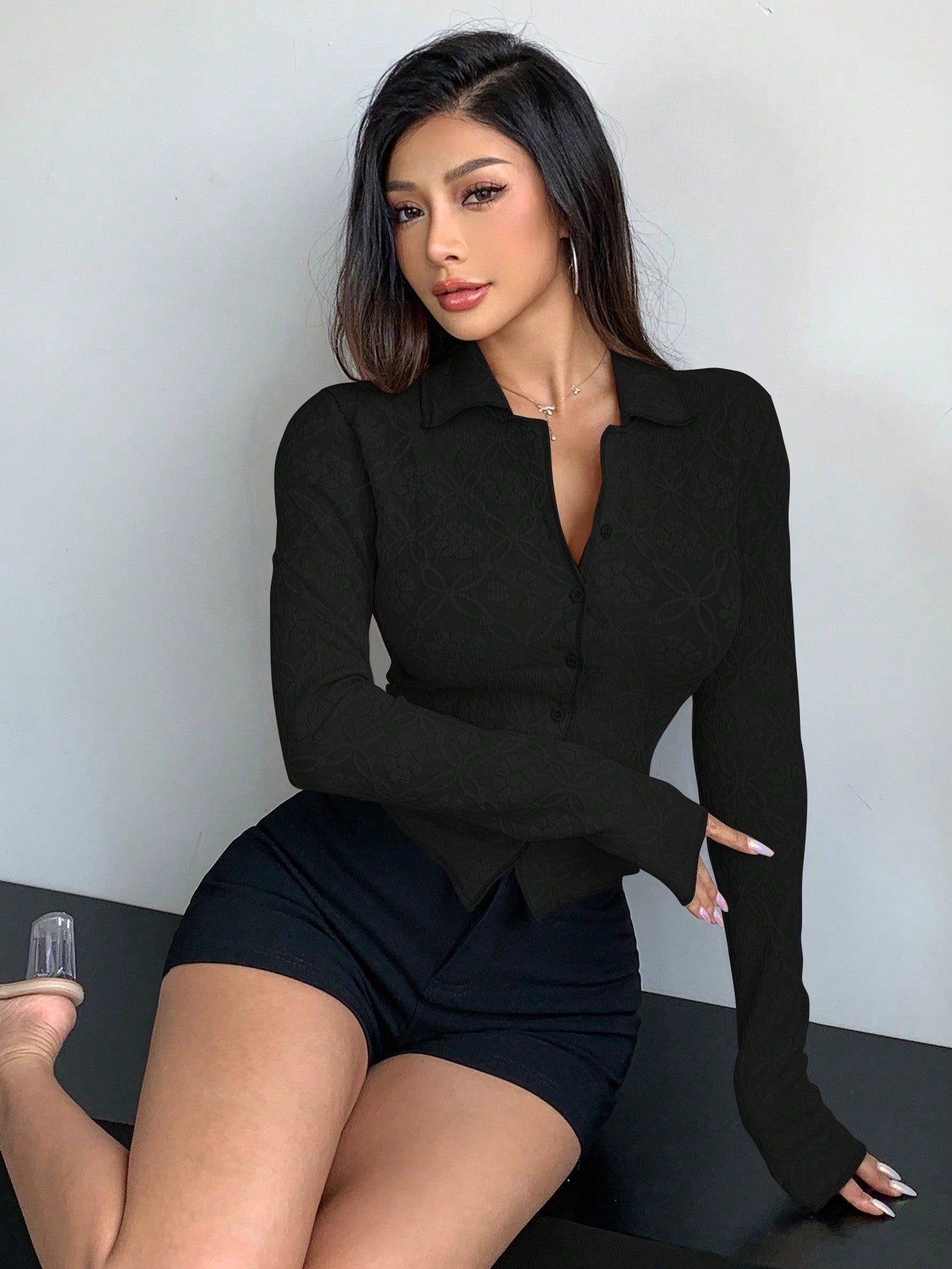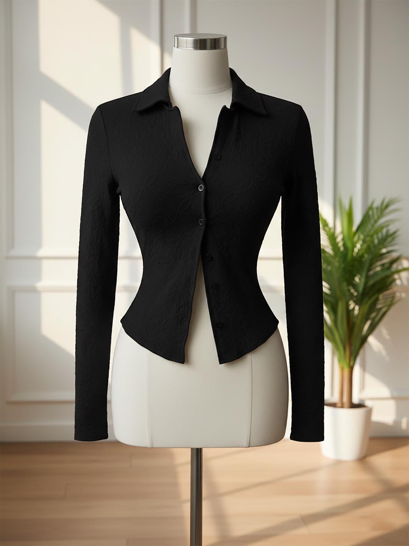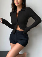 DAZY Women's Long Sleeve Slim Fit Collared T-Shirt
