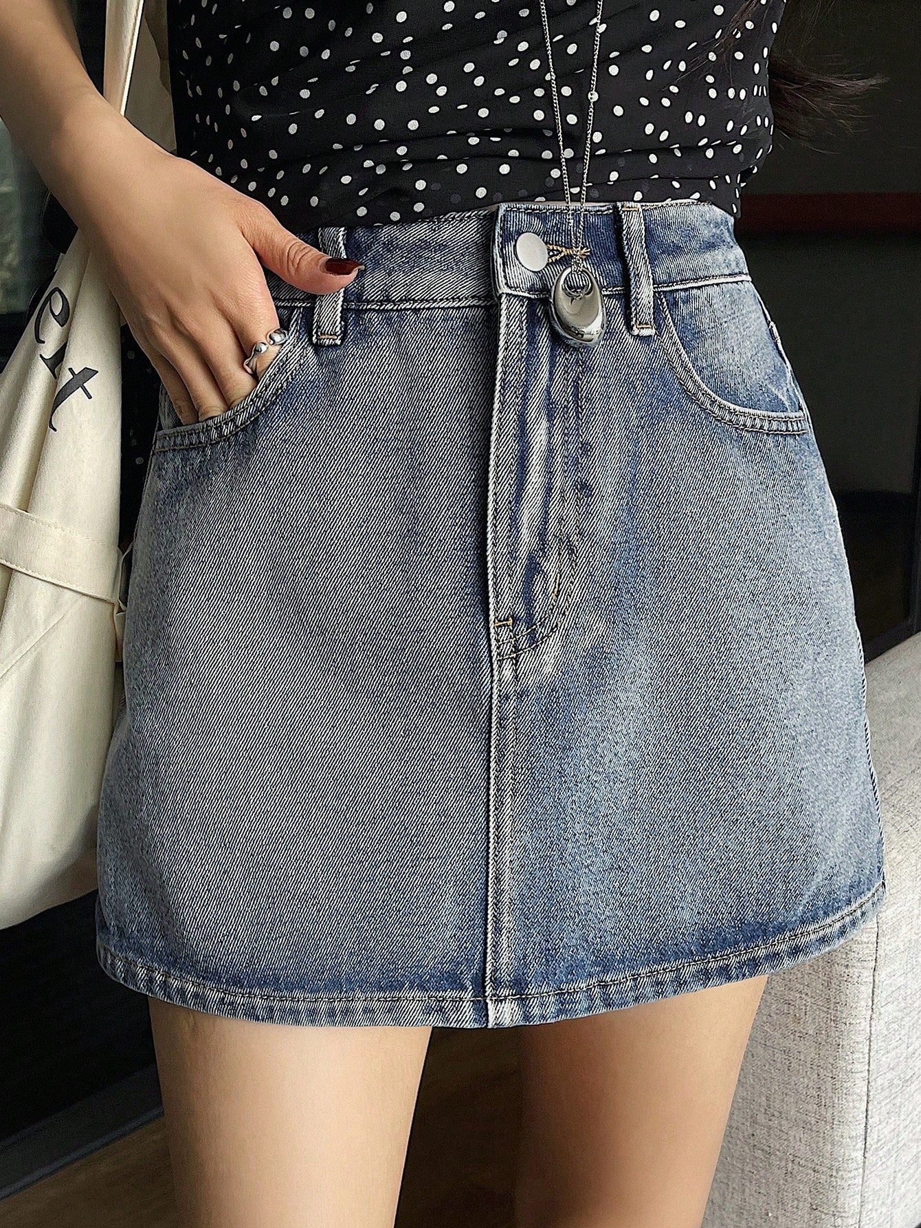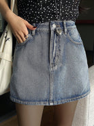 DAZY Women's Short Denim A-Line Skirt With Pockets, Casual Jeans Skirt