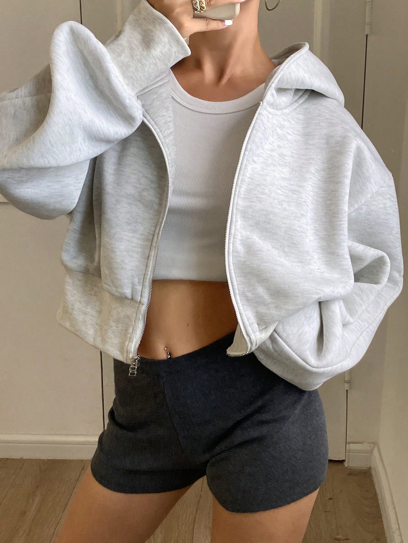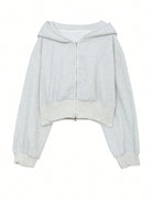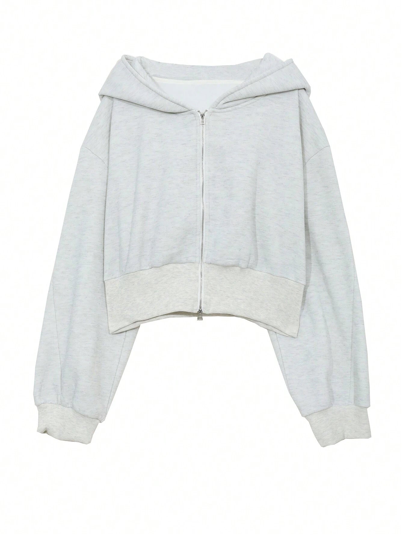 DAZY Women's Solid Color Dropped Shoulder Long Sleeve Hooded Zip-Up Short Fleece Sweatshirt For Autumn/Winter