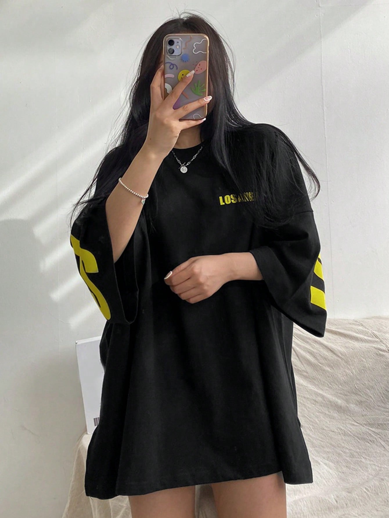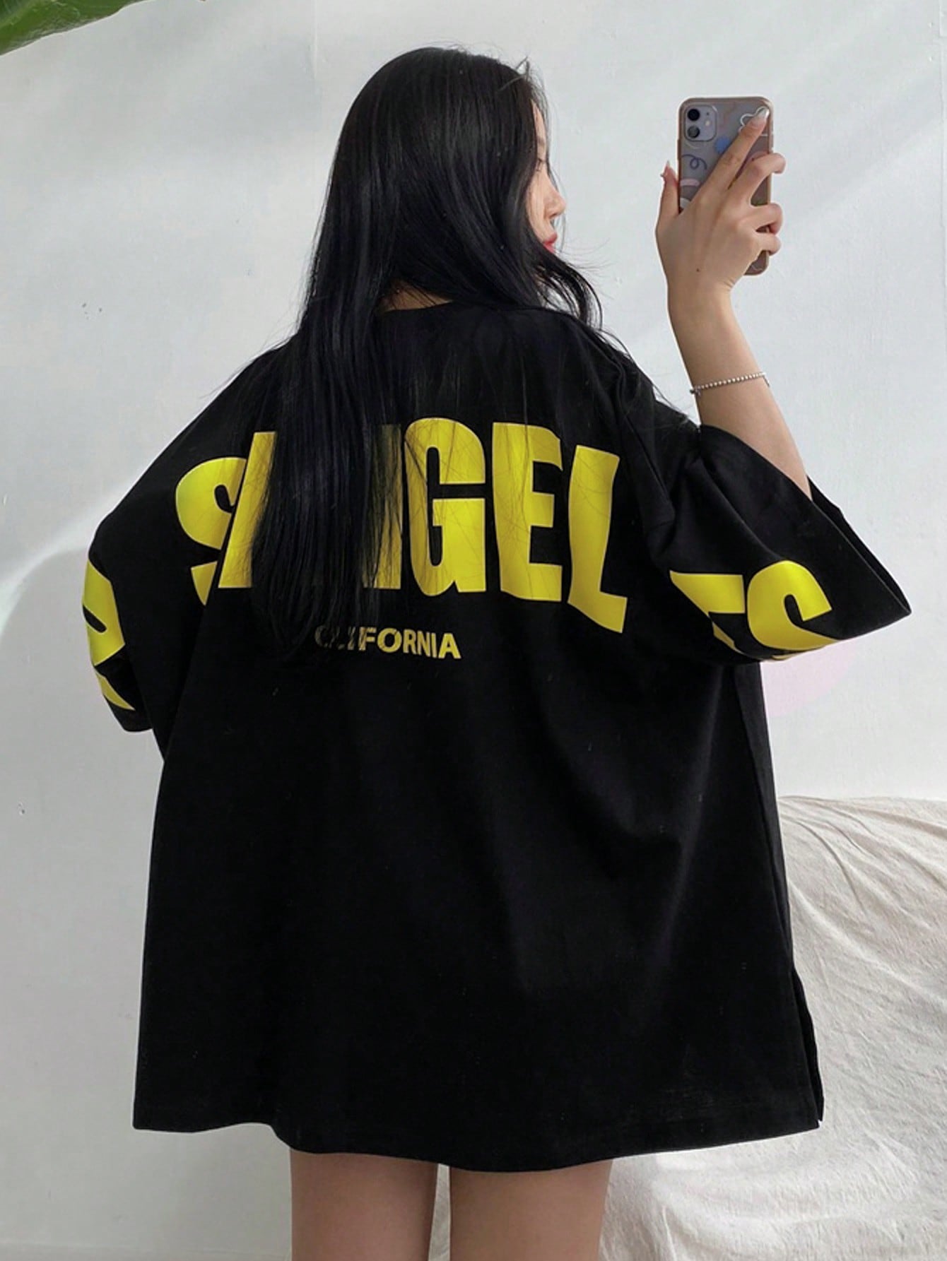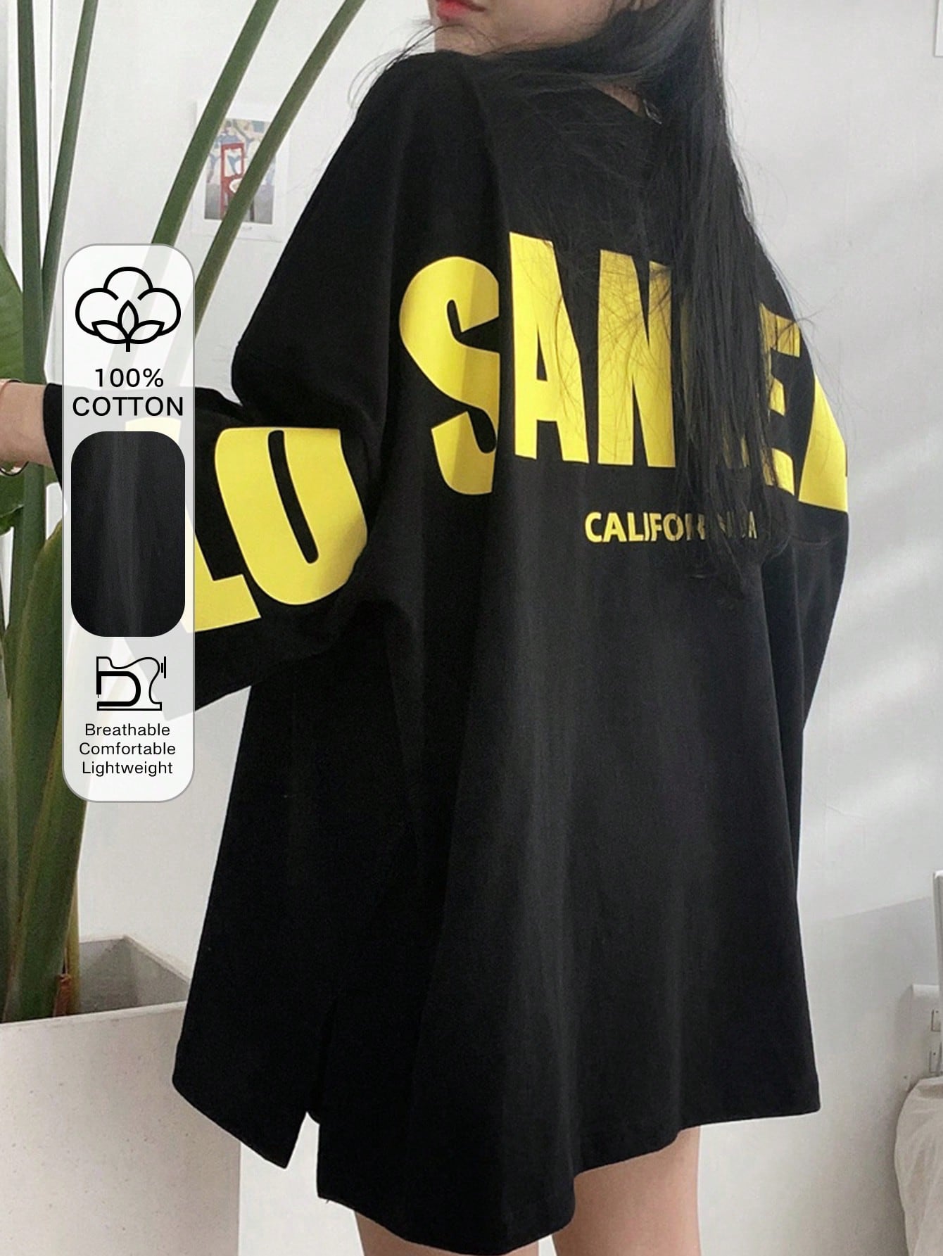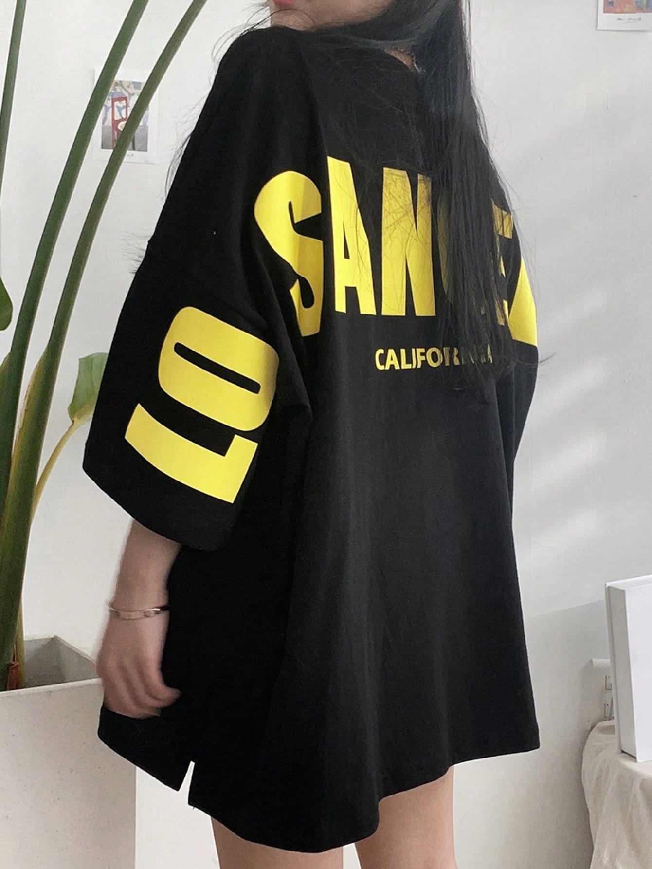 DAZY Women's Summer Round Neck Drop Shoulder Sleeve Loose Casual T-Shirt With Letter Print Oversized T-Shirt