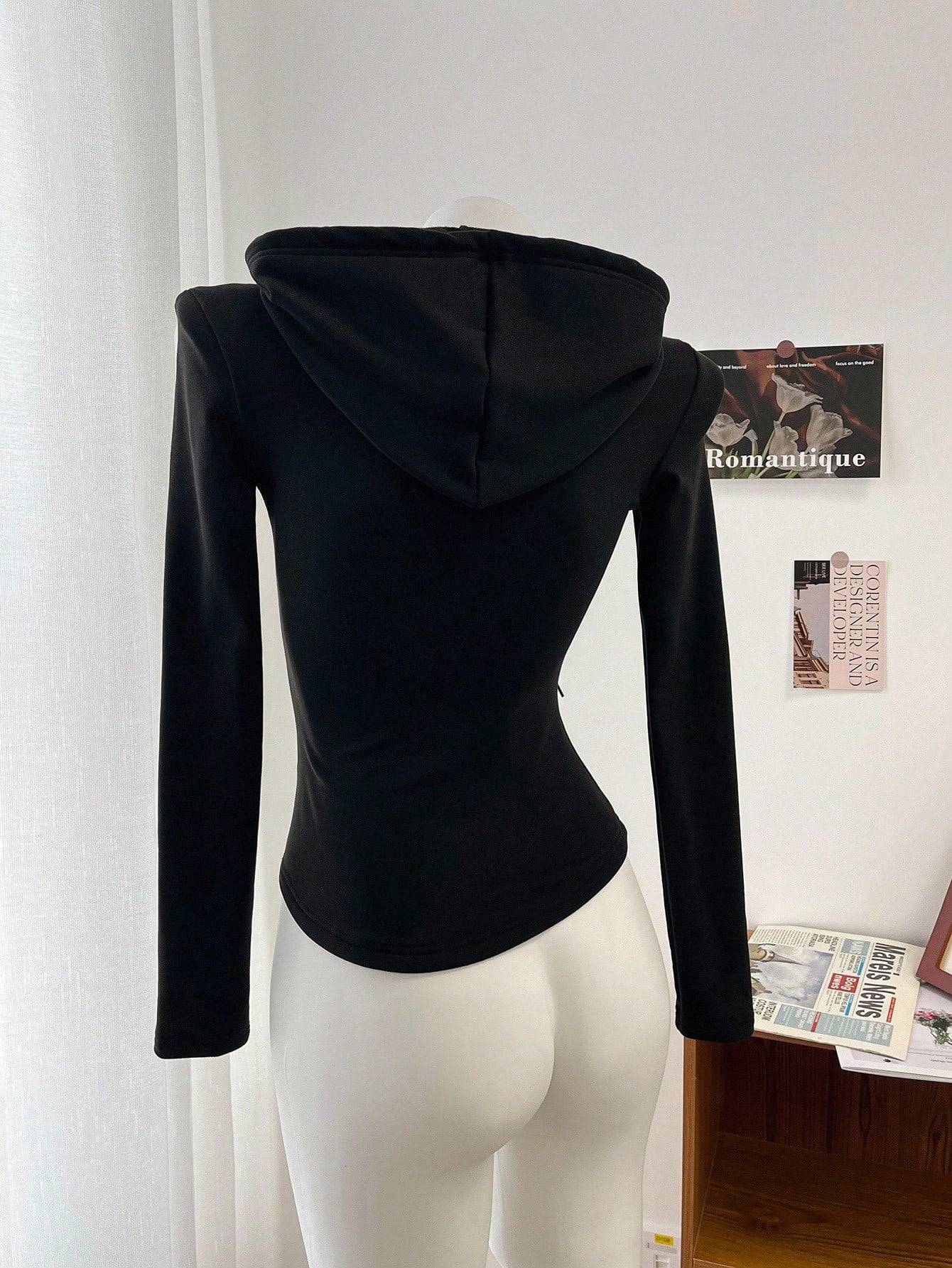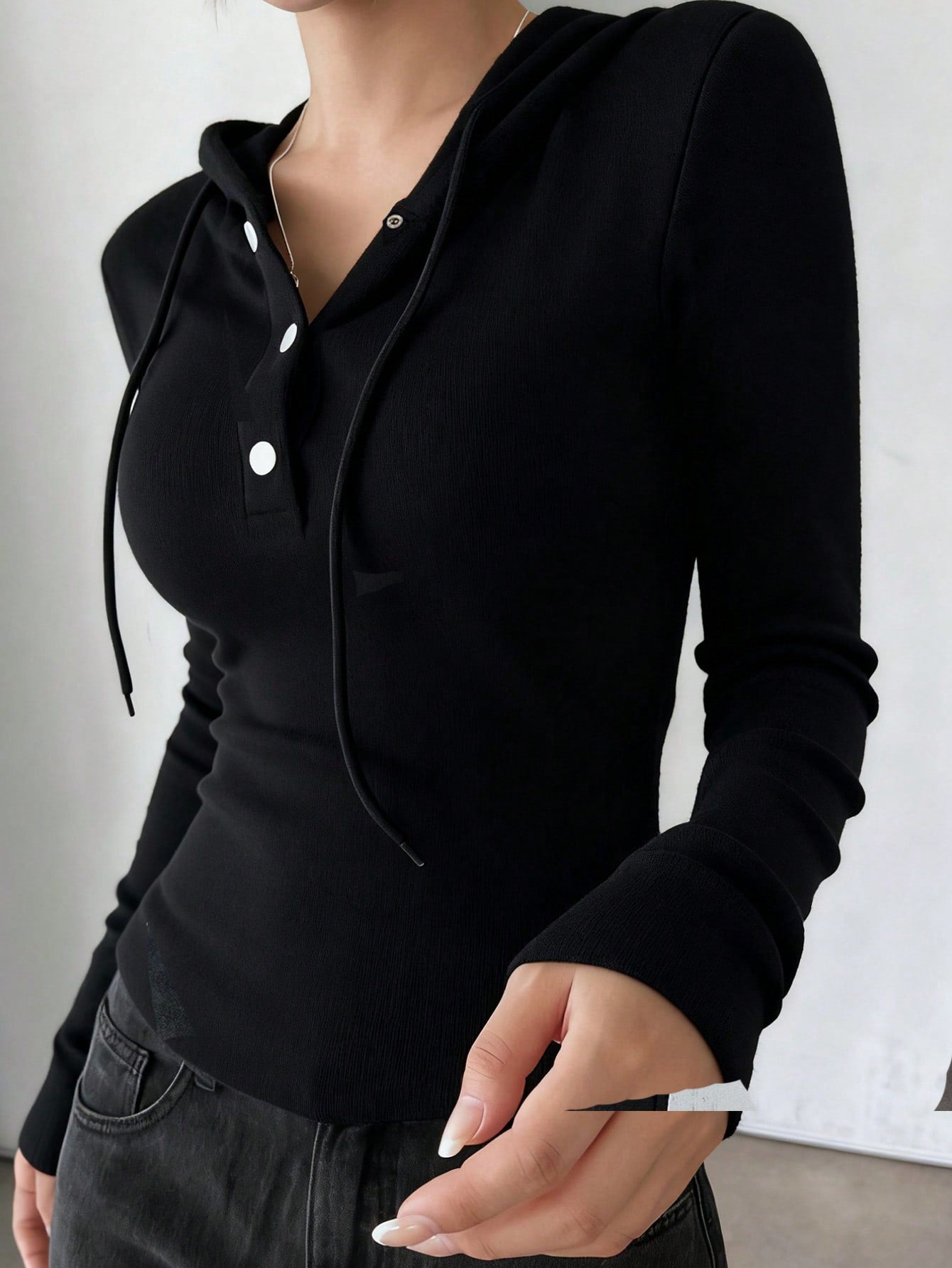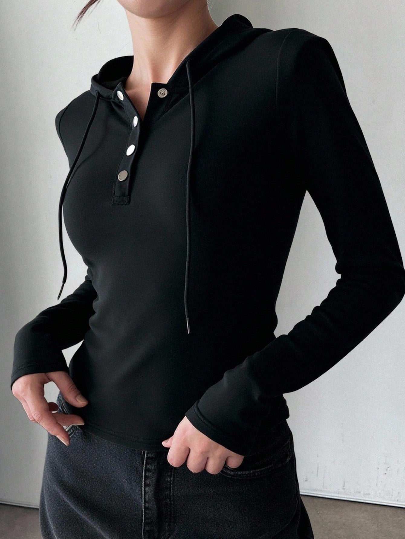 DAZY Women's Thermal Lined Crew Neck Half-Zip Hooded T-Shirt