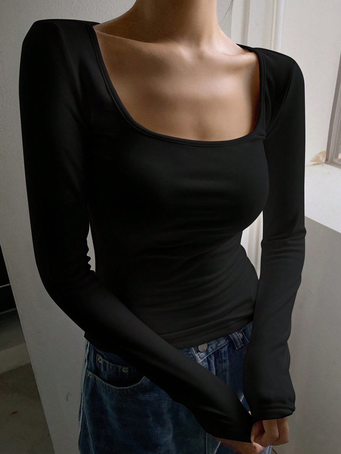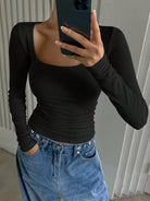 DAZY Women's Thermal Thermal Lined Black Skinny T-Shirt Long Sleeve Women Tops