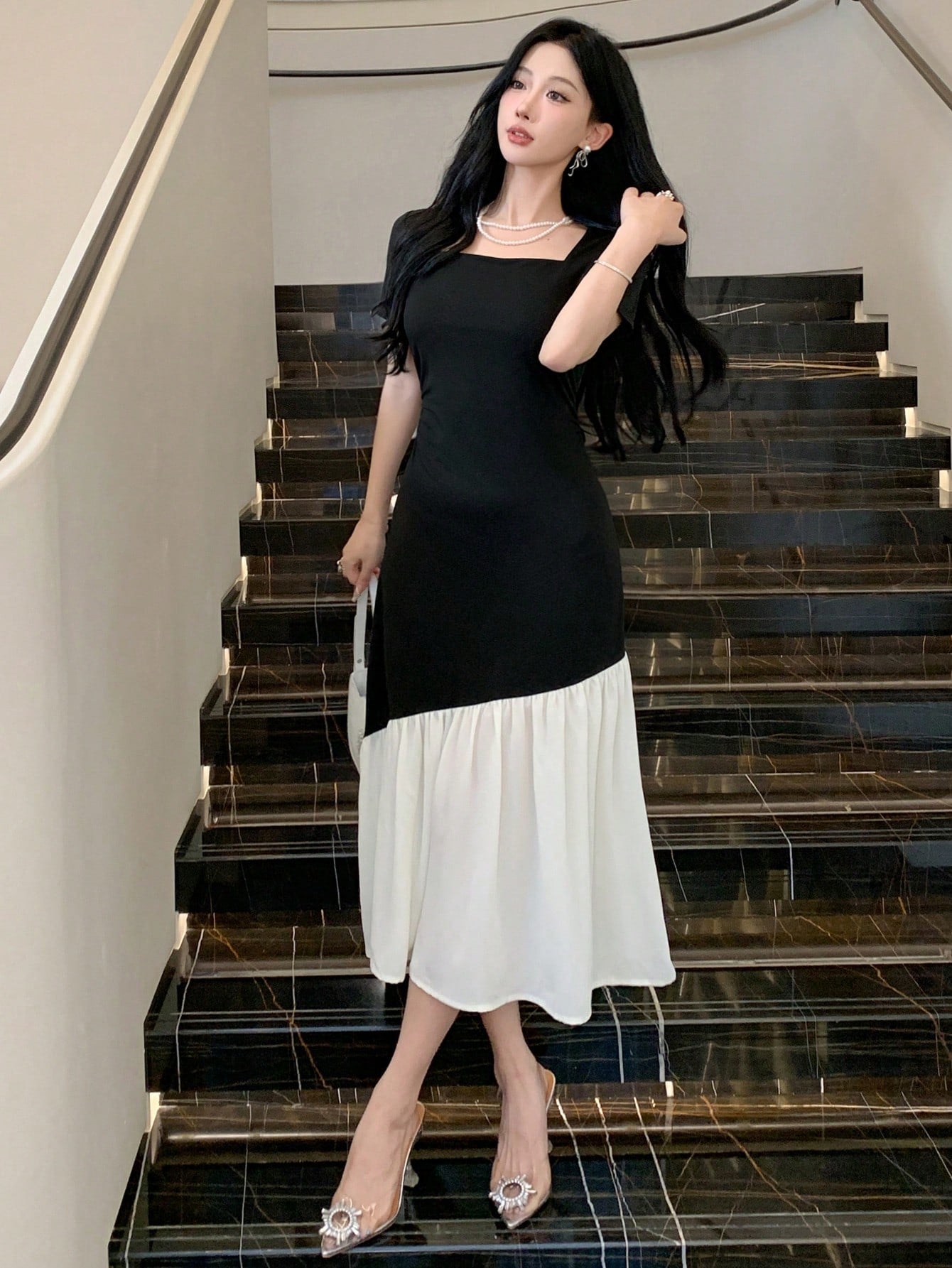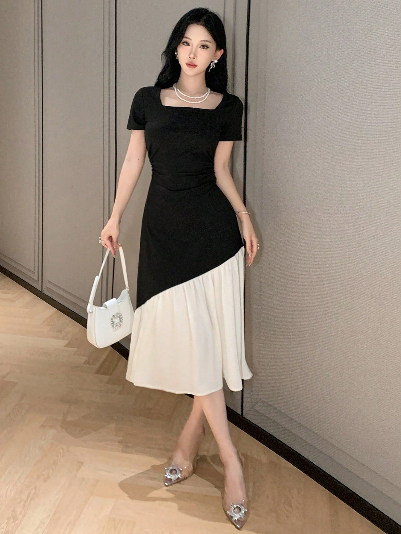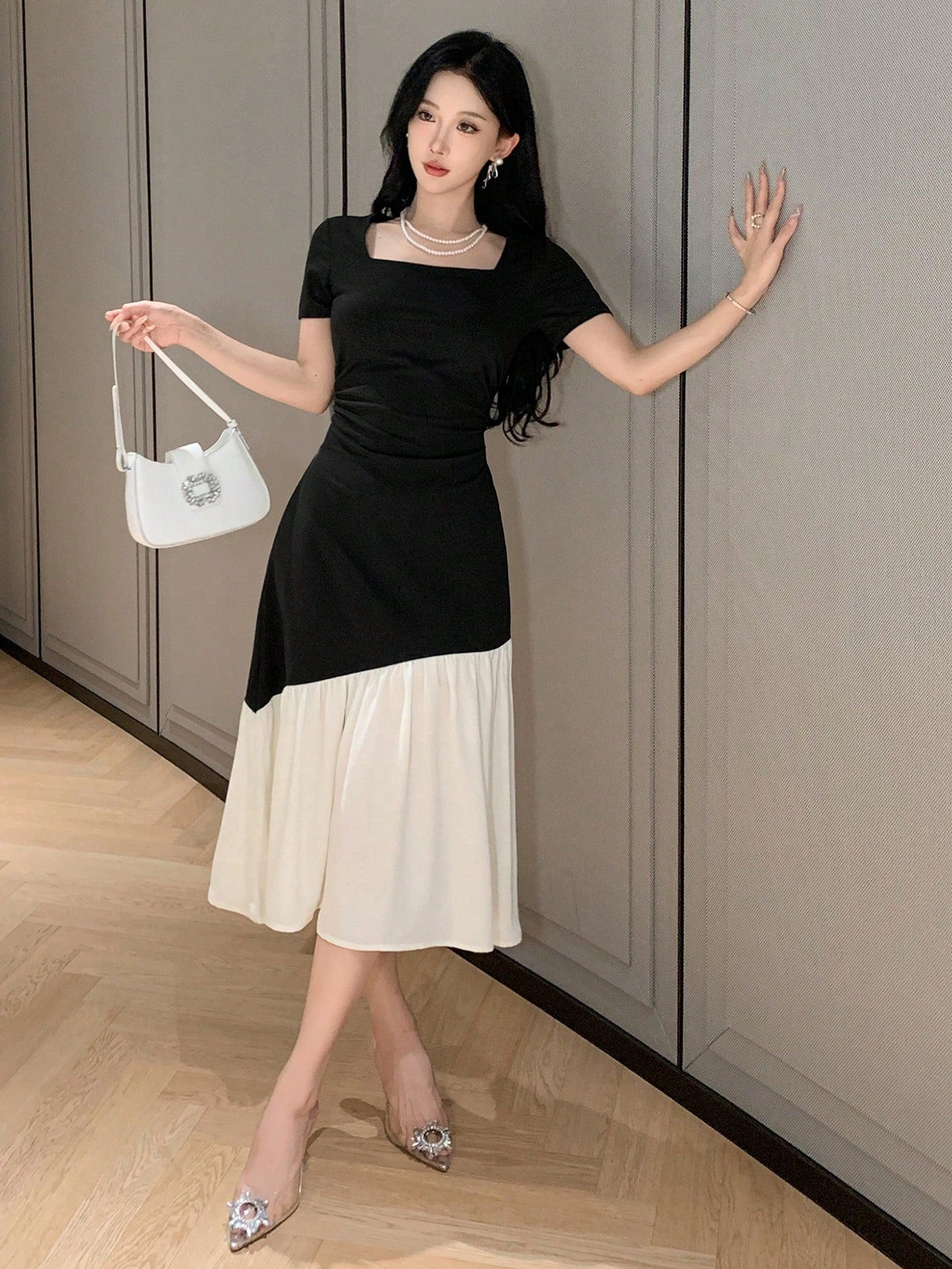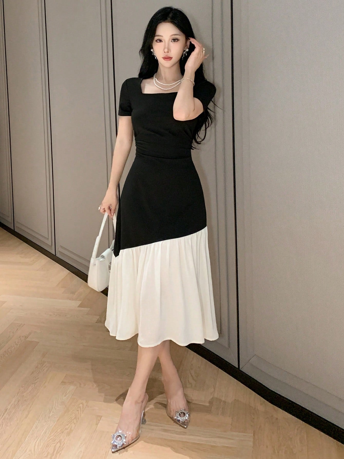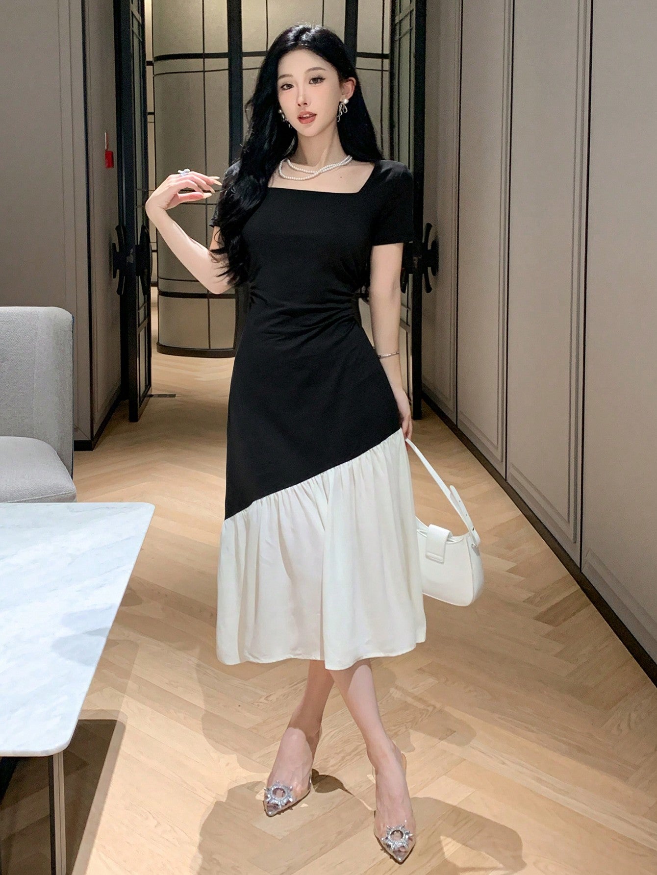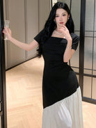 DAZY X Hannahelzahed Women's Elegant Colorblock Patchwork Dress