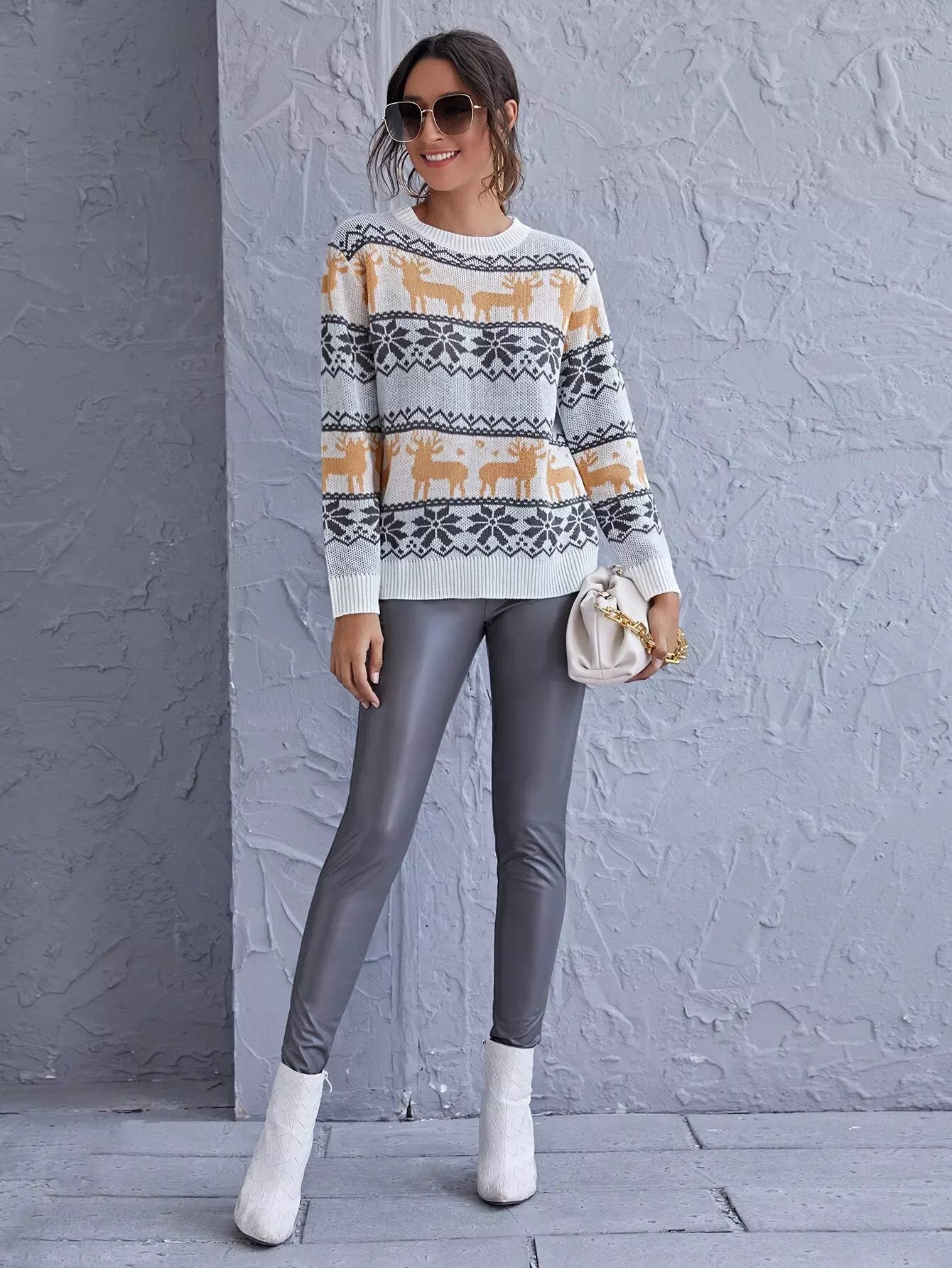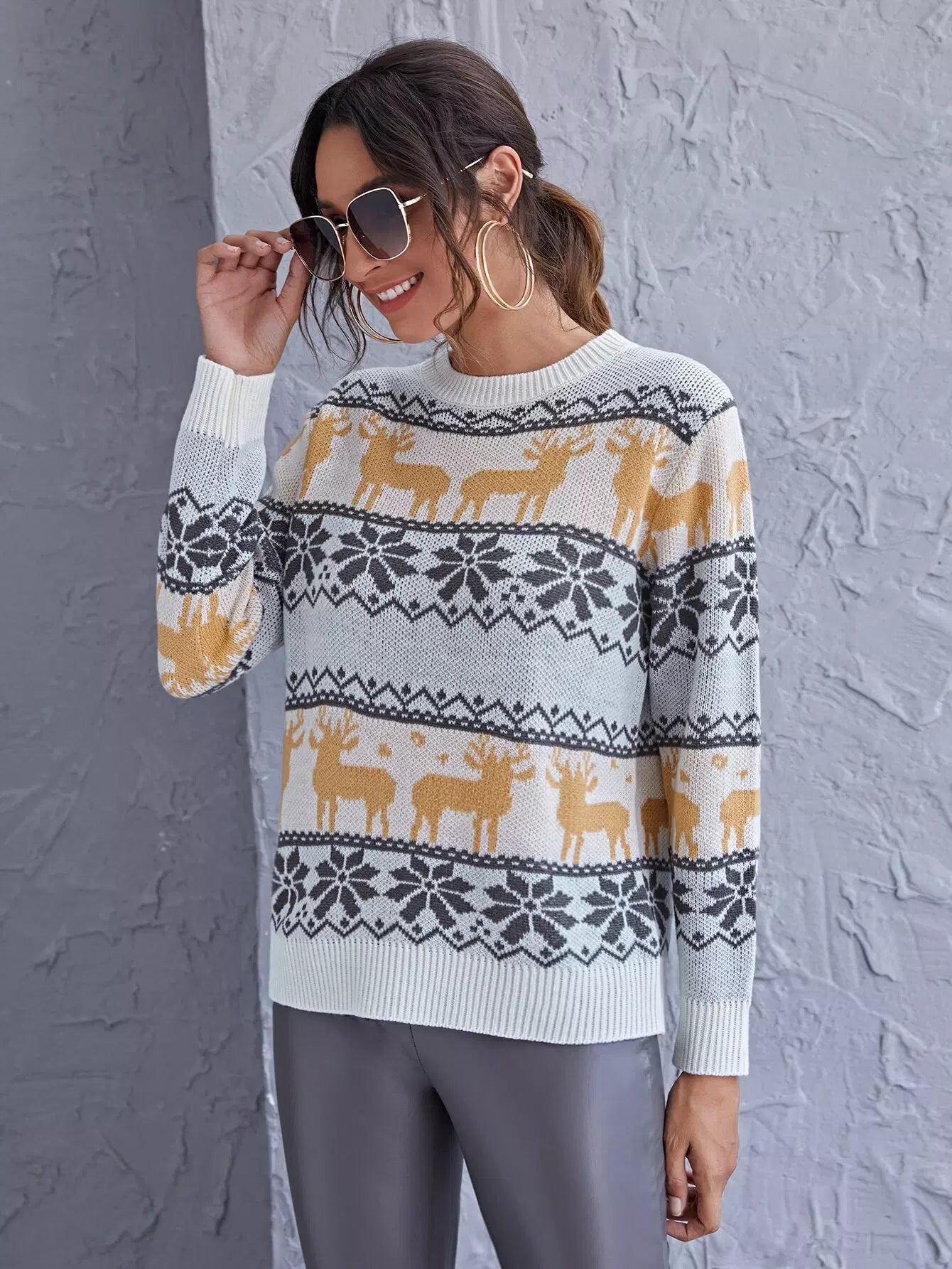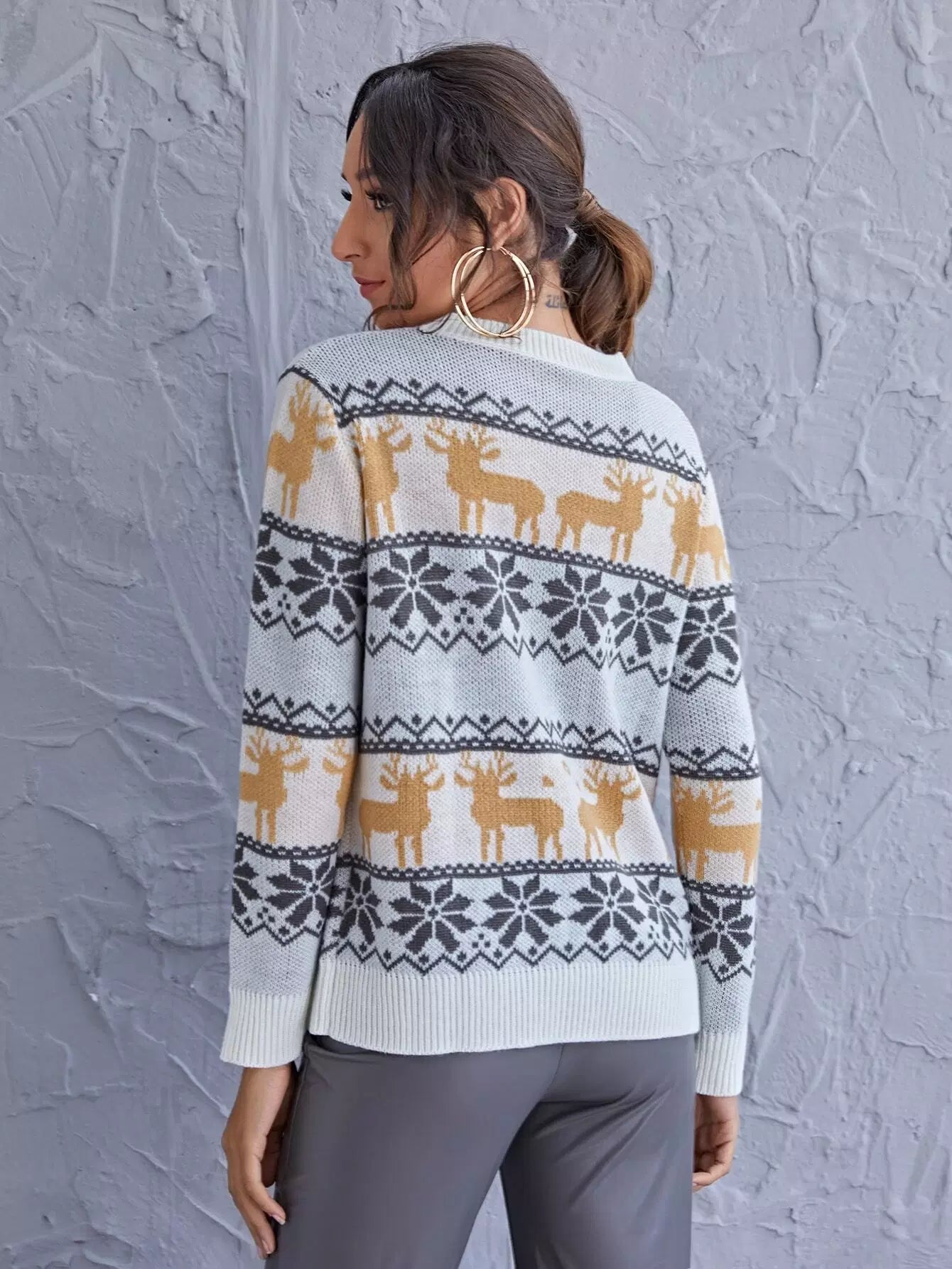 Deer And Snowflake Pattern Sweater
