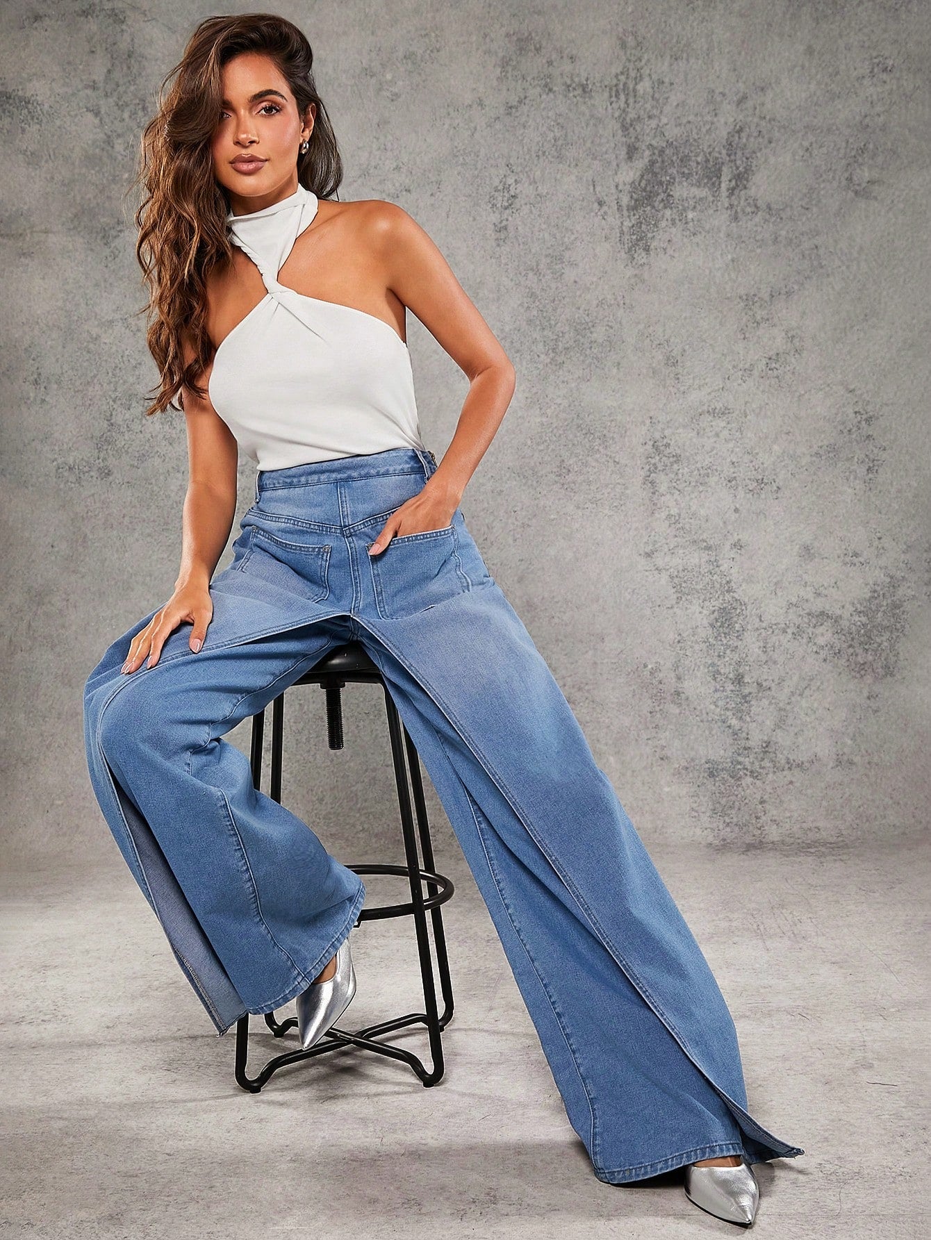 Denimoi Twisted Neck Split Side Asymmetrical Hem Halter Top For Summer