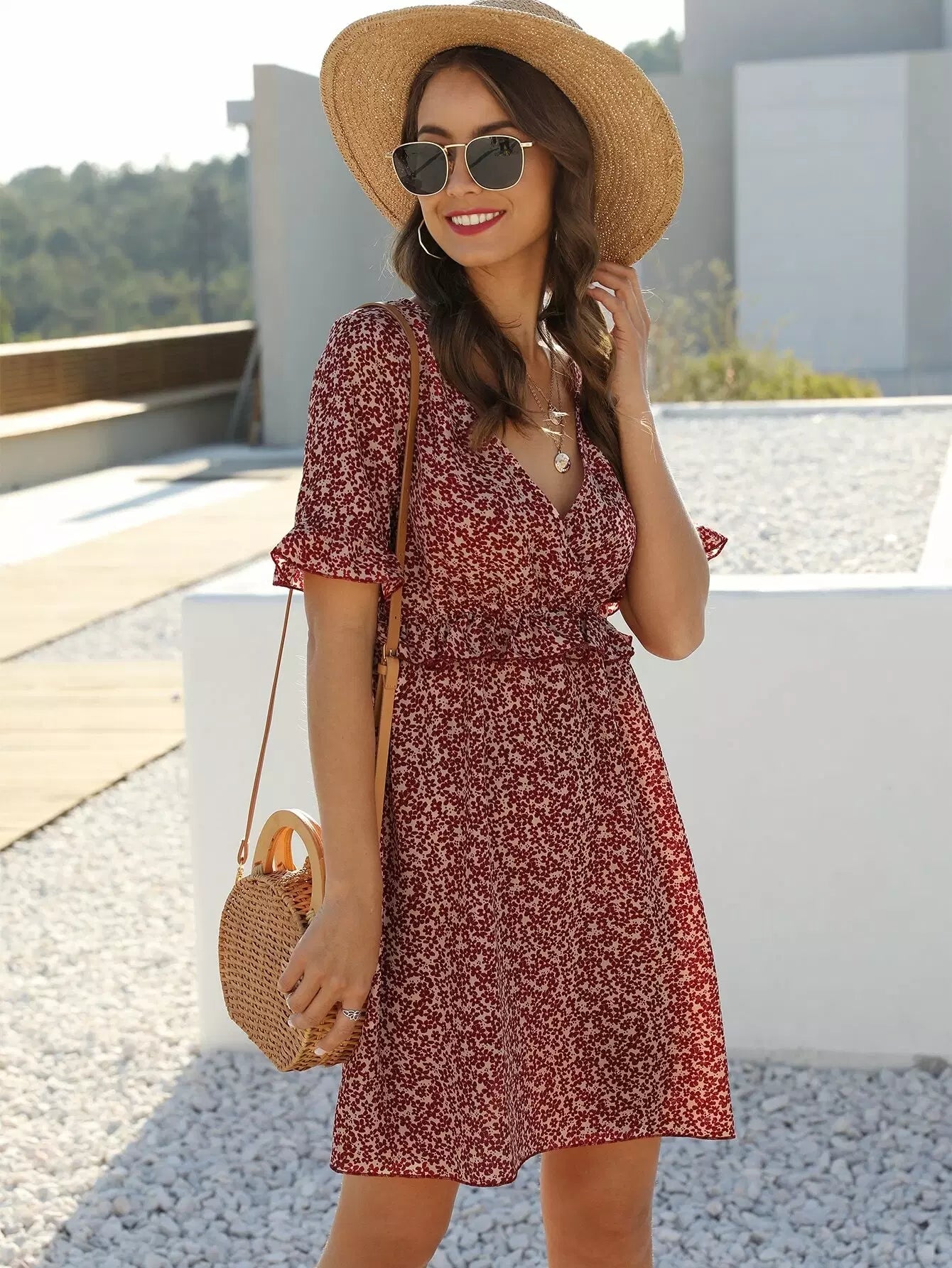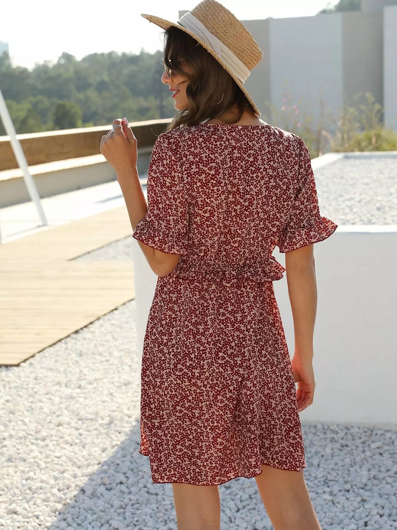 Women - Ditsy Floral Print Ruffle Trim Dress