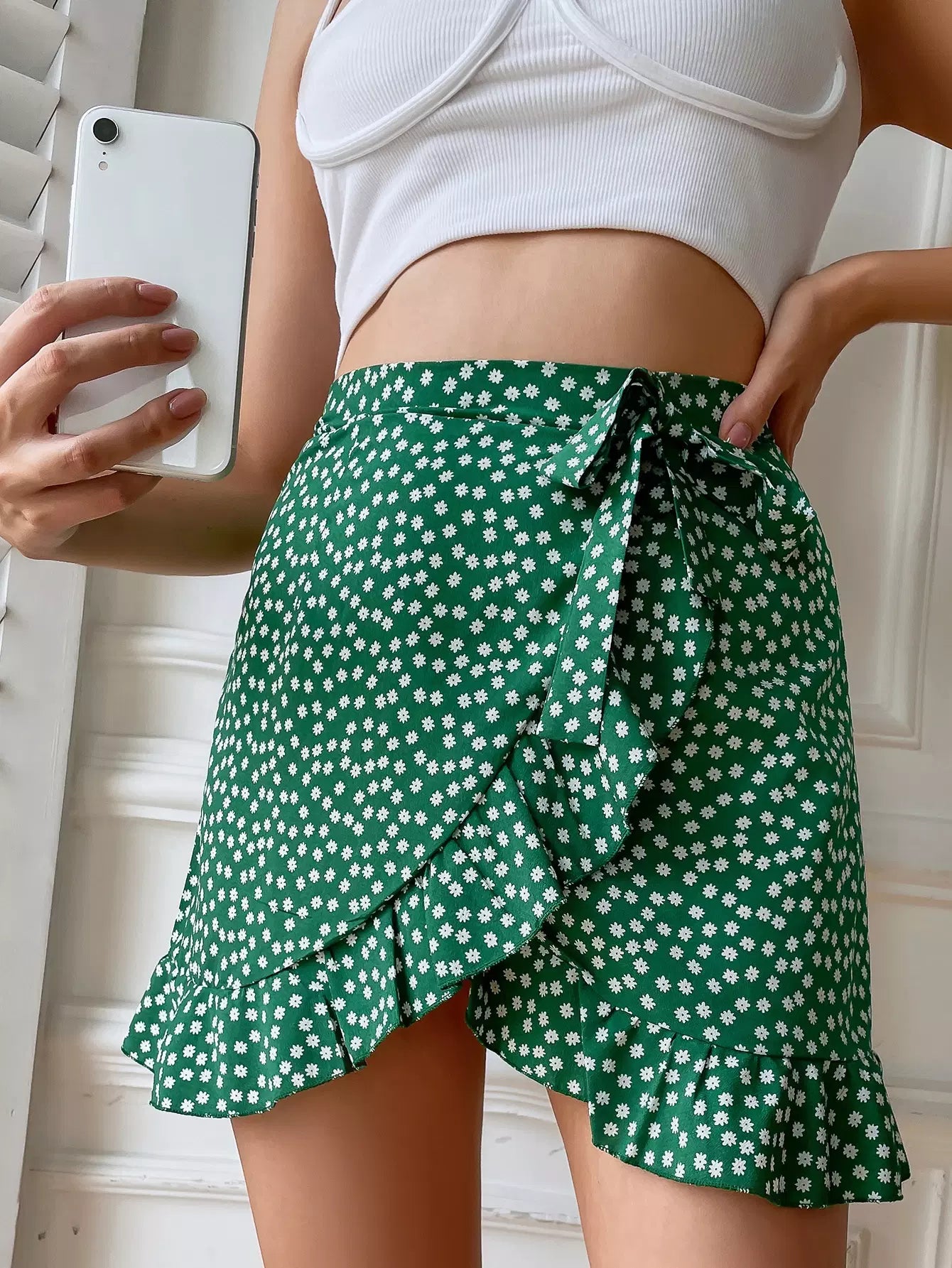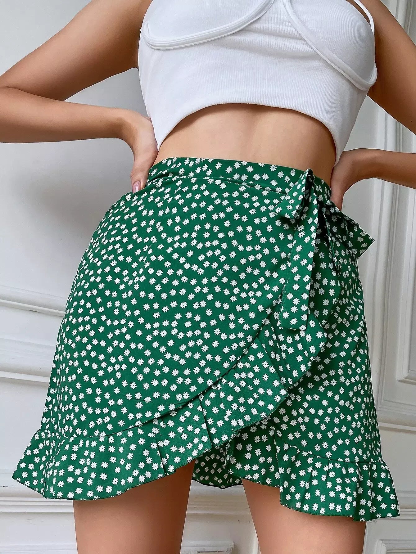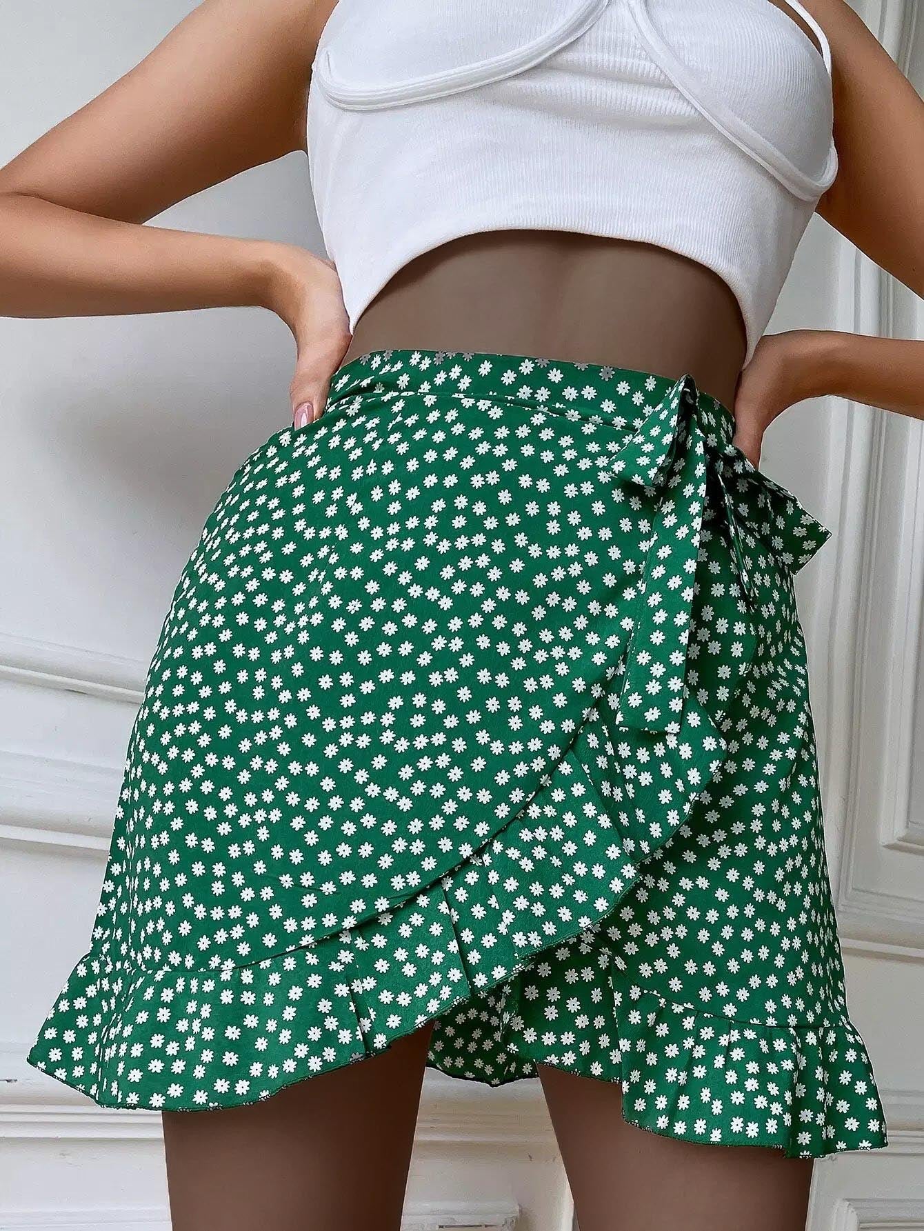 Ditsy Floral Ruffle Hem Wrap Knot Skirt