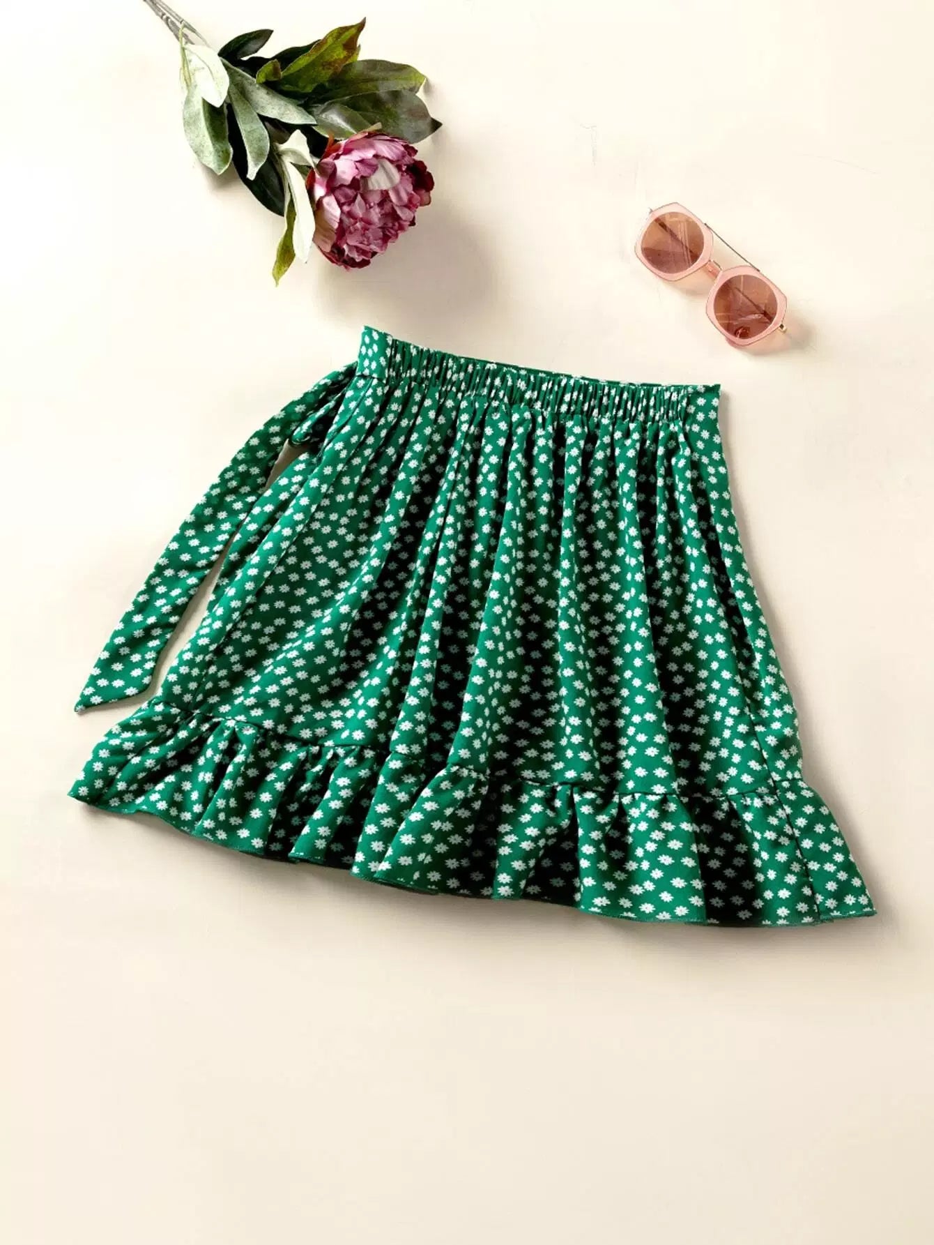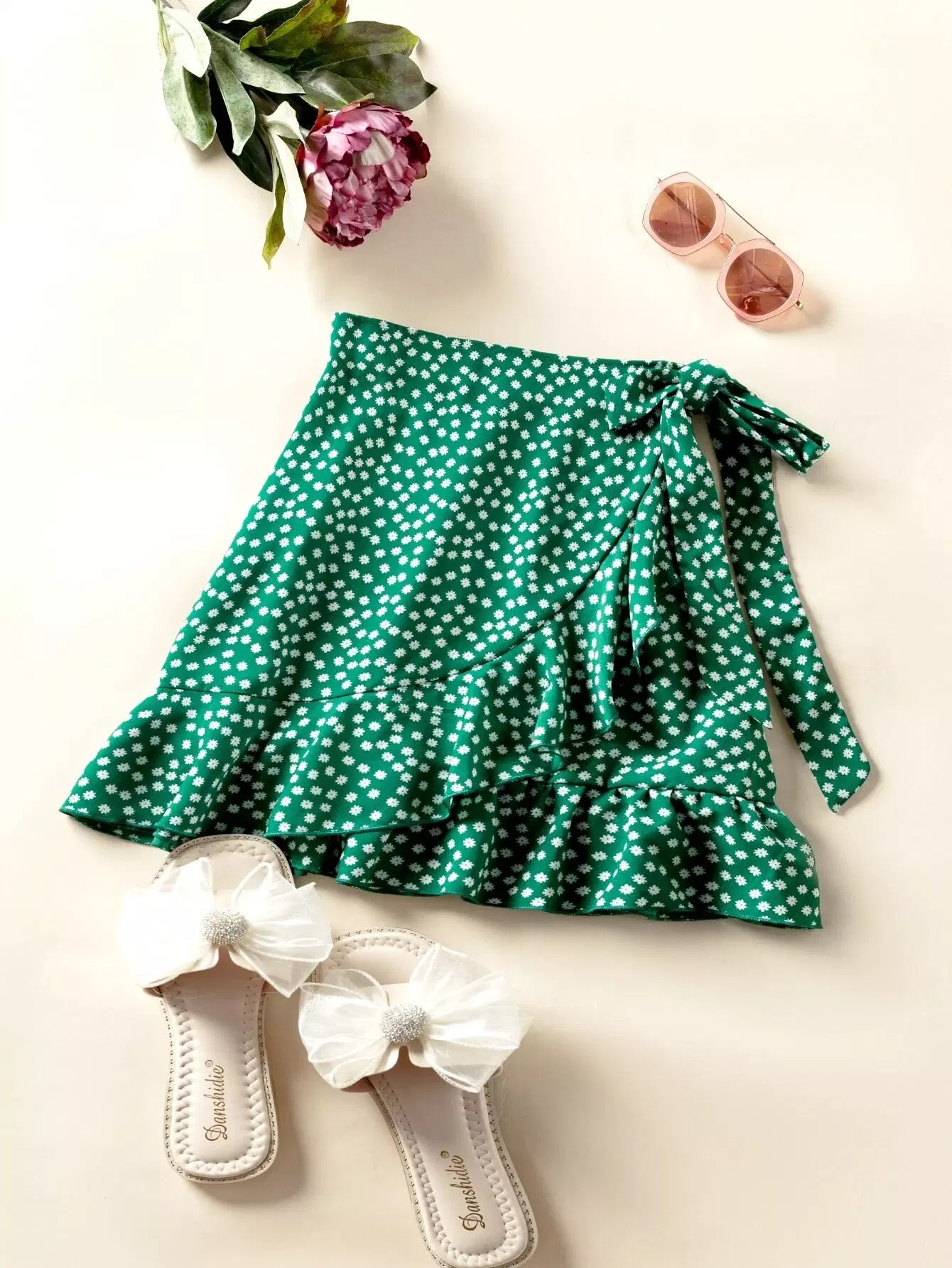Ditsy Floral Ruffle Trim Wrap Knot Skirt