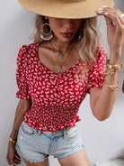 Ditsy Floral Shirred Blouse