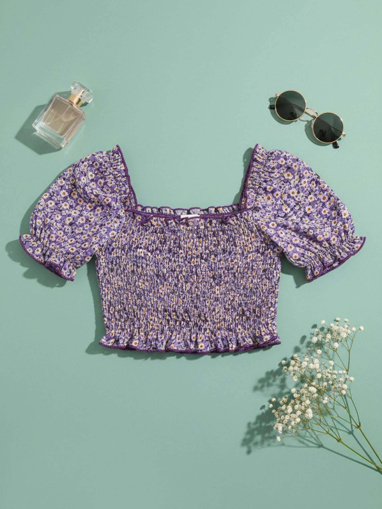 Ditsy Floral Shirred Detail Top