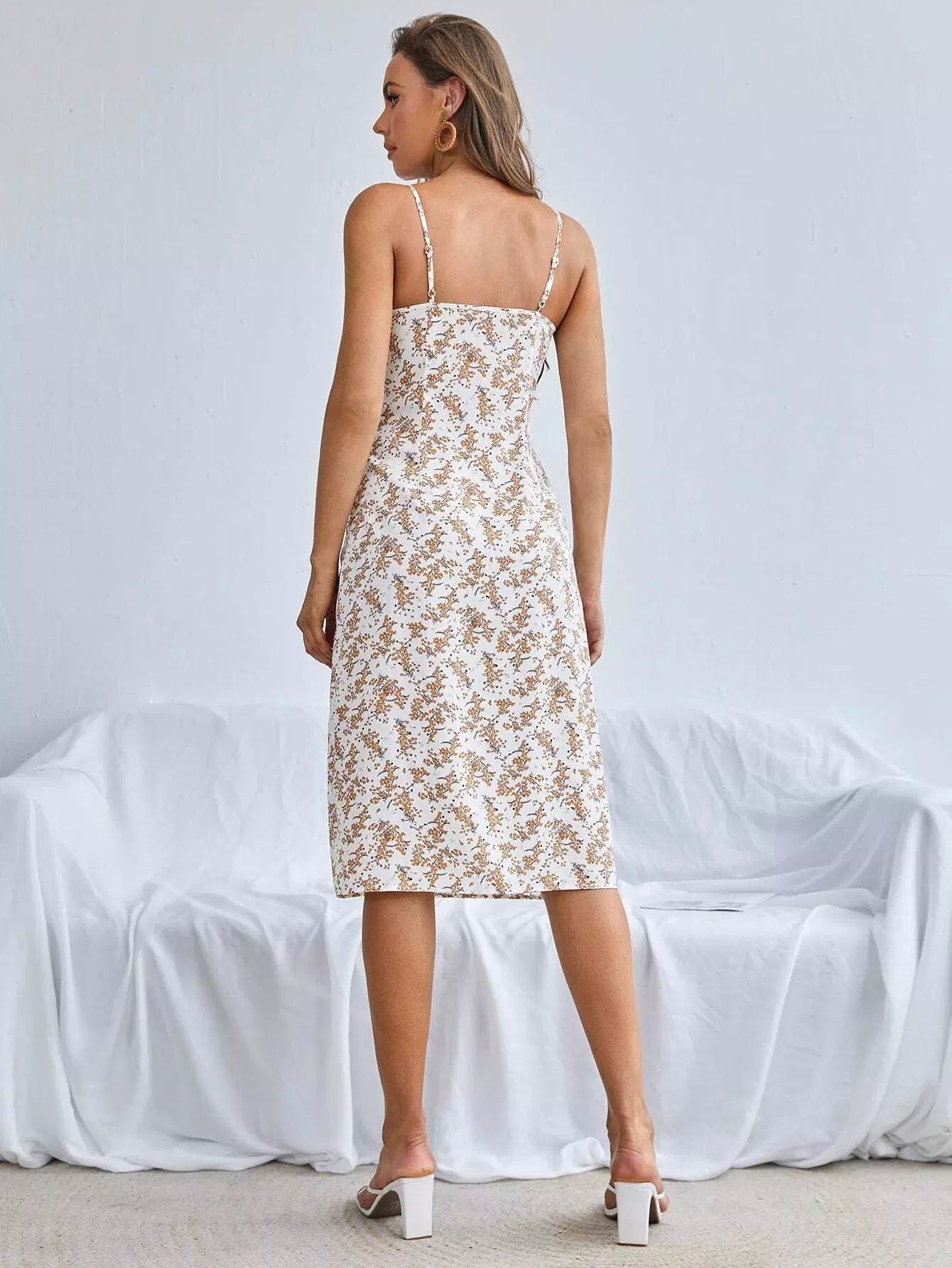 Ditsy Floral Split Thigh Slip Dress