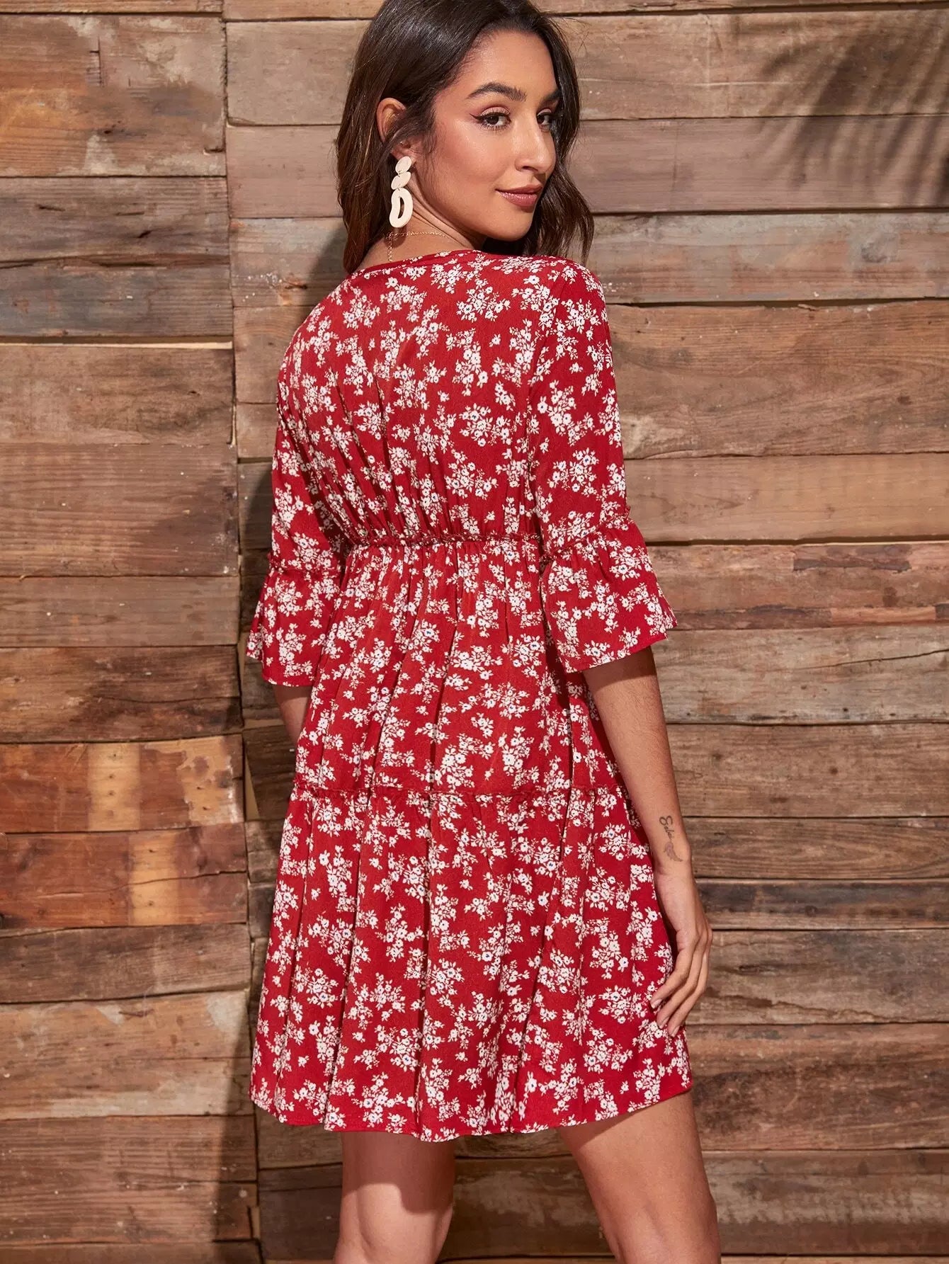 Ditsy Floral Surplice Front Dress